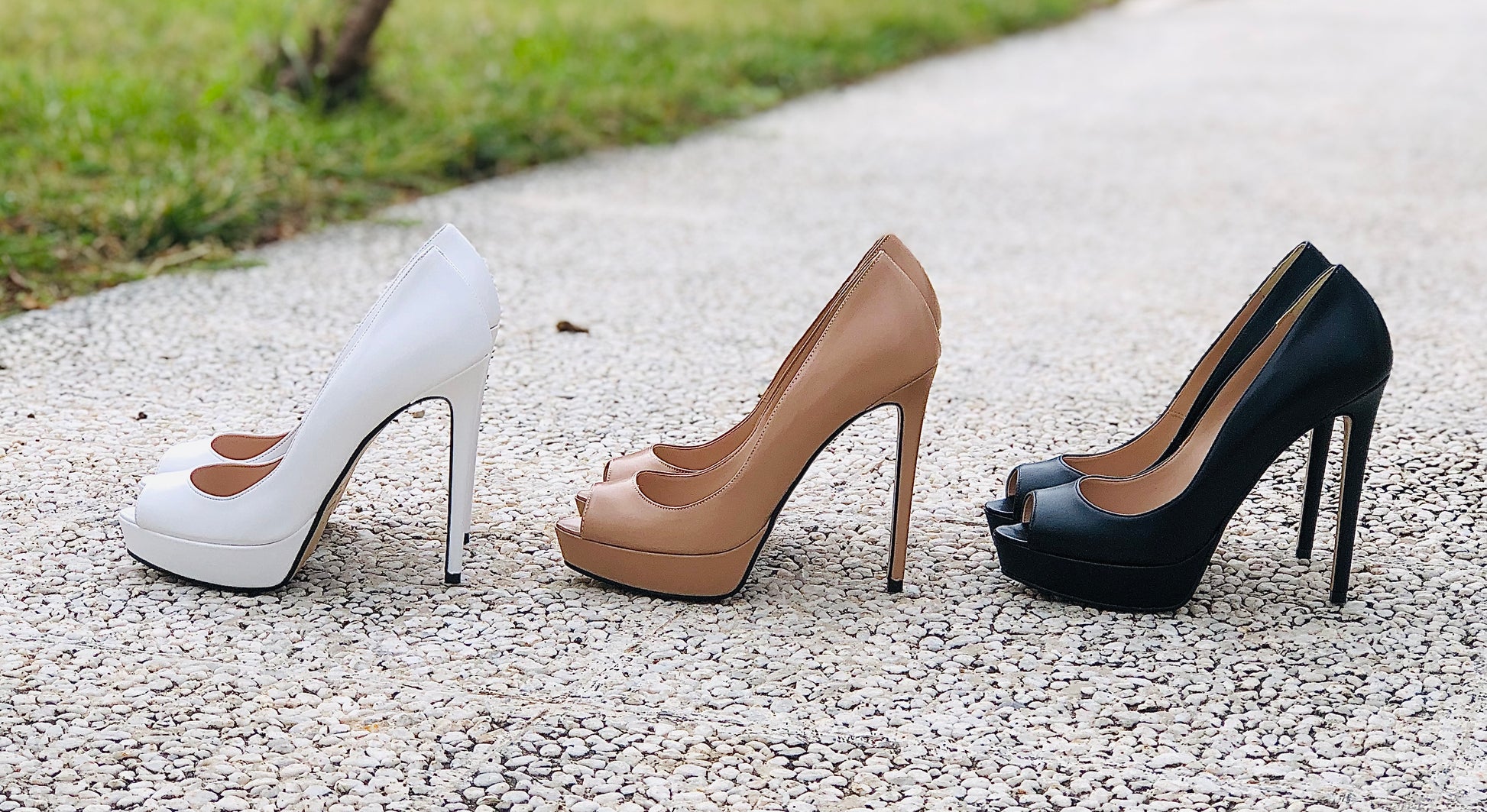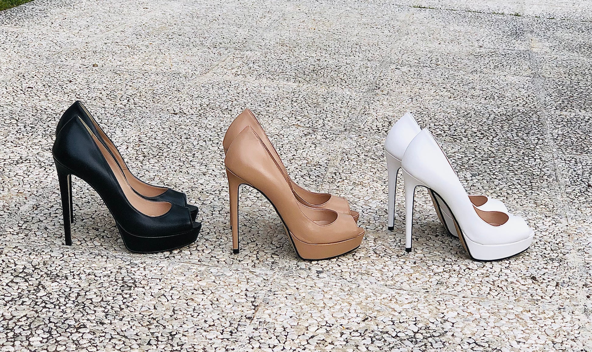 Ανοιχτά γόβα με ψηλό τακούνι 12 cm και πλατφόρμα 2 cm.