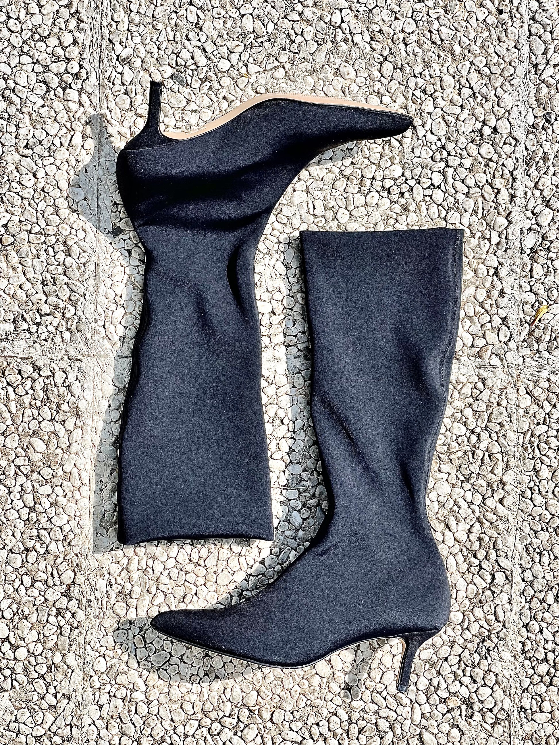 Ελαστικές μπότες με στρογγυλή μύτη από λύκρα, τακούνι 6 εκ.