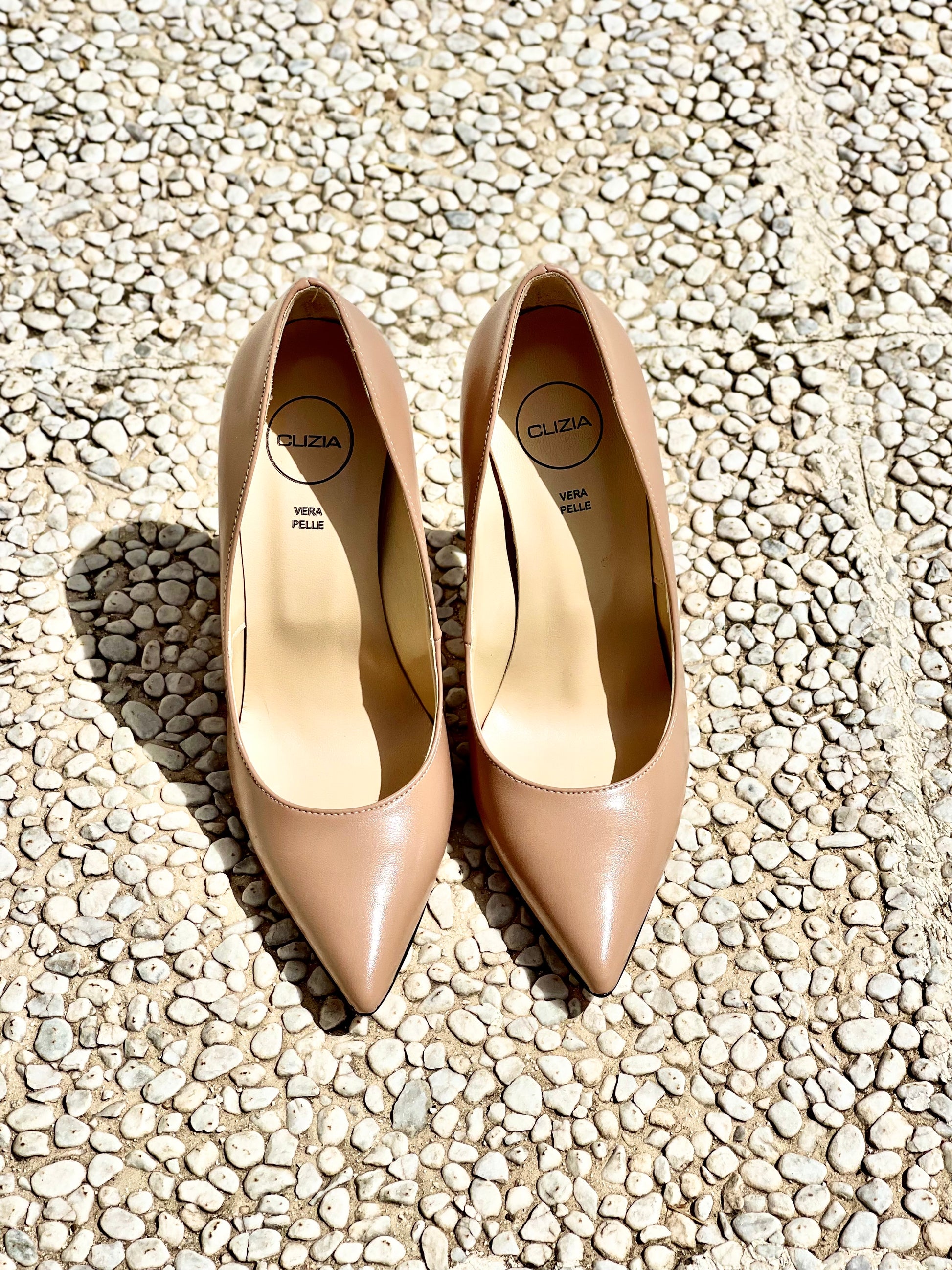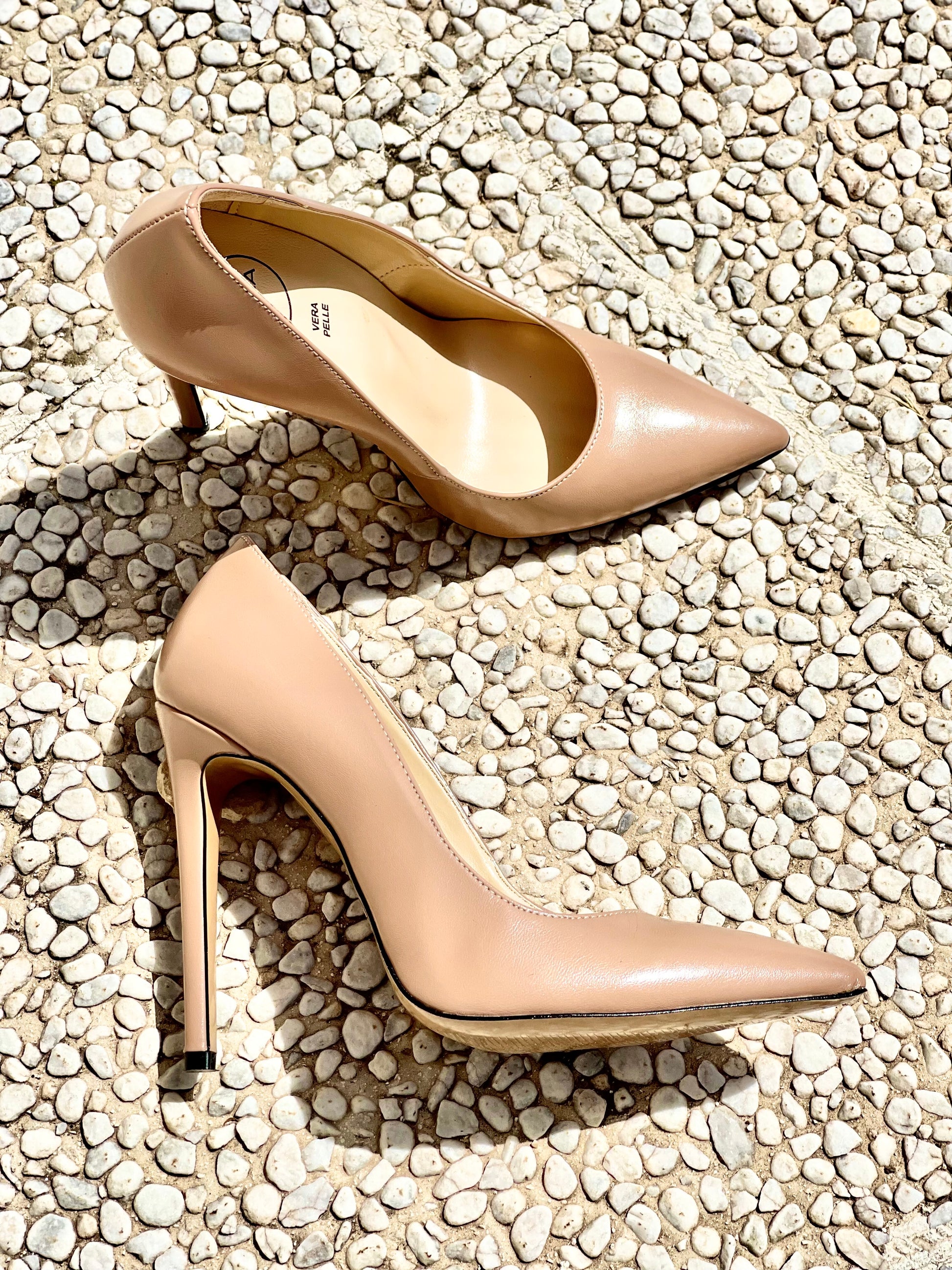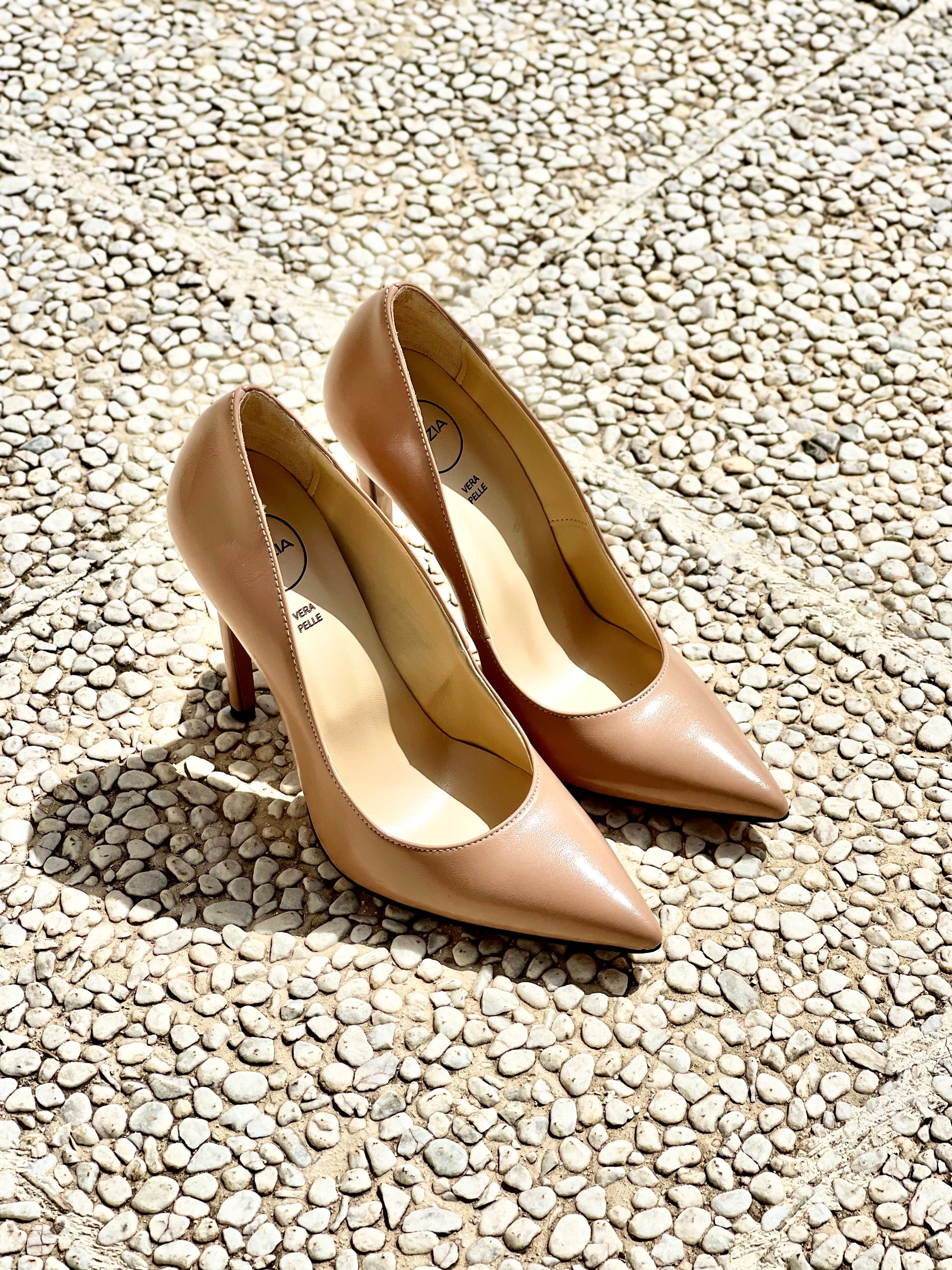 Ανοιχτά γόβα με μυτερή μύτη από δέρμα και ψηλό τακούνι.
