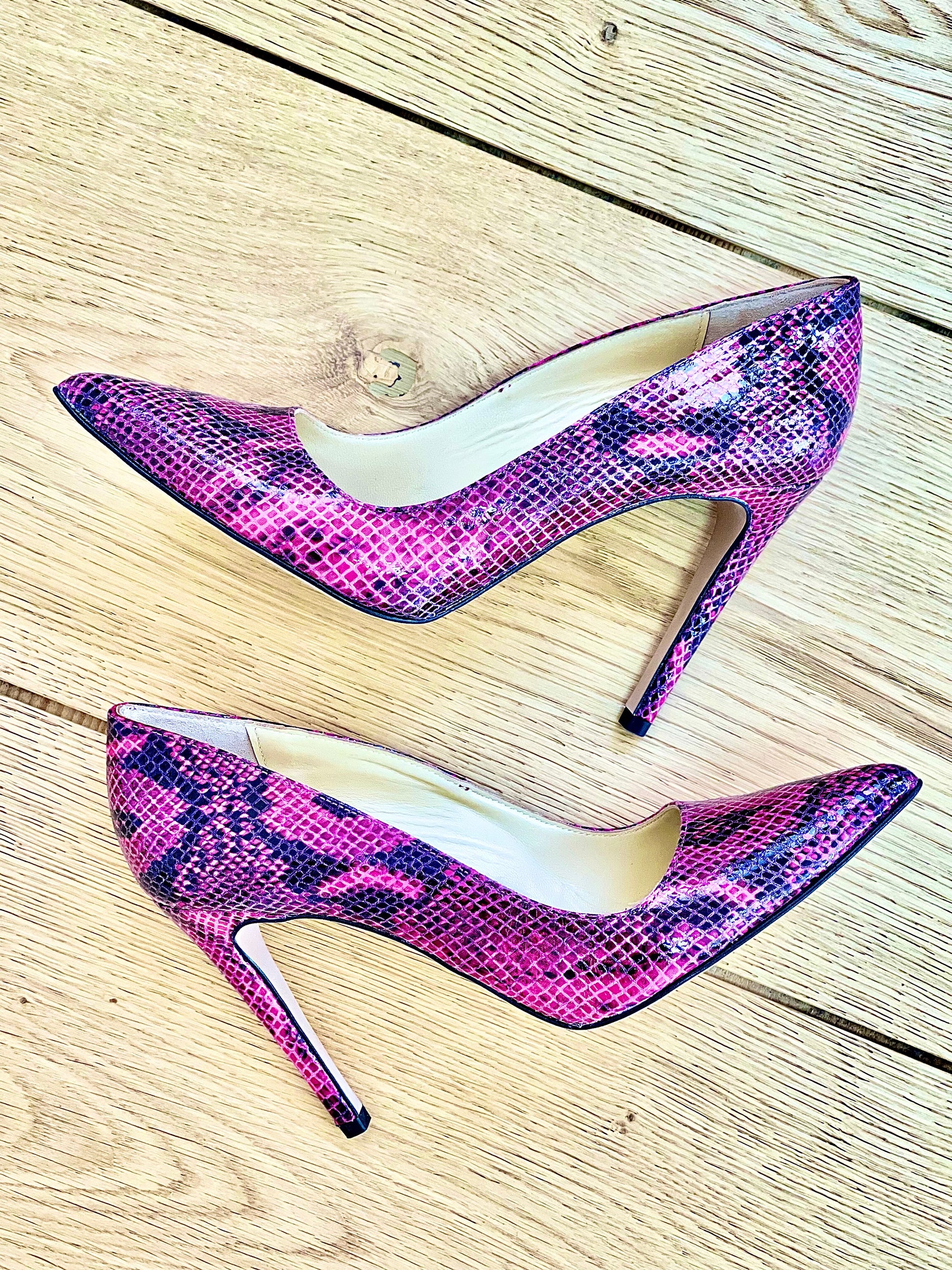 Ανοιχτά γόβα με μυτερή μύτη, animalier μοτίβο και τακούνι 10 εκ.