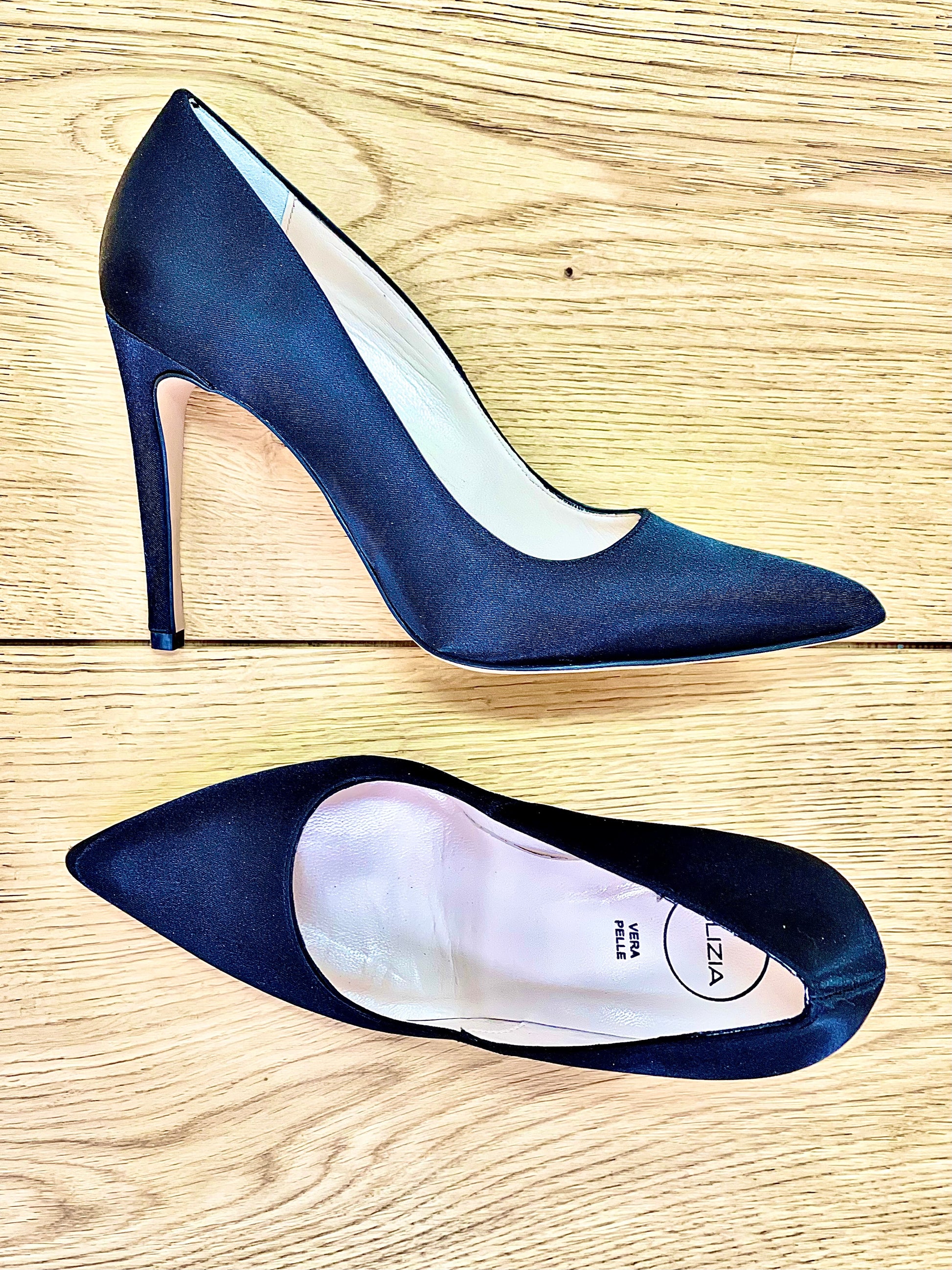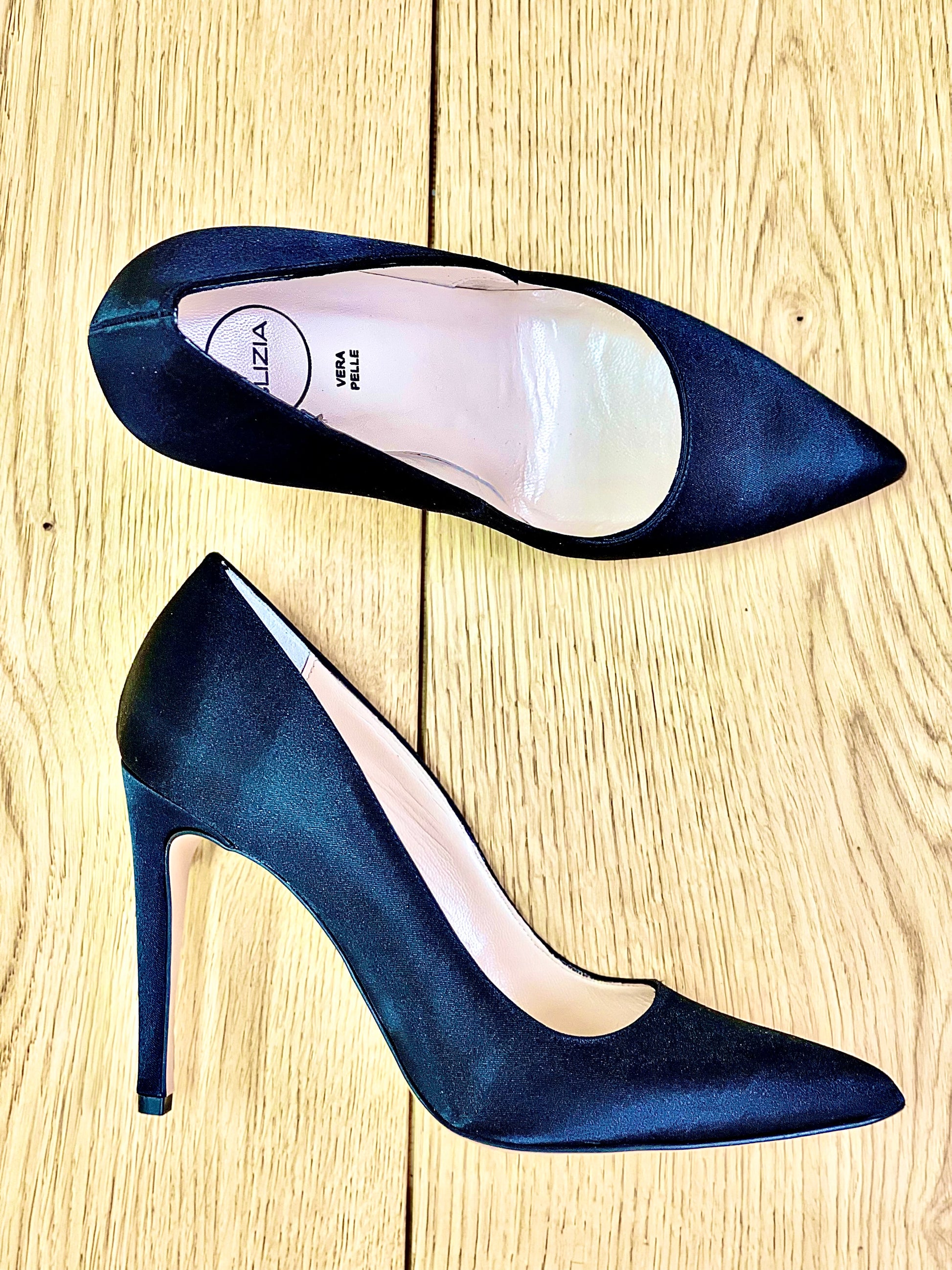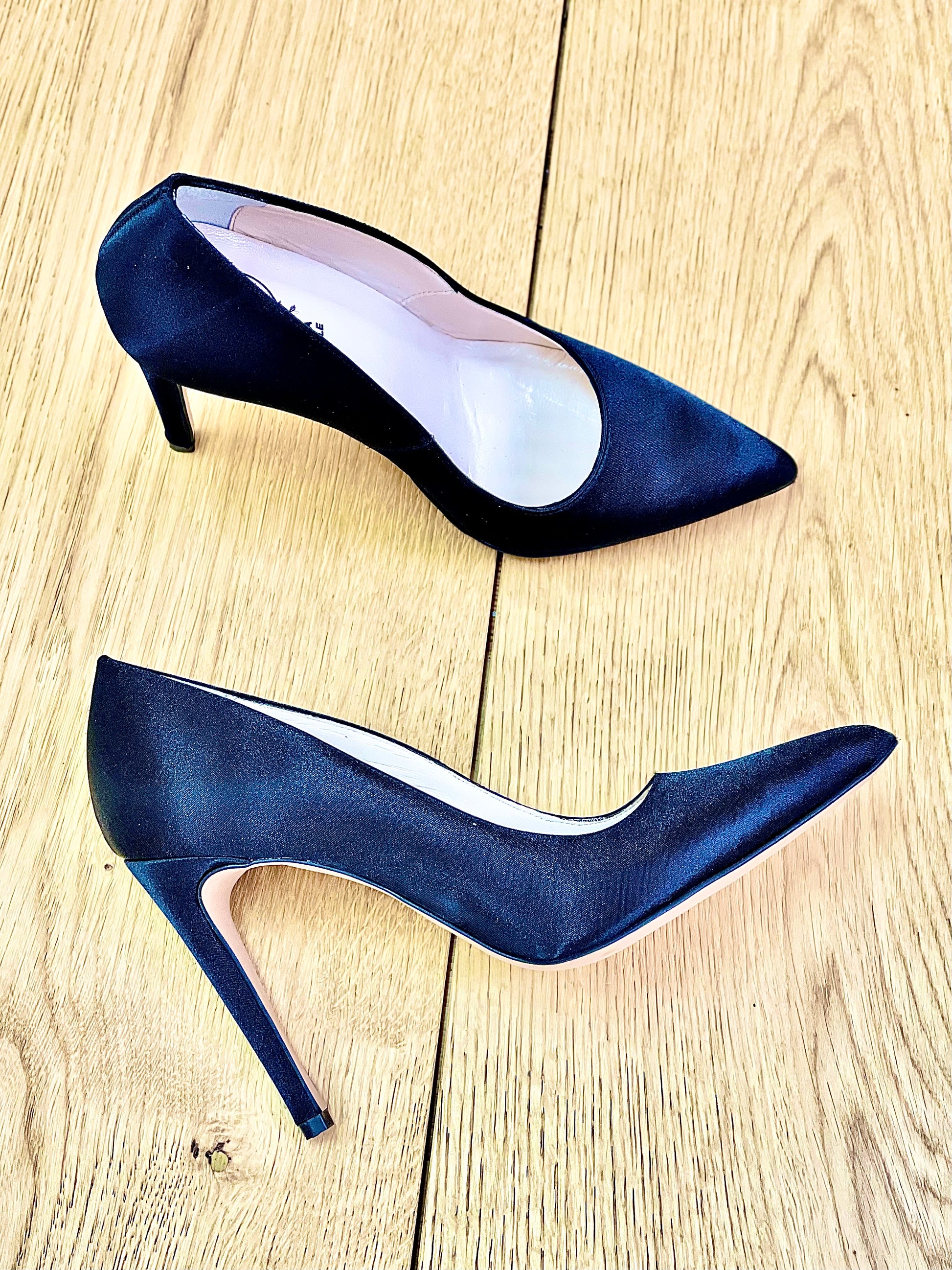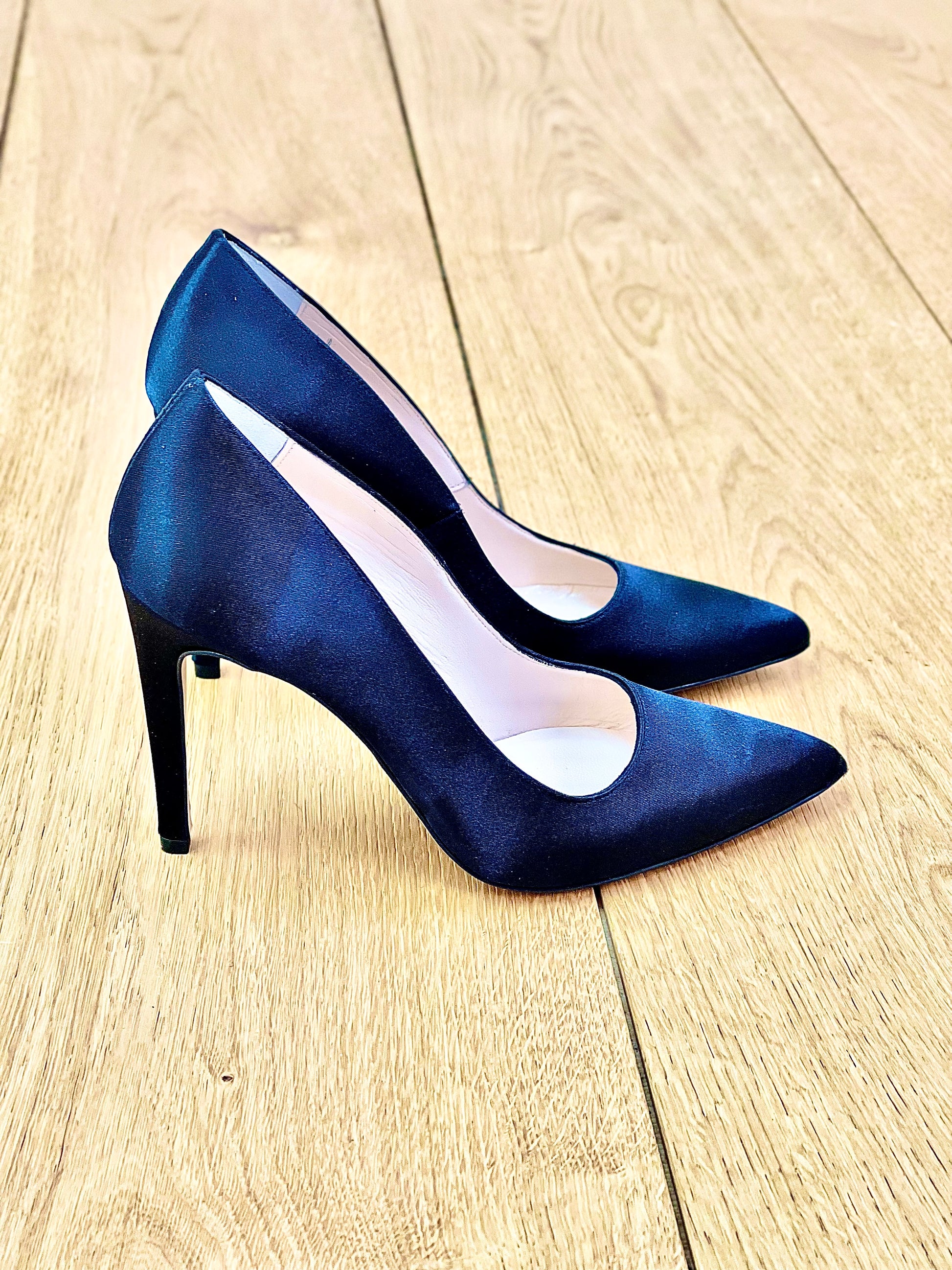 Γόβες με ψηλό τακούνι και μυτερή μύτη από σατέν.