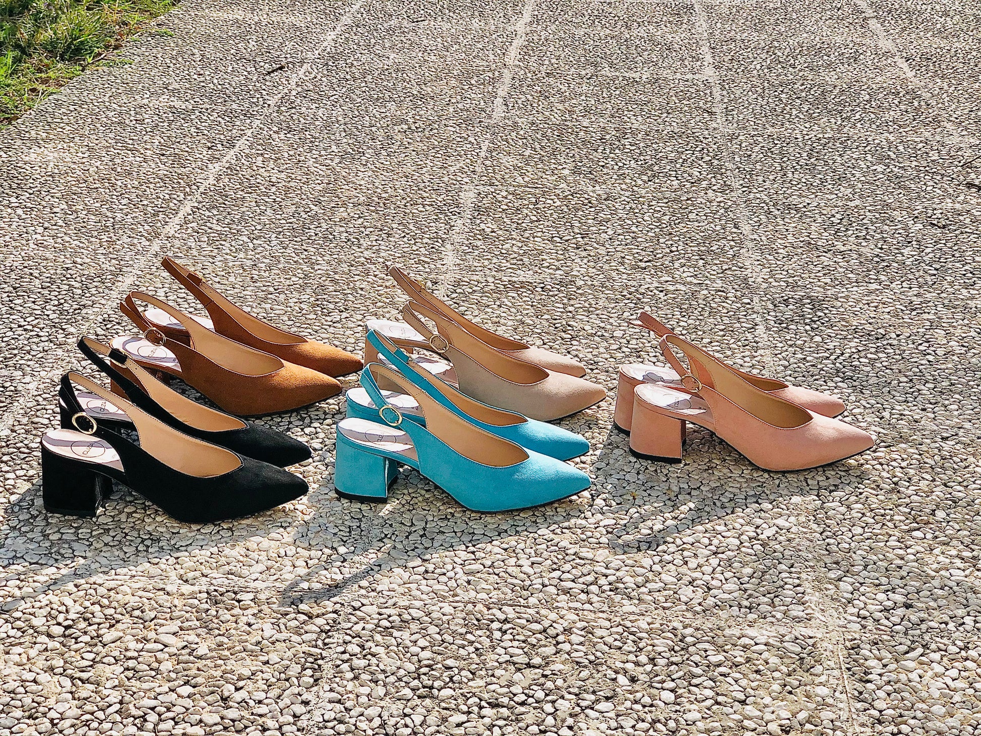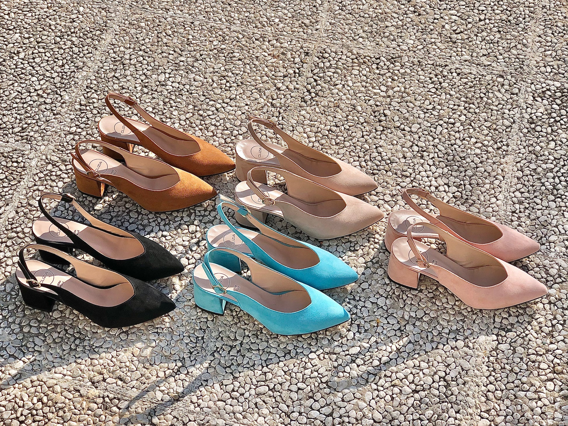 Σανδάλια με V λαιμόκοψη και φαρδύ τακούνι.