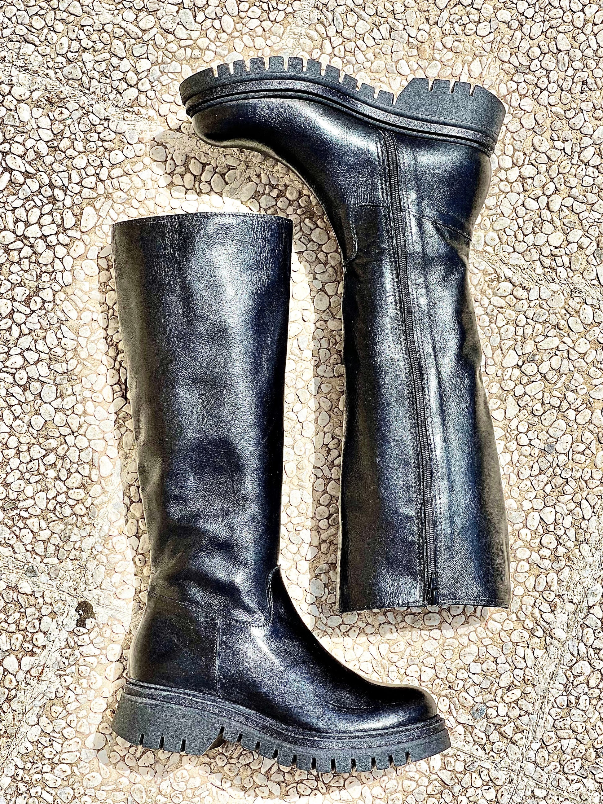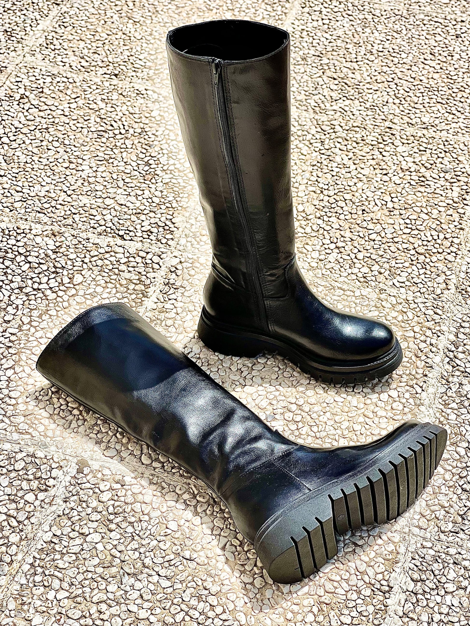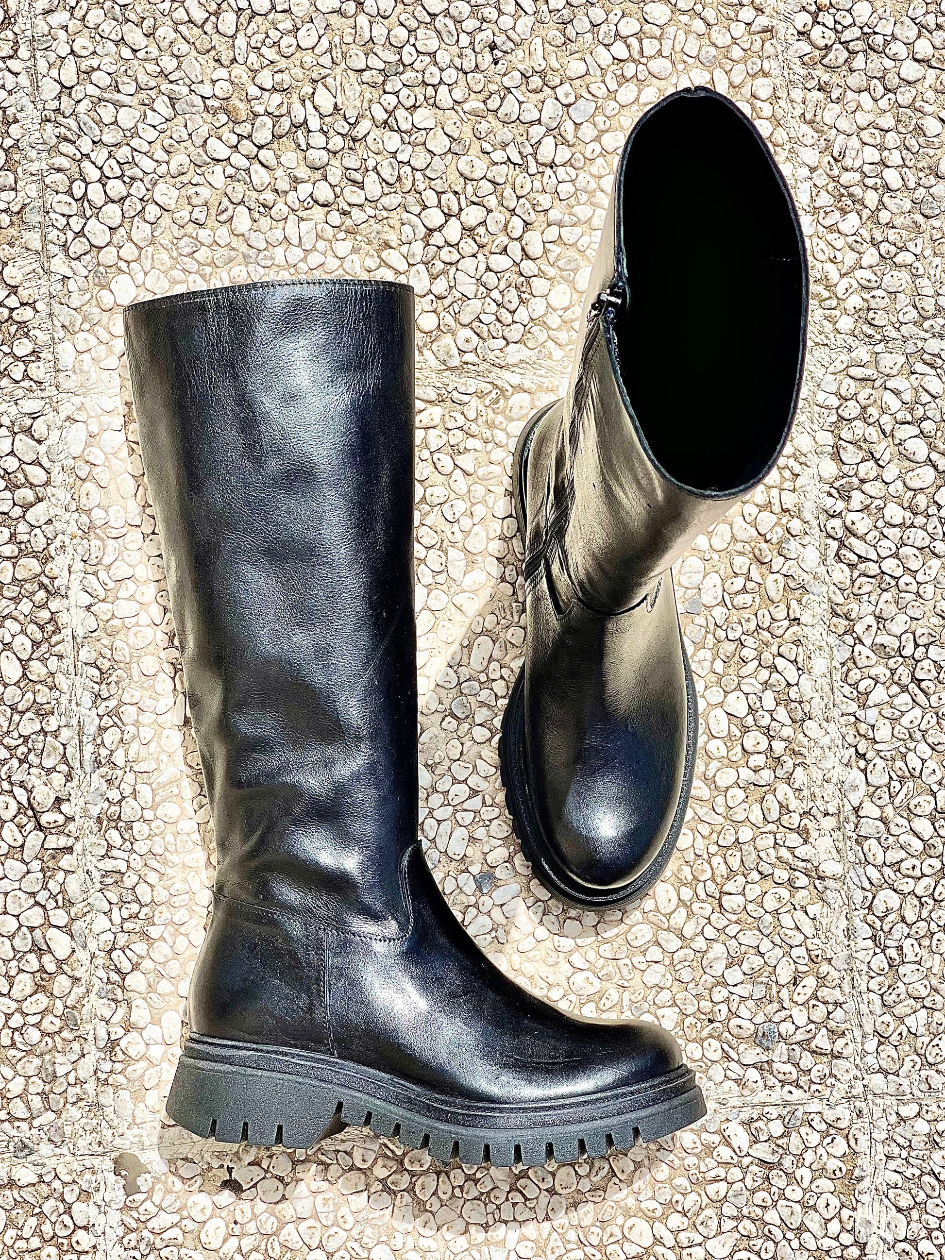 Μπότες με εσωτερικό φερμουάρ από δέρμα, τακούνι 3 εκ.