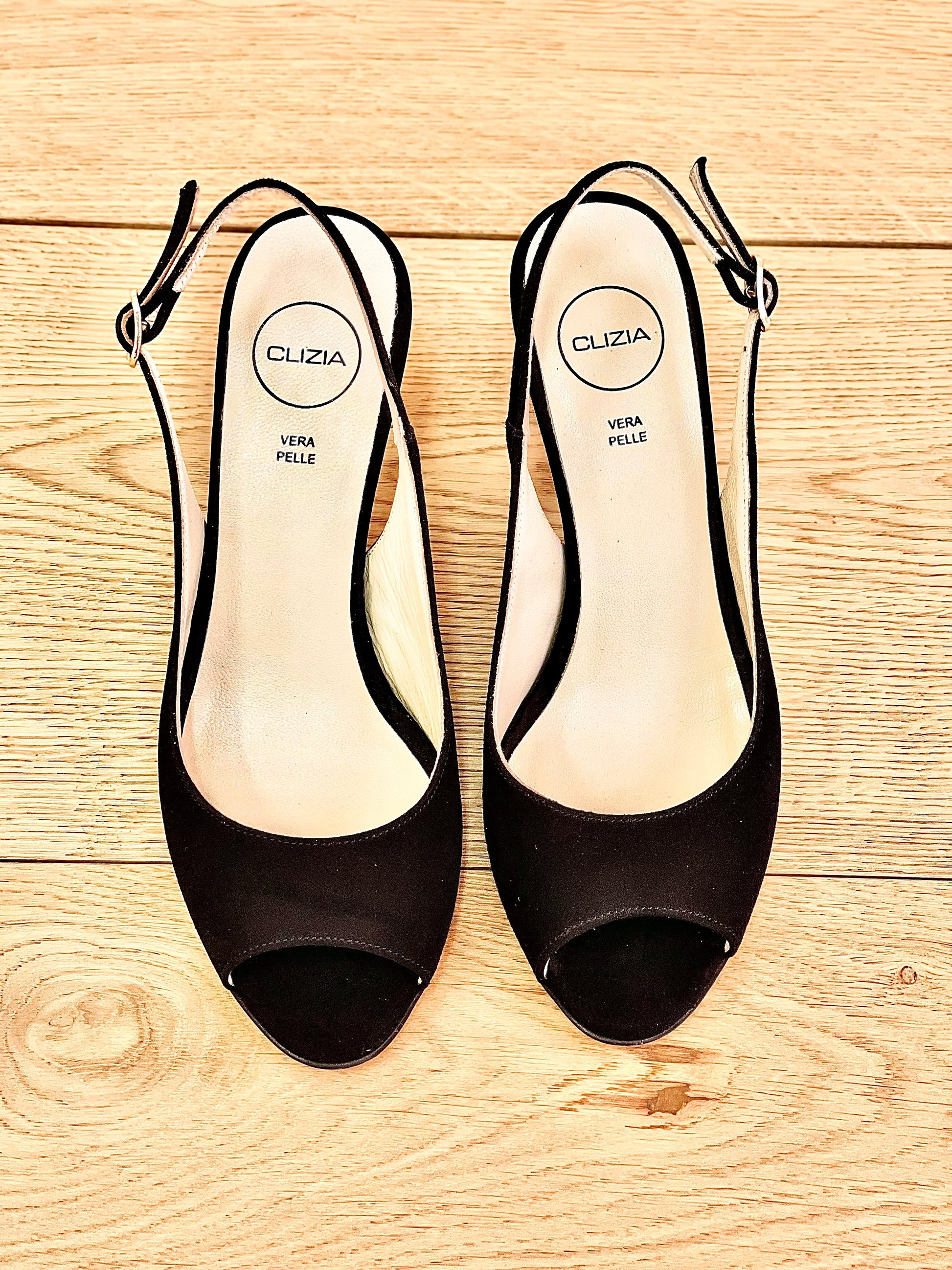 Ανοιχτά γόβα slingback από σουέτ με τακούνι 7,5 cm.