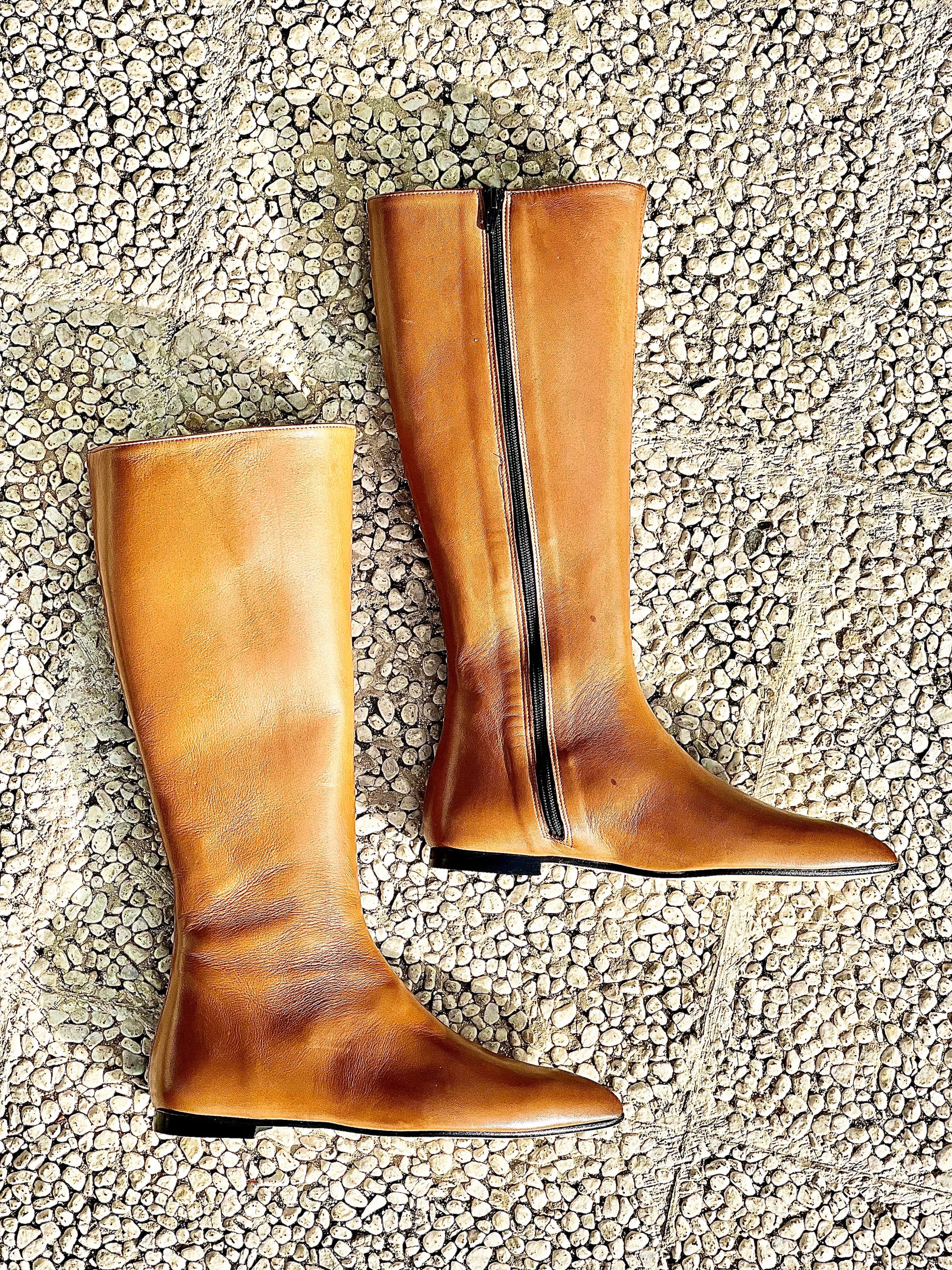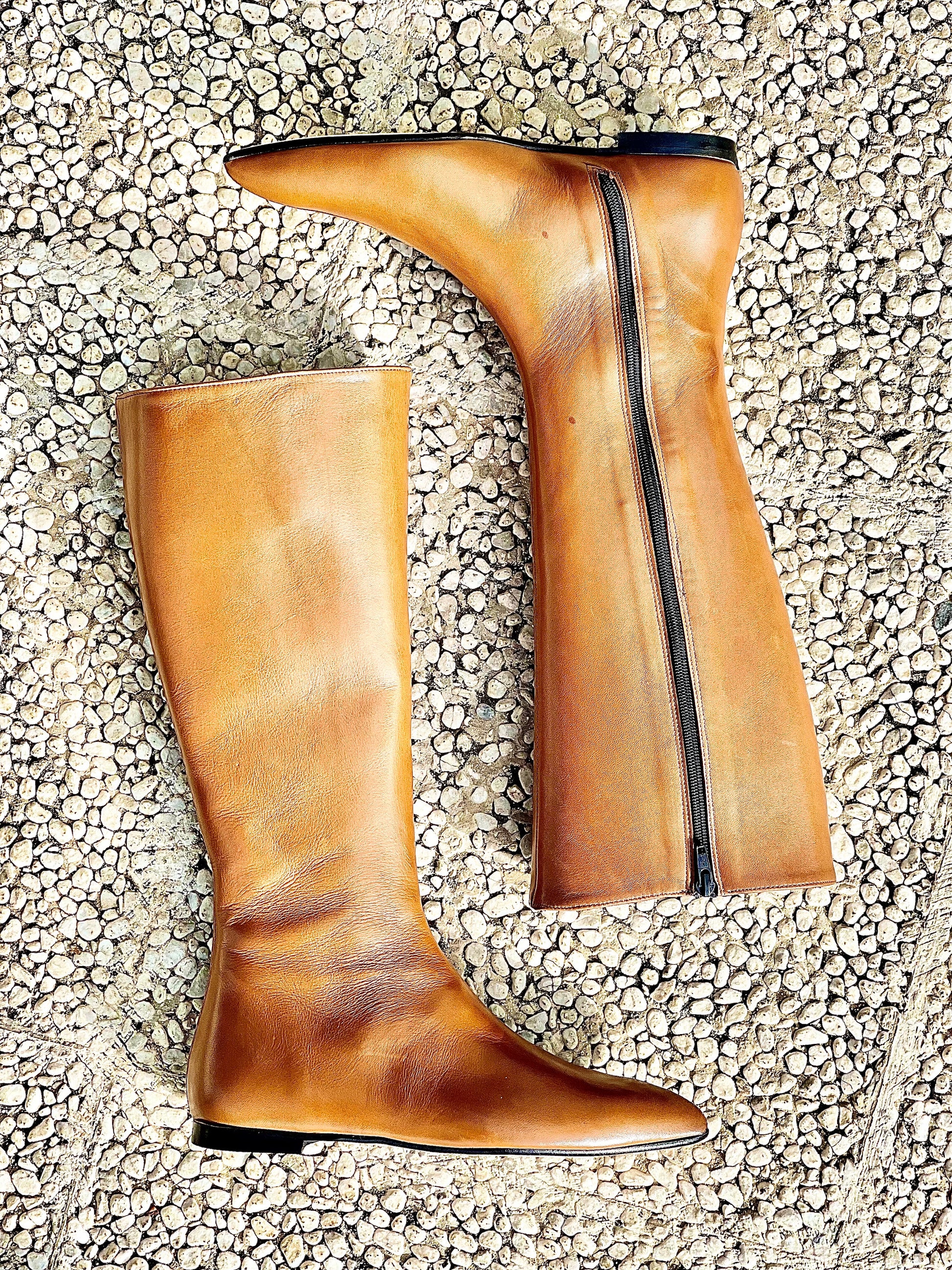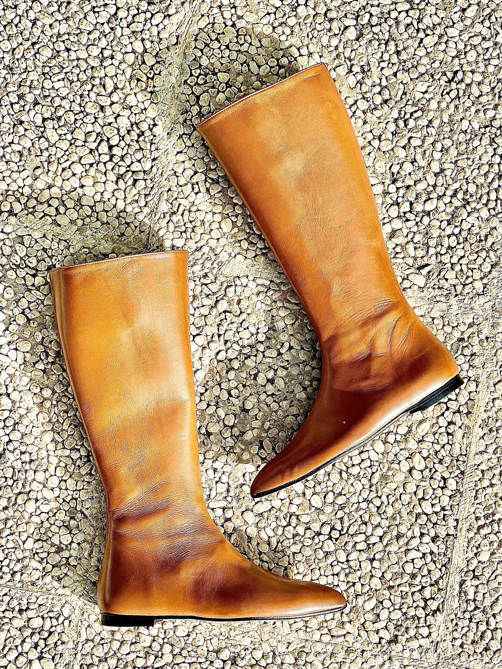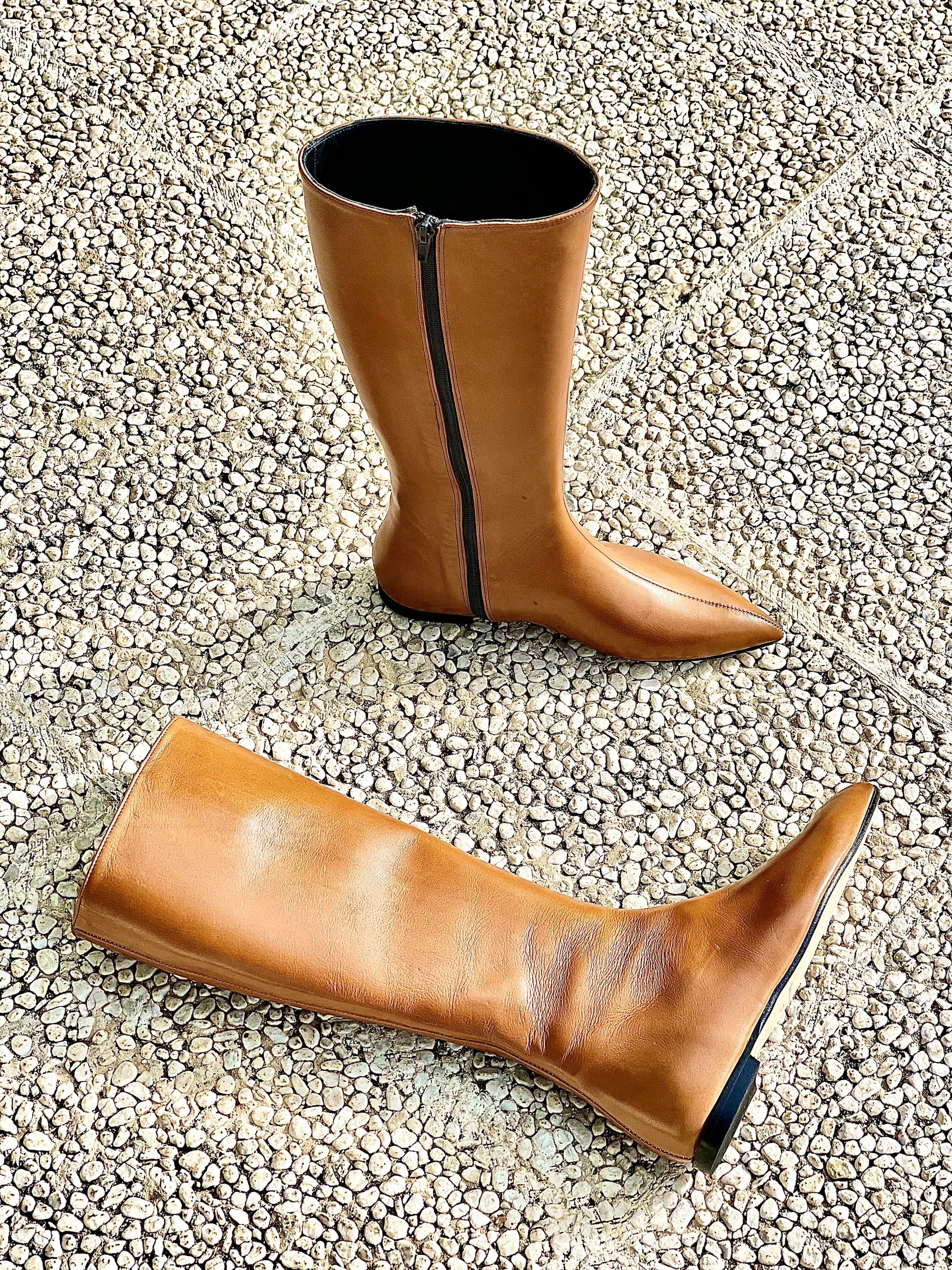 Μπότες με μυτερή μύτη από δέρμα, τακούνι 1 cm.