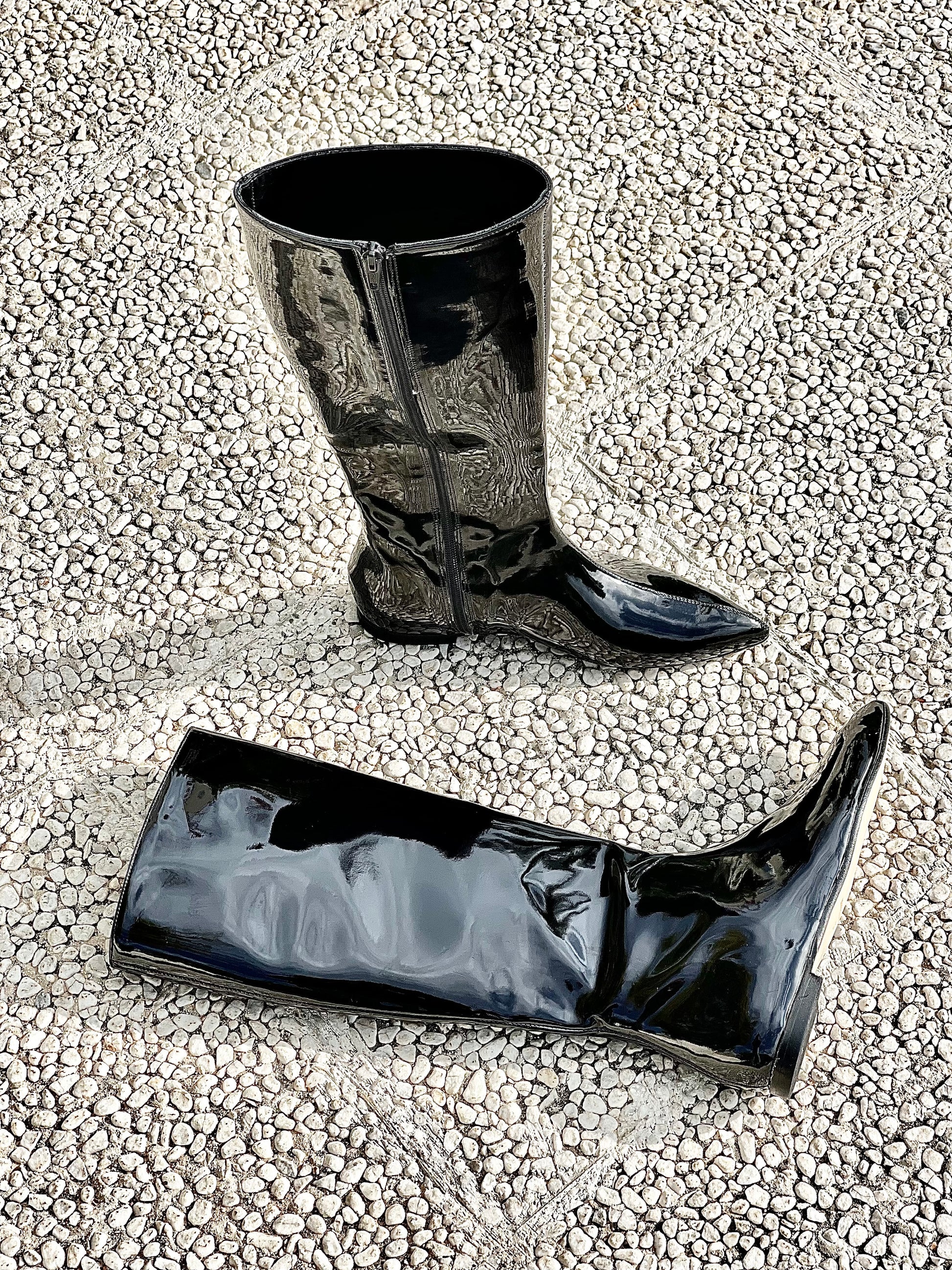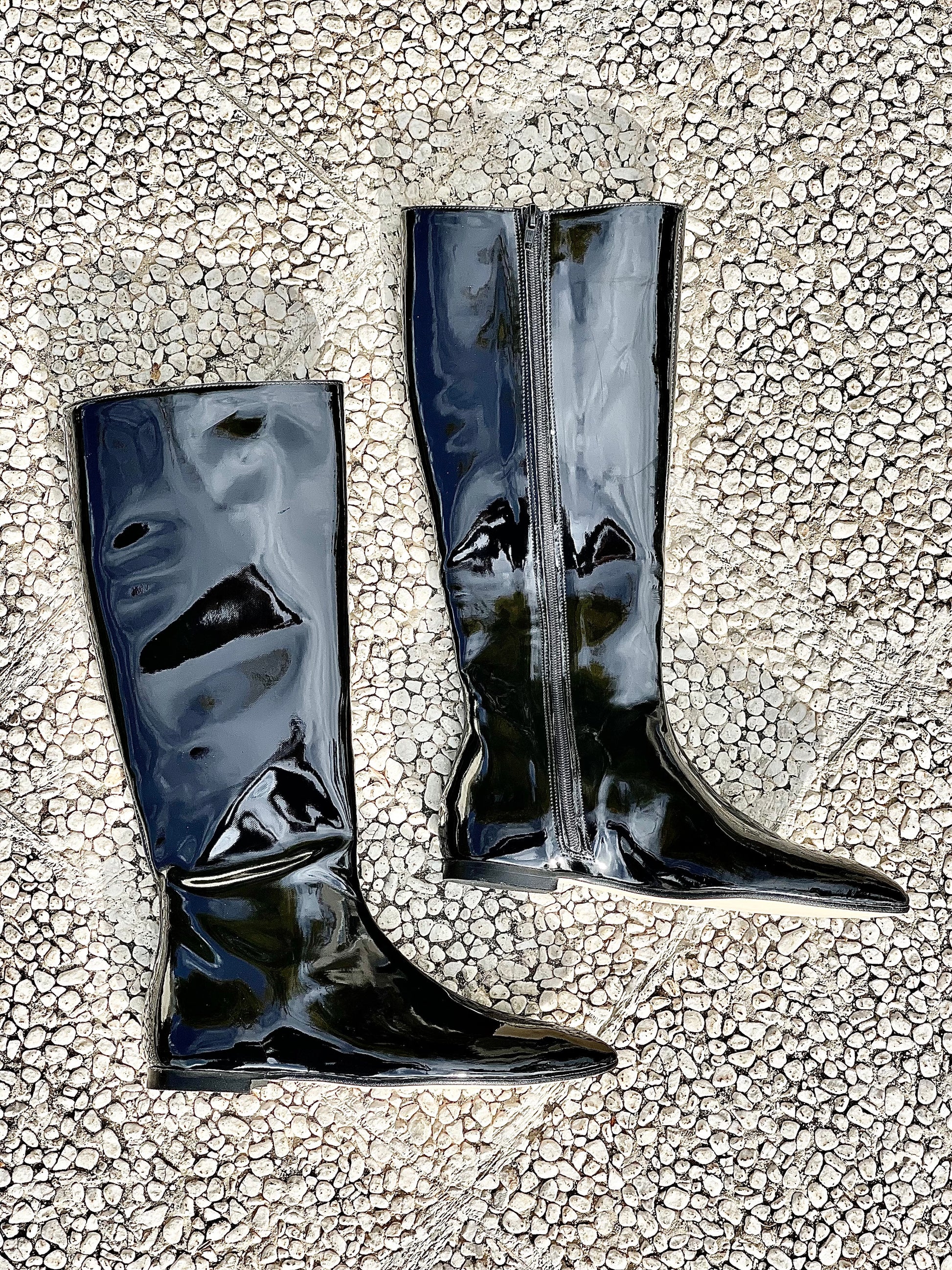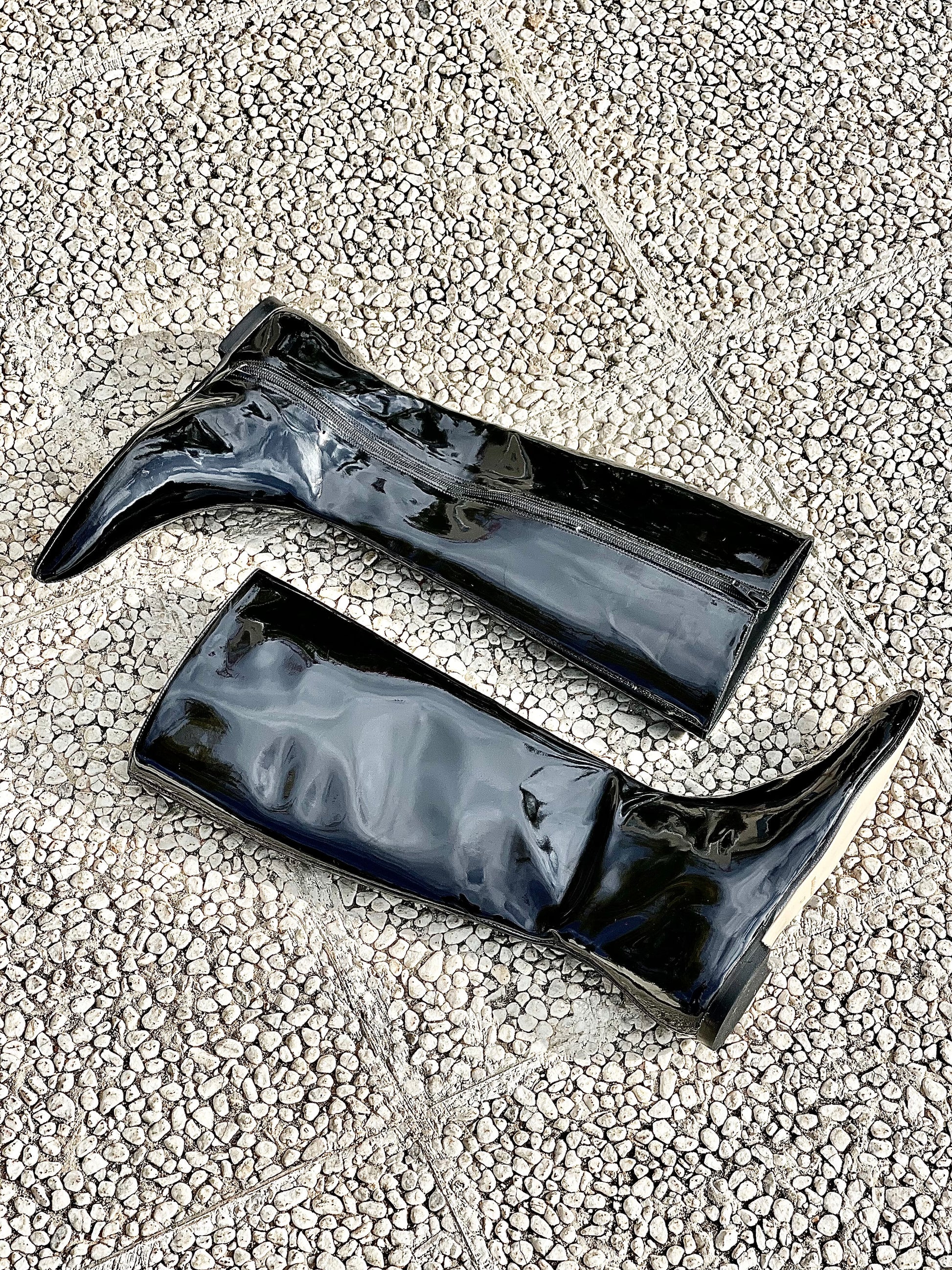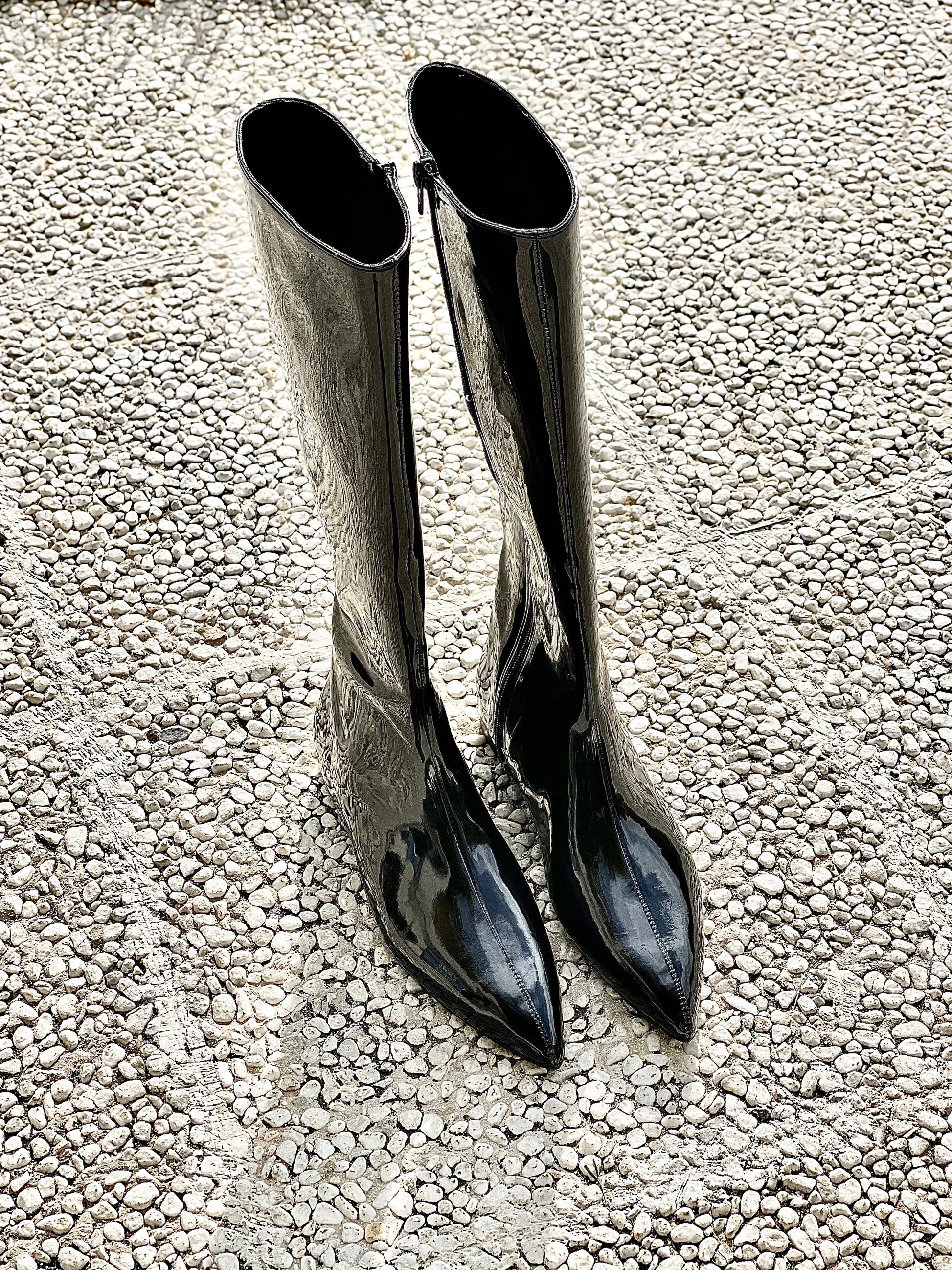 Μπότες με μυτερή μύτη από βερνίκι, τακούνι 1 cm.