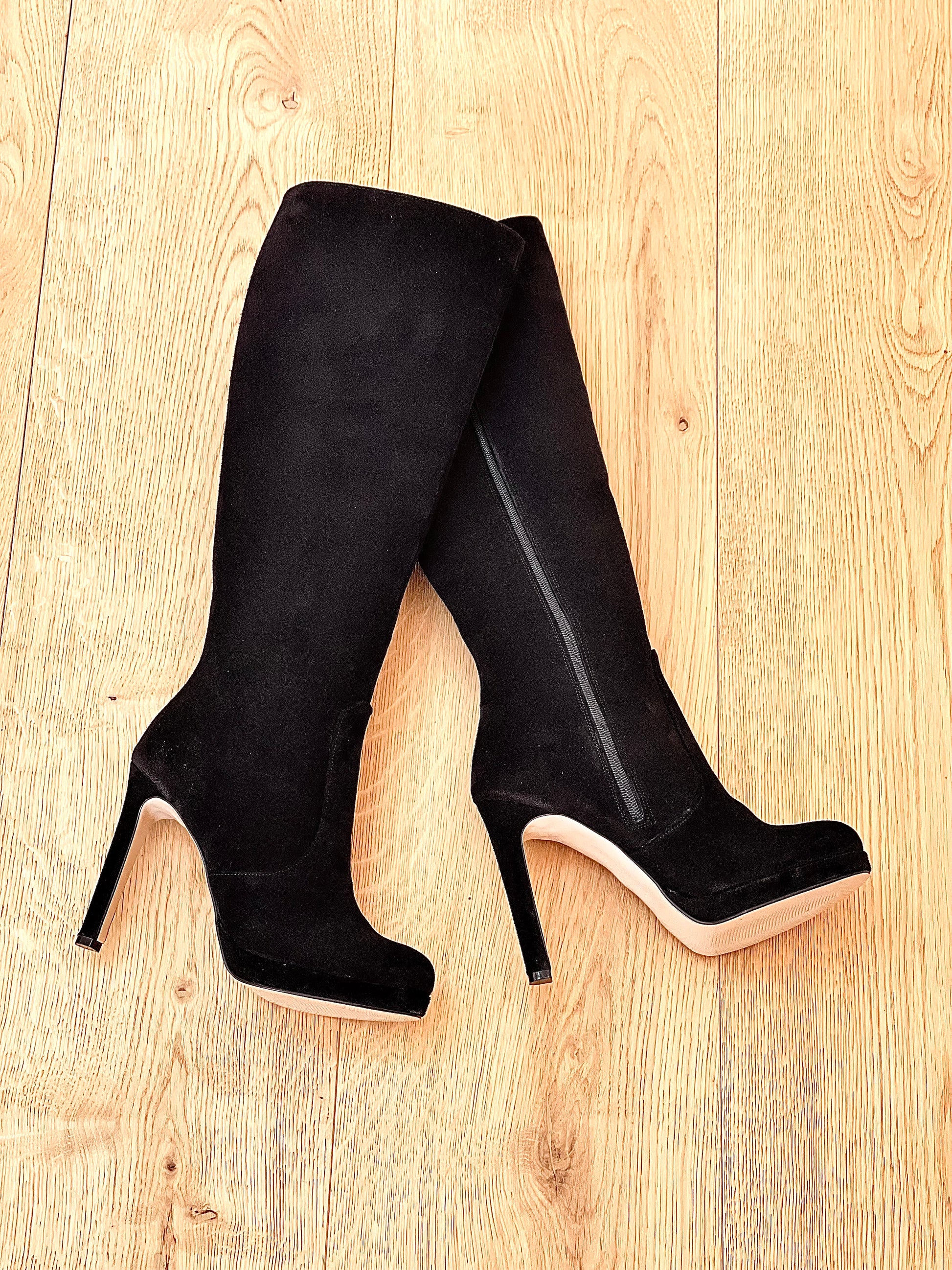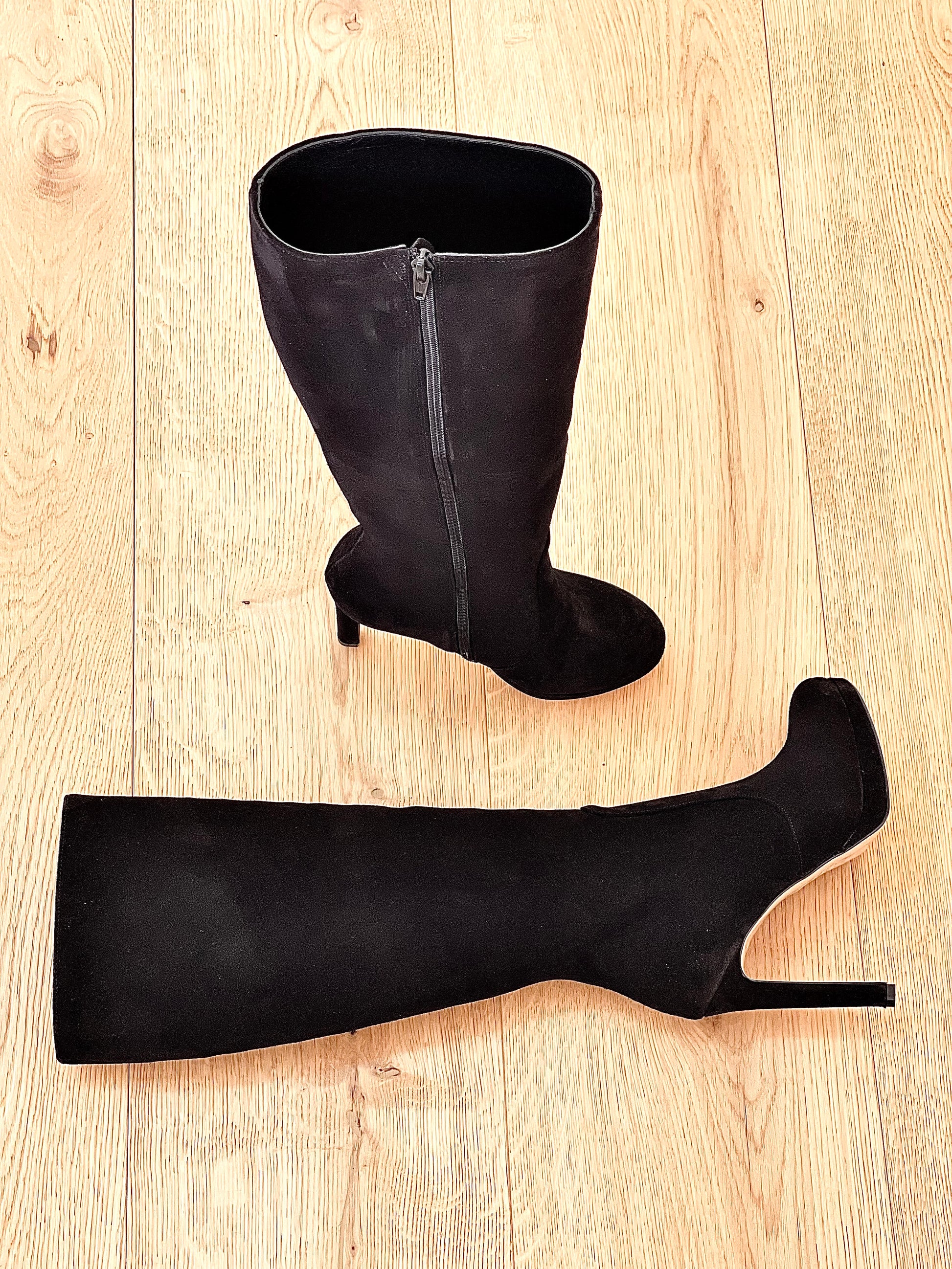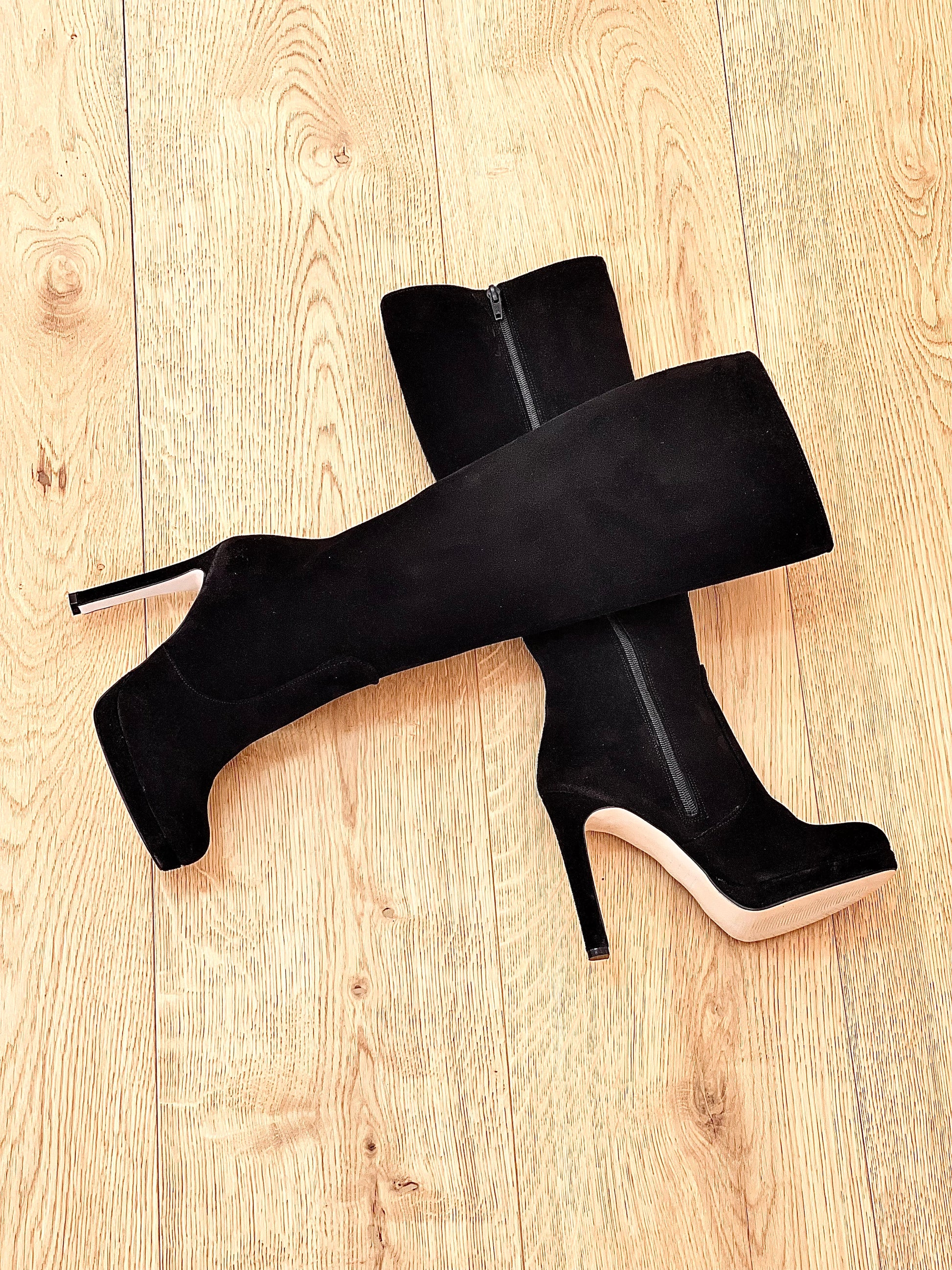 Κομψά μποτάκια με στρογγυλή μύτη, από σουέτ, με πλατφόρμα και ψηλό τακούνι.