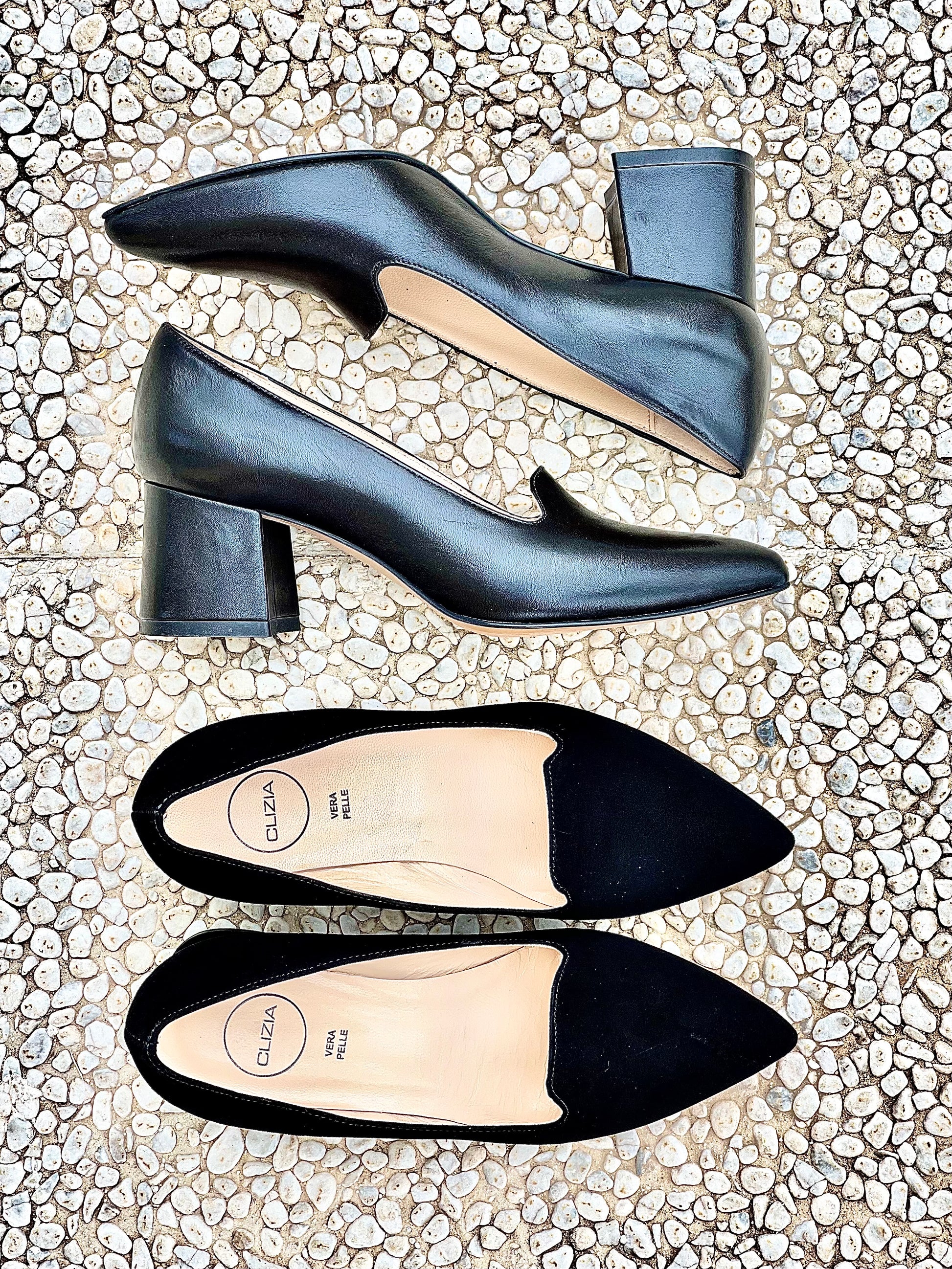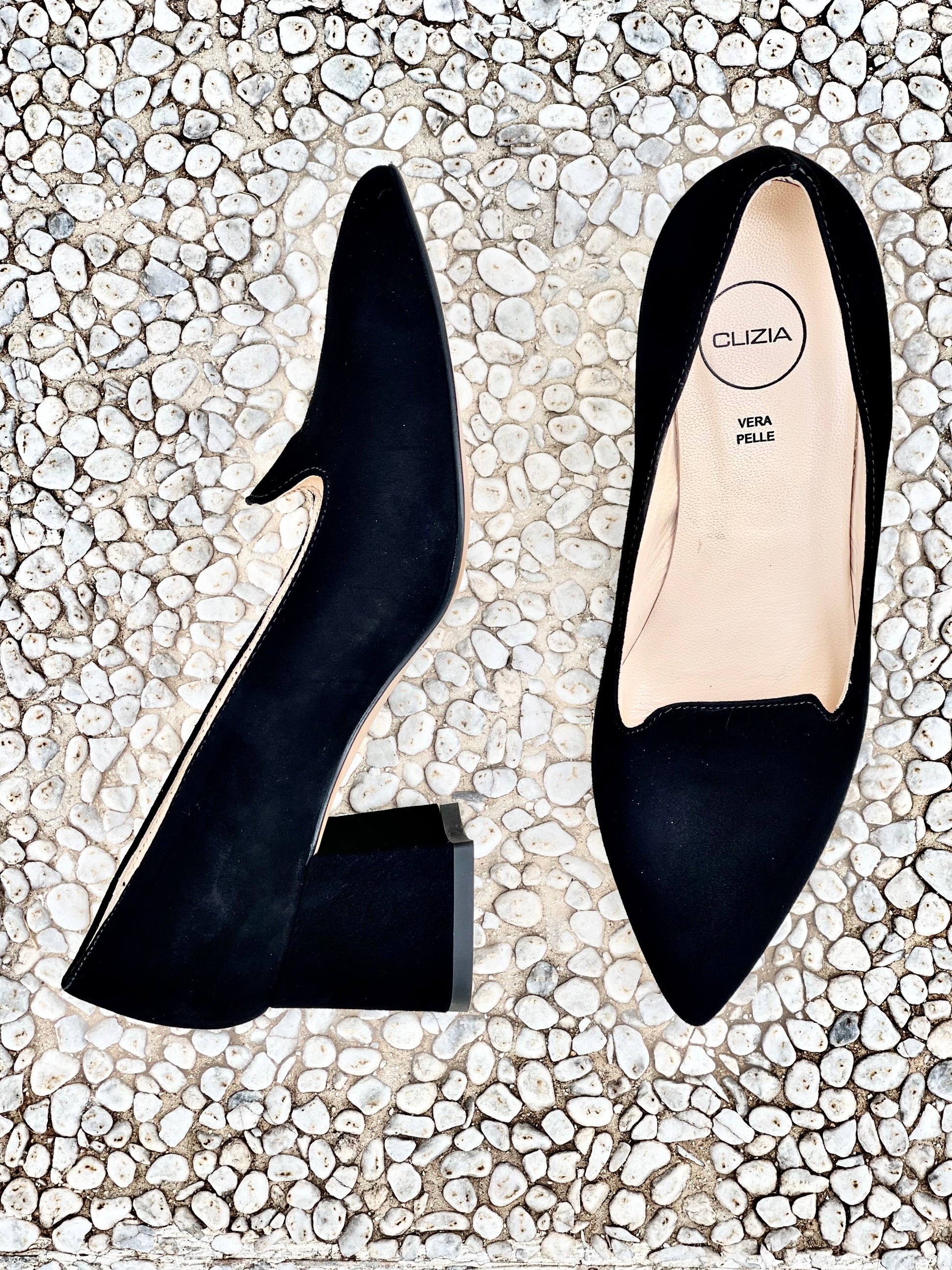 Μοκασίνια γόβες με μυτερή μύτη και φαρδύ τακούνι 55 mm.