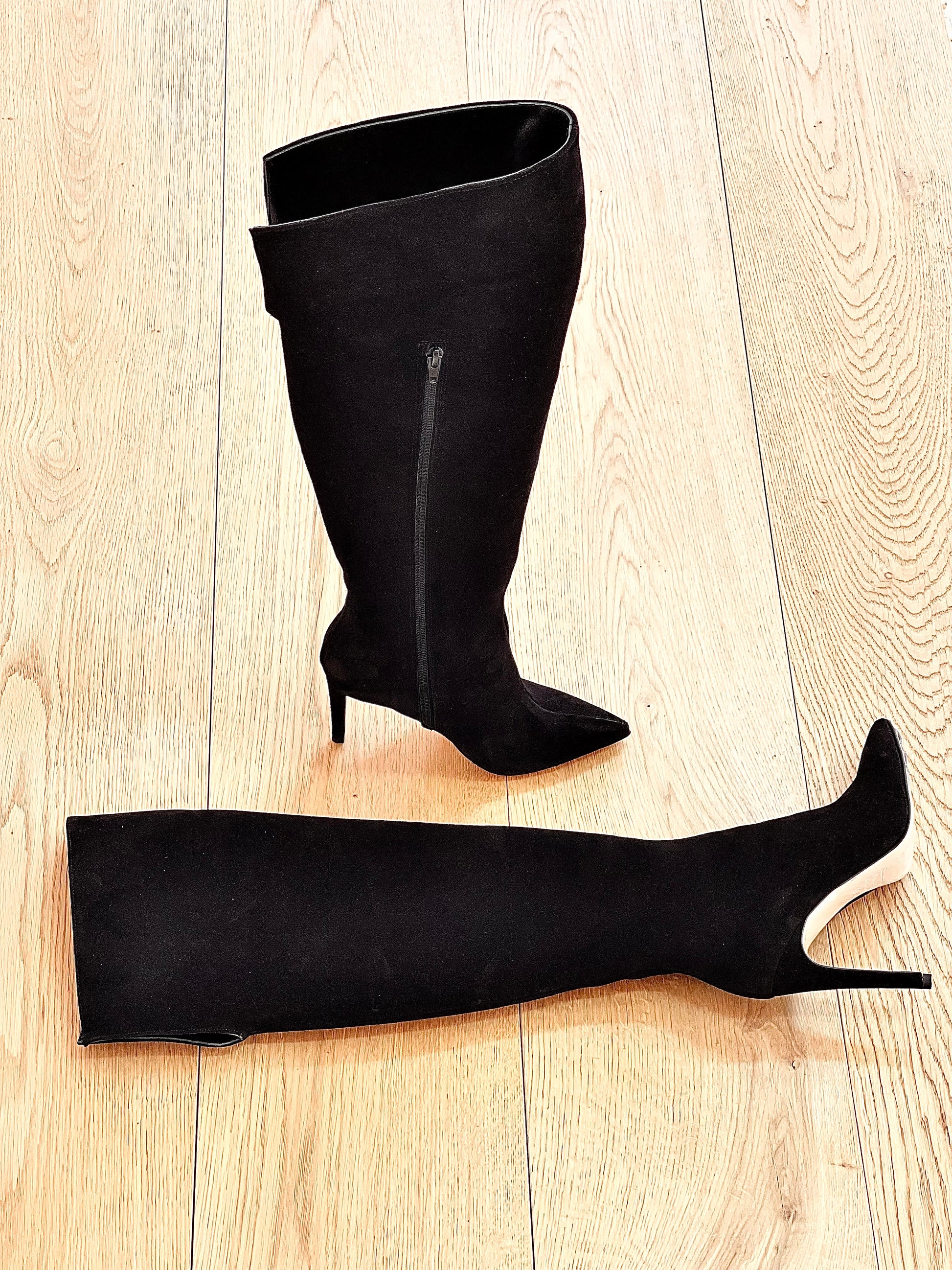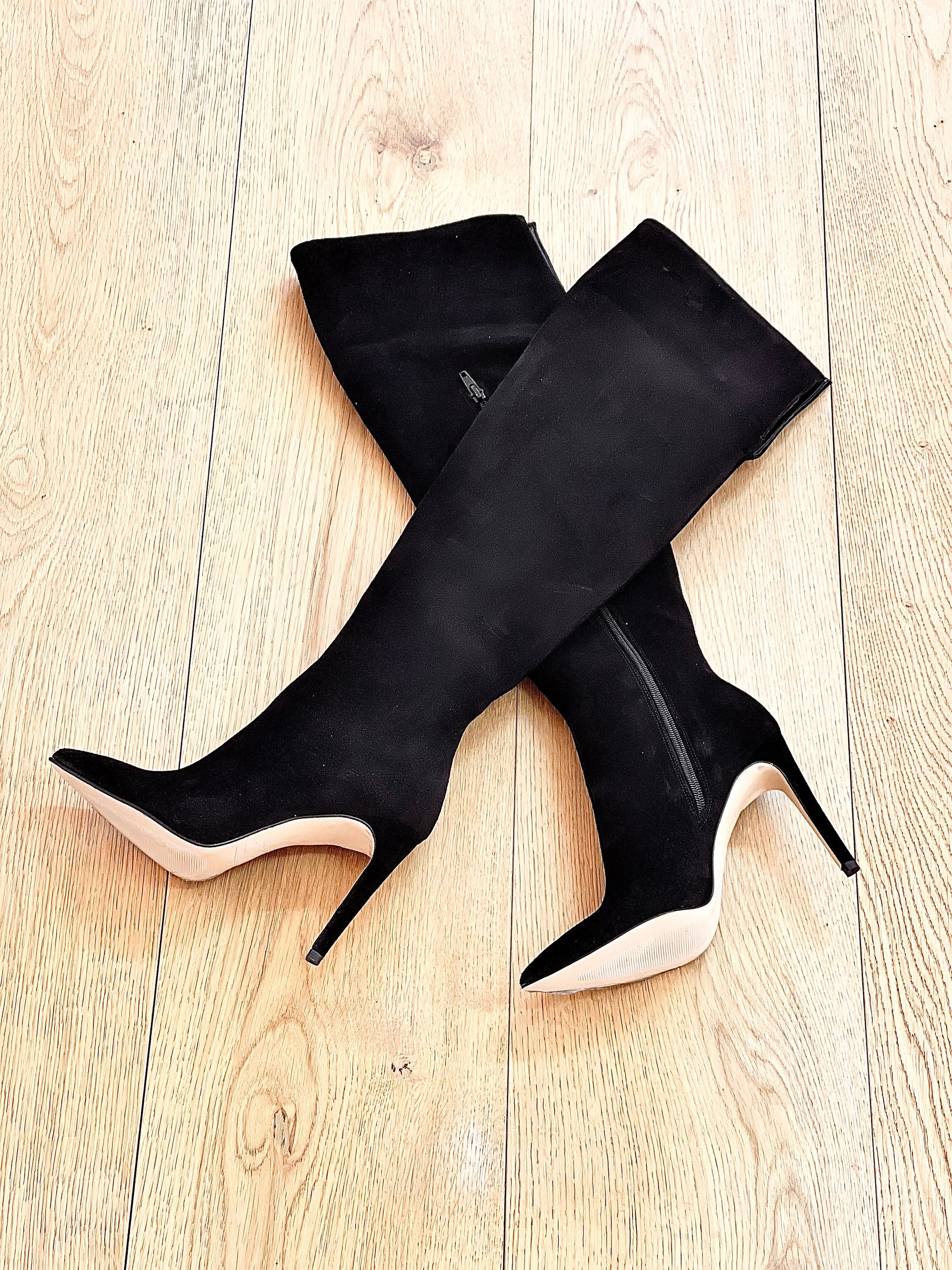 Μπότες πάνω από το γόνατο με ανοιχτή μύτη, από σουέτ, με τακούνι 10 εκ.