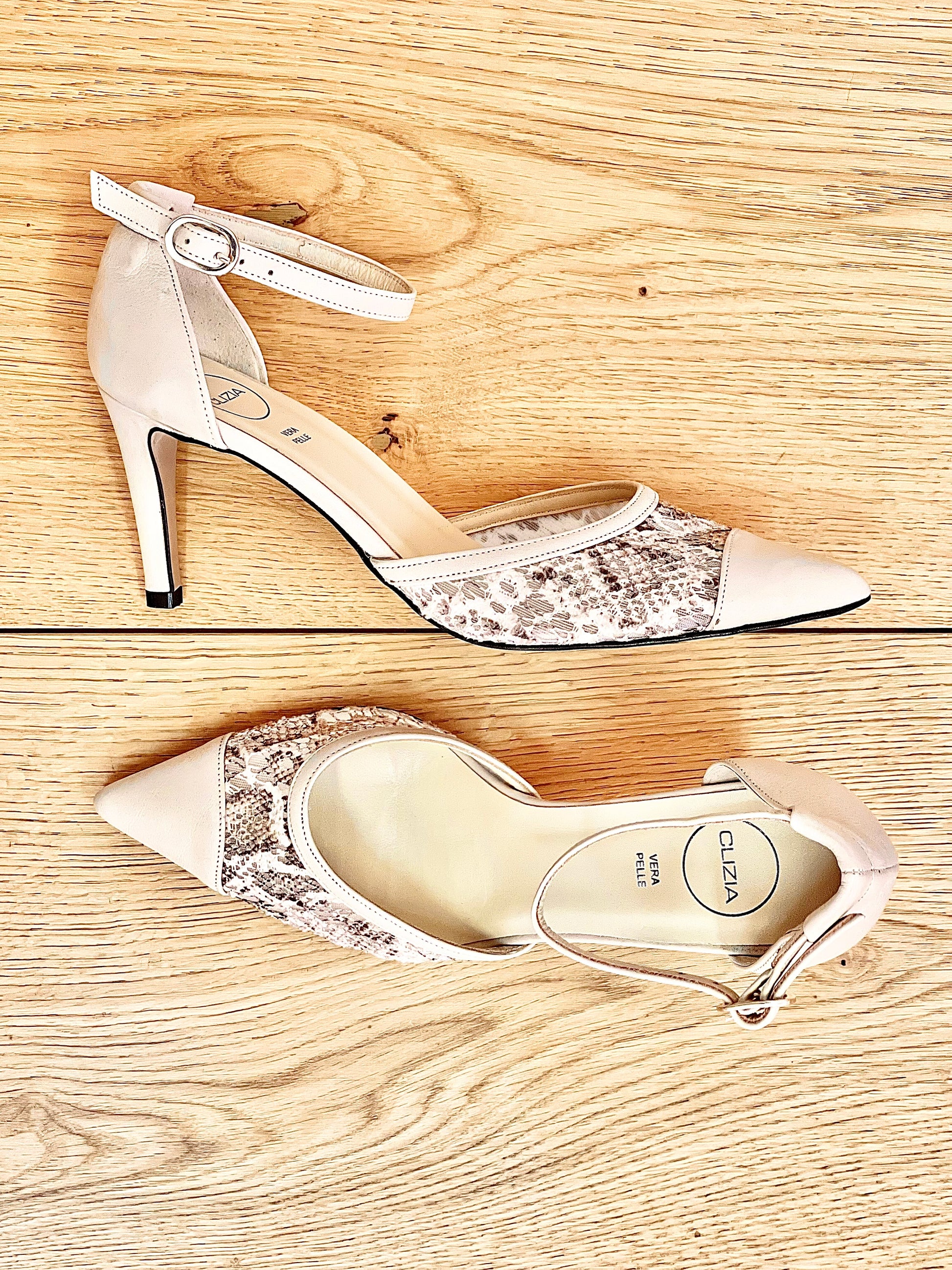 Γόβες με μύτη και τακούνι από δίχτυ με animalier μοτίβο και δερμάτινη μύτη, τακούνι 7 εκ.