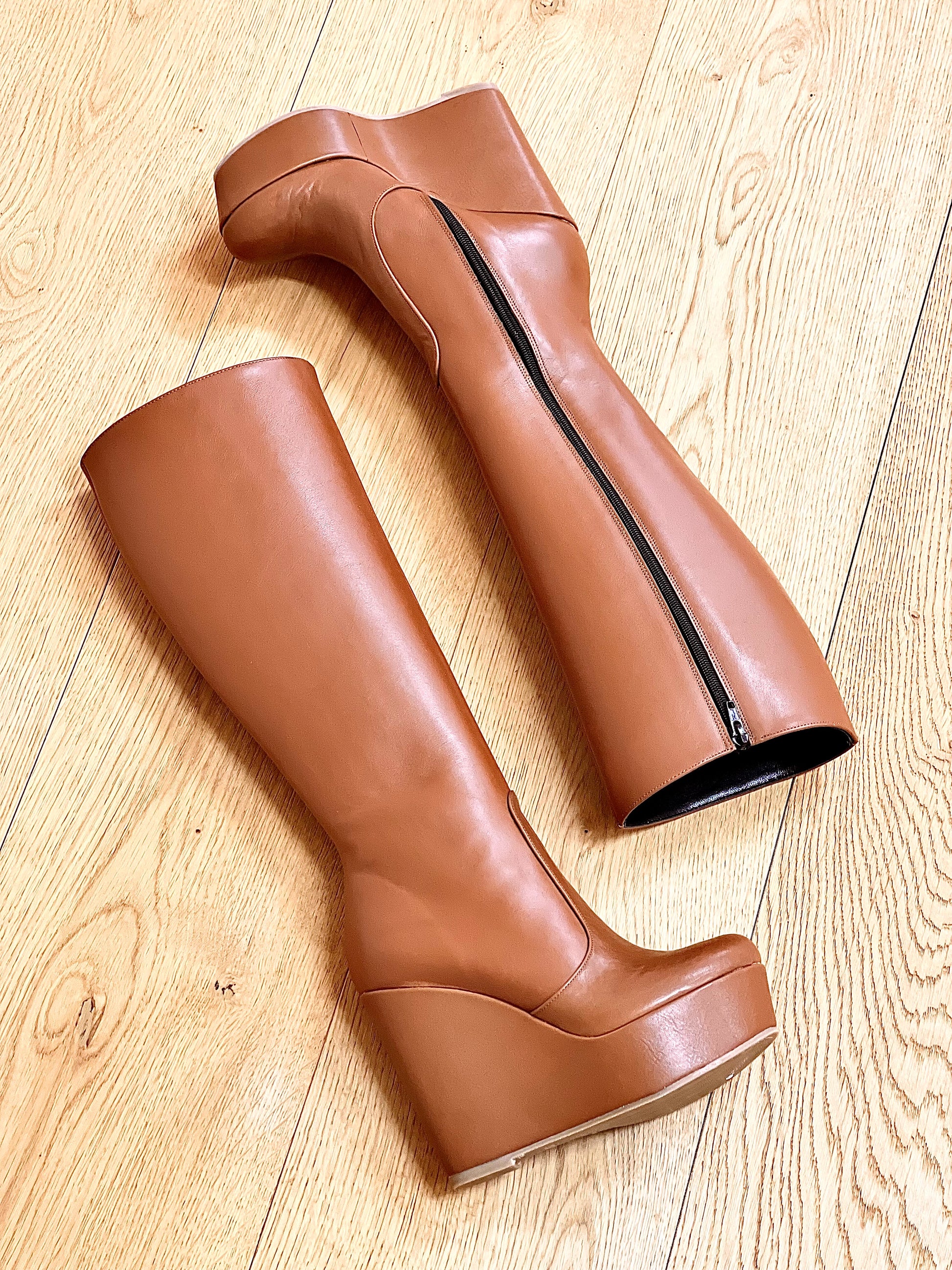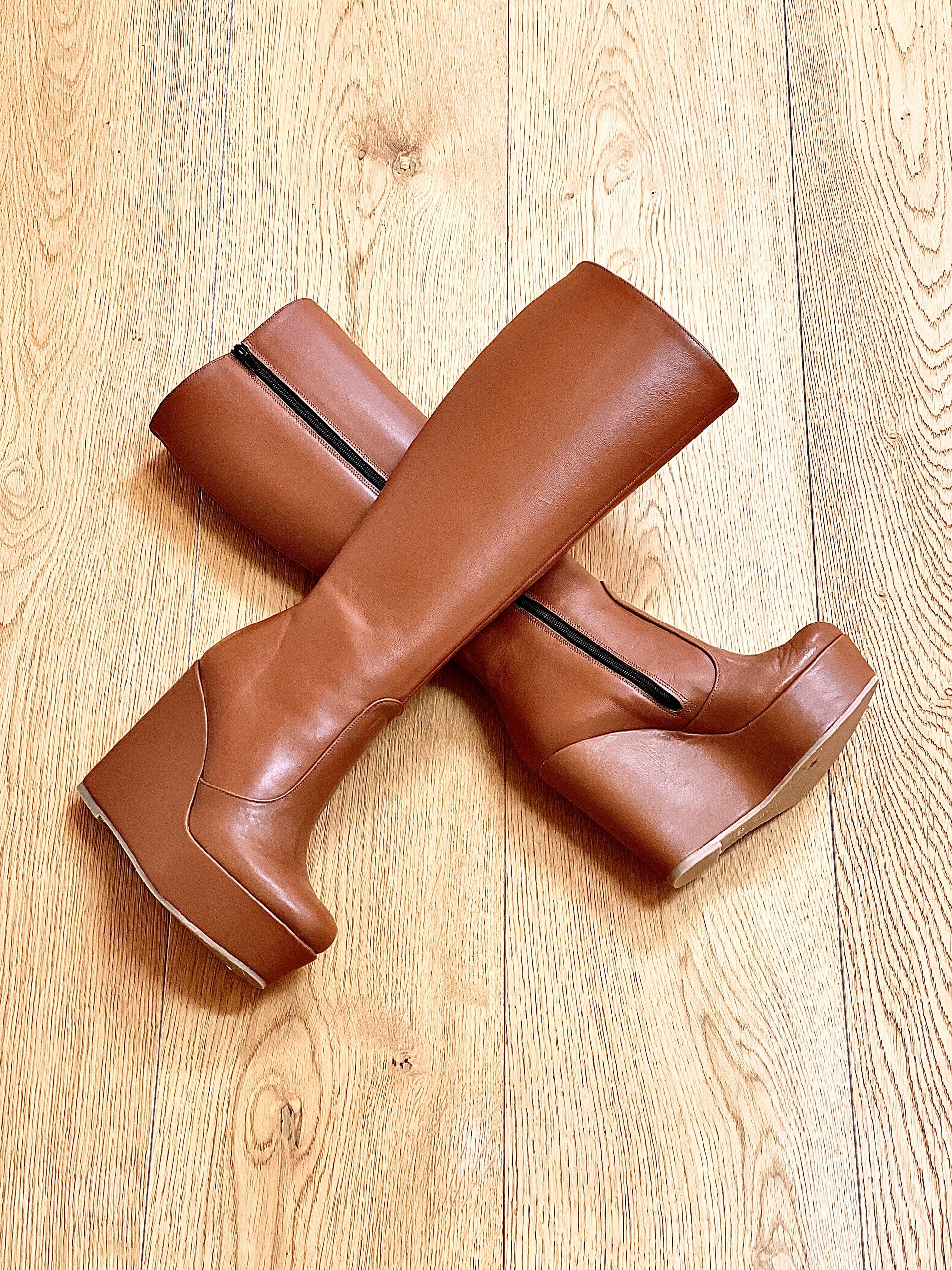 Ψηλά δερμάτινα μποτάκια με πλατφόρμα.