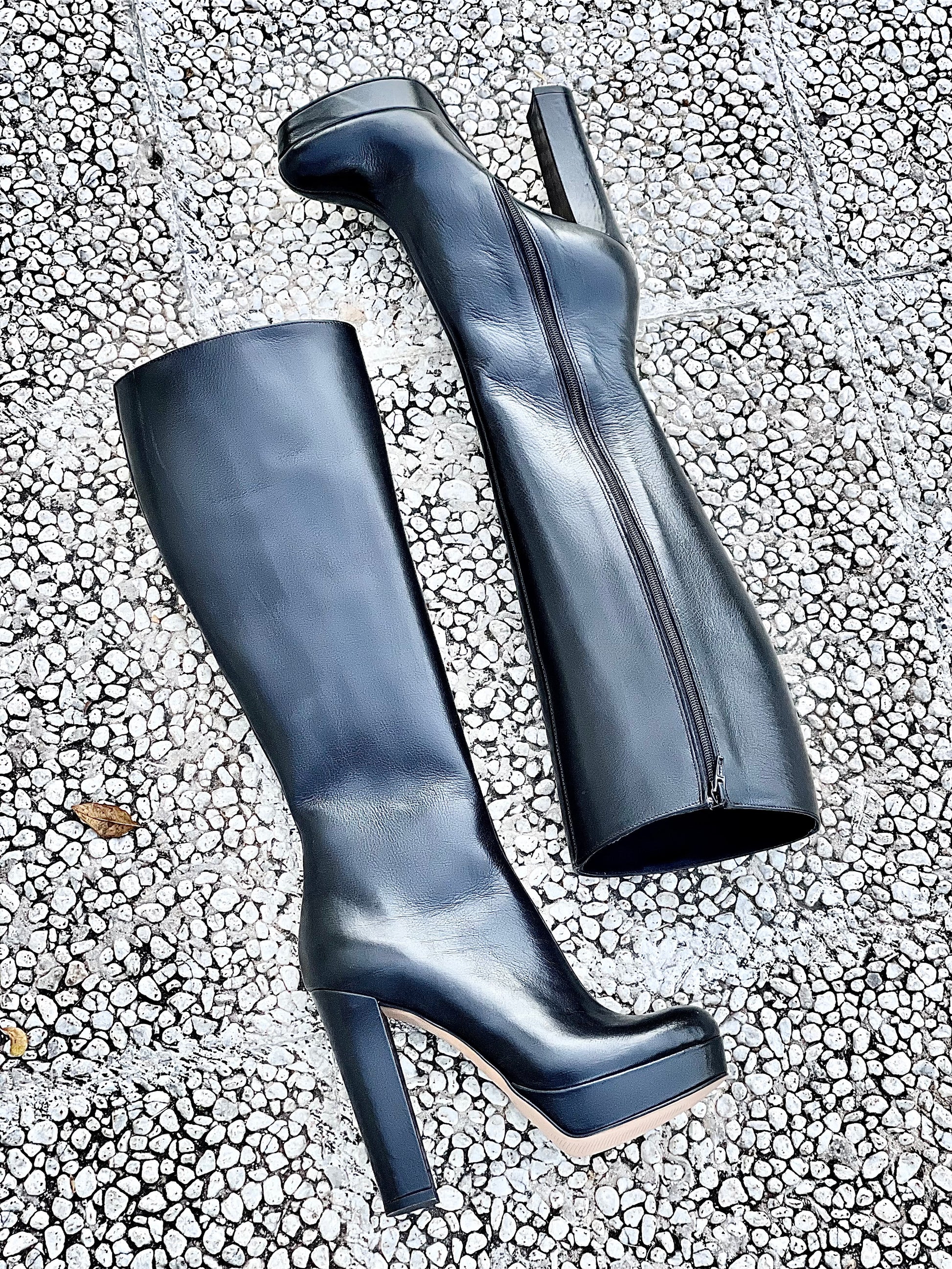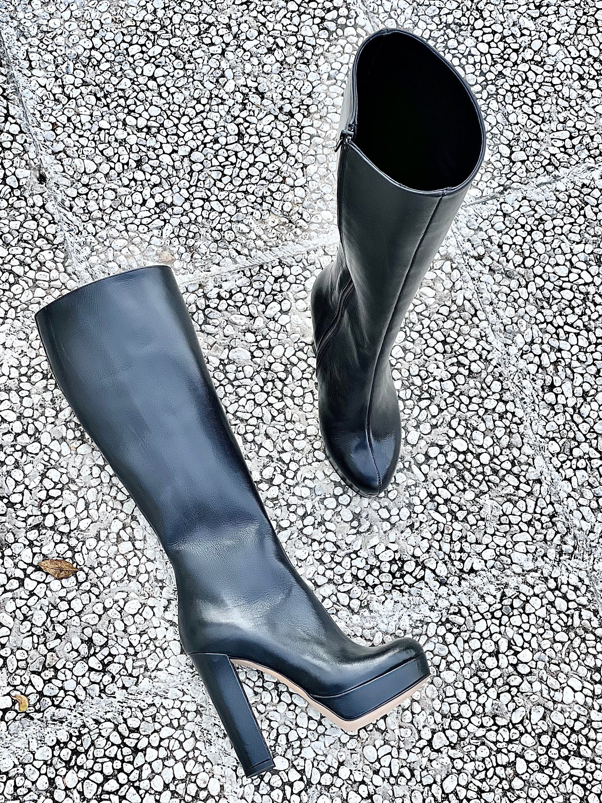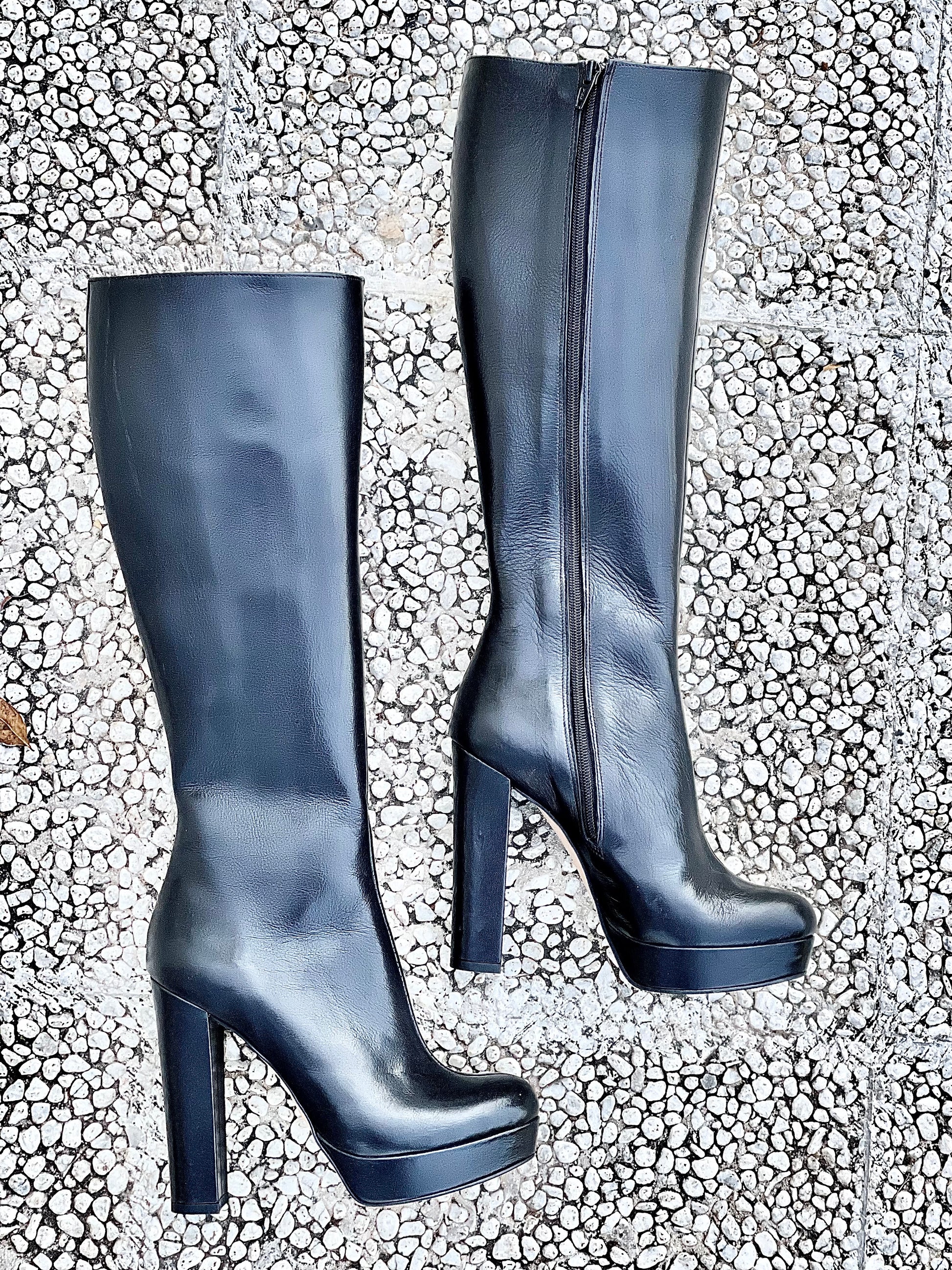 Δερμάτινα μποτάκια με τακούνι 12 εκ. και πλατφόρμα 2 εκ. με εσωτερικό φερμουάρ.