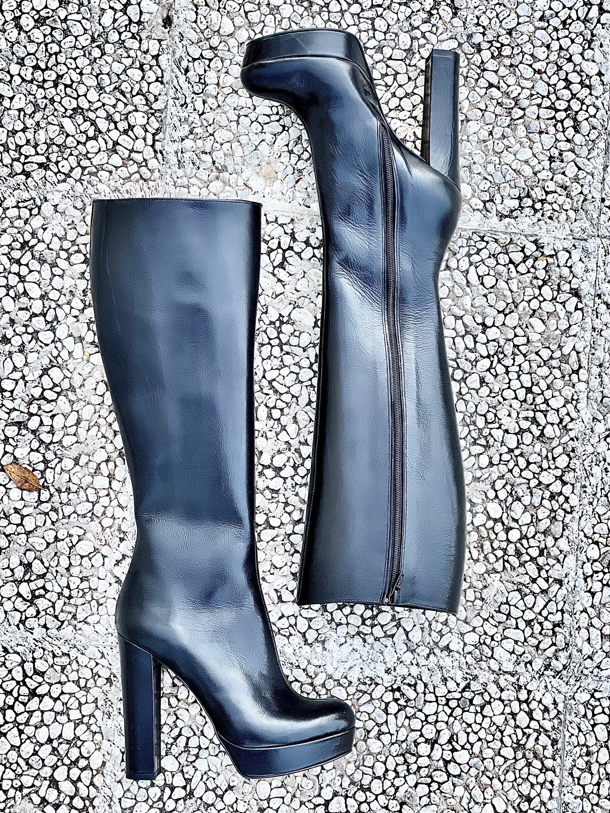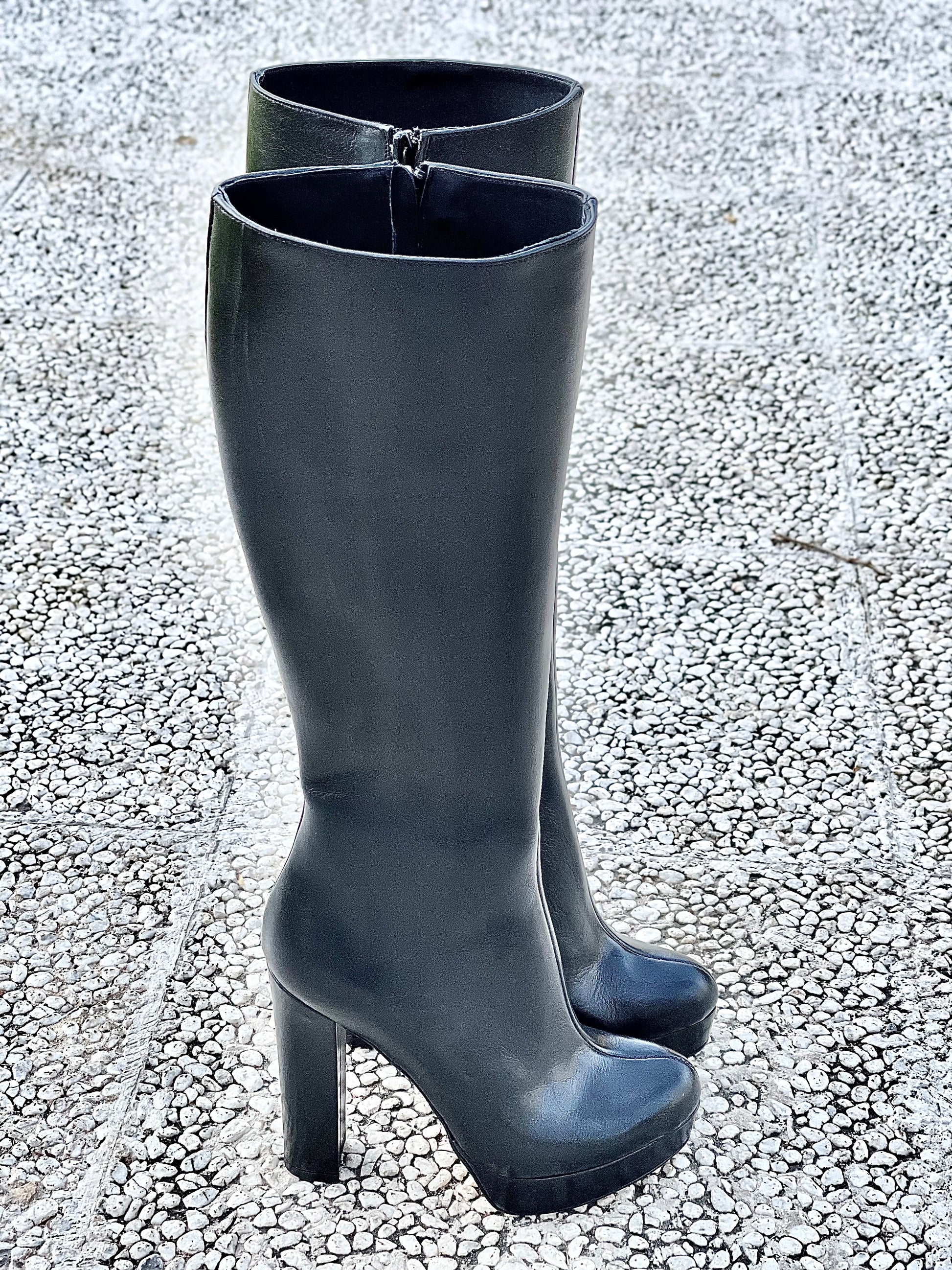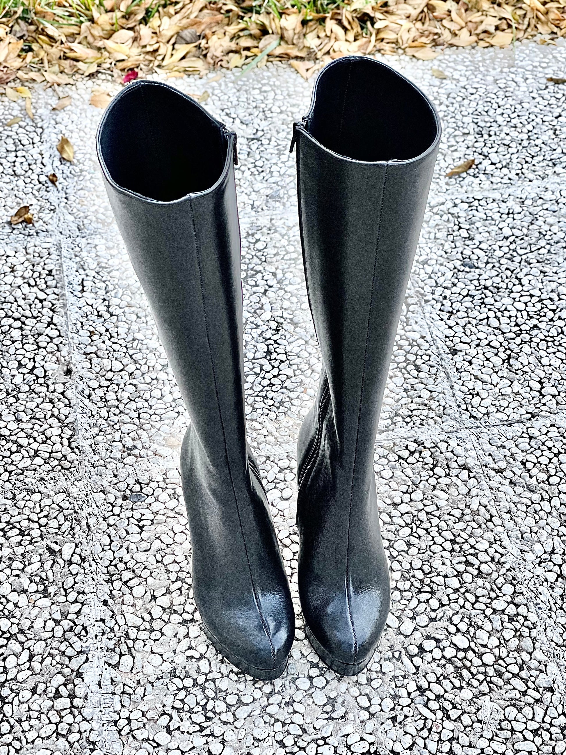 Δερμάτινα μποτάκια με τακούνι 12 εκ. και πλατφόρμα 2 εκ. με εσωτερικό φερμουάρ.