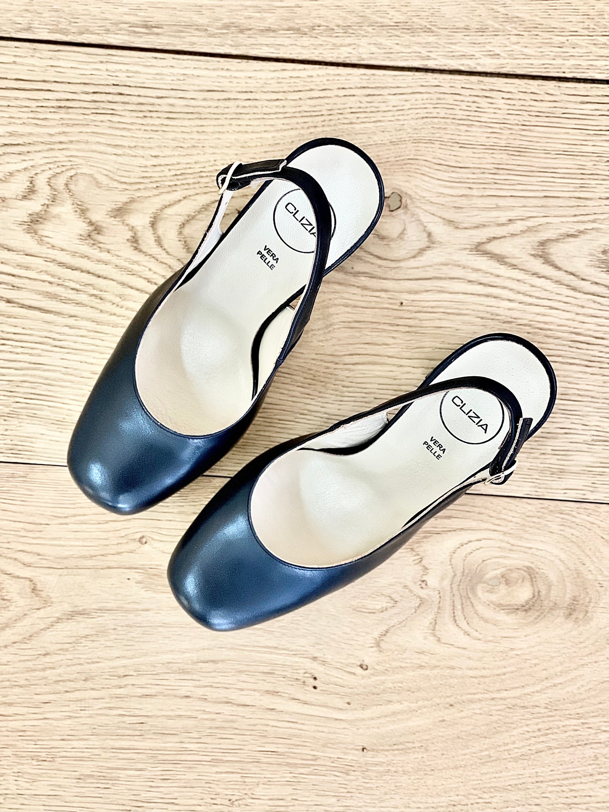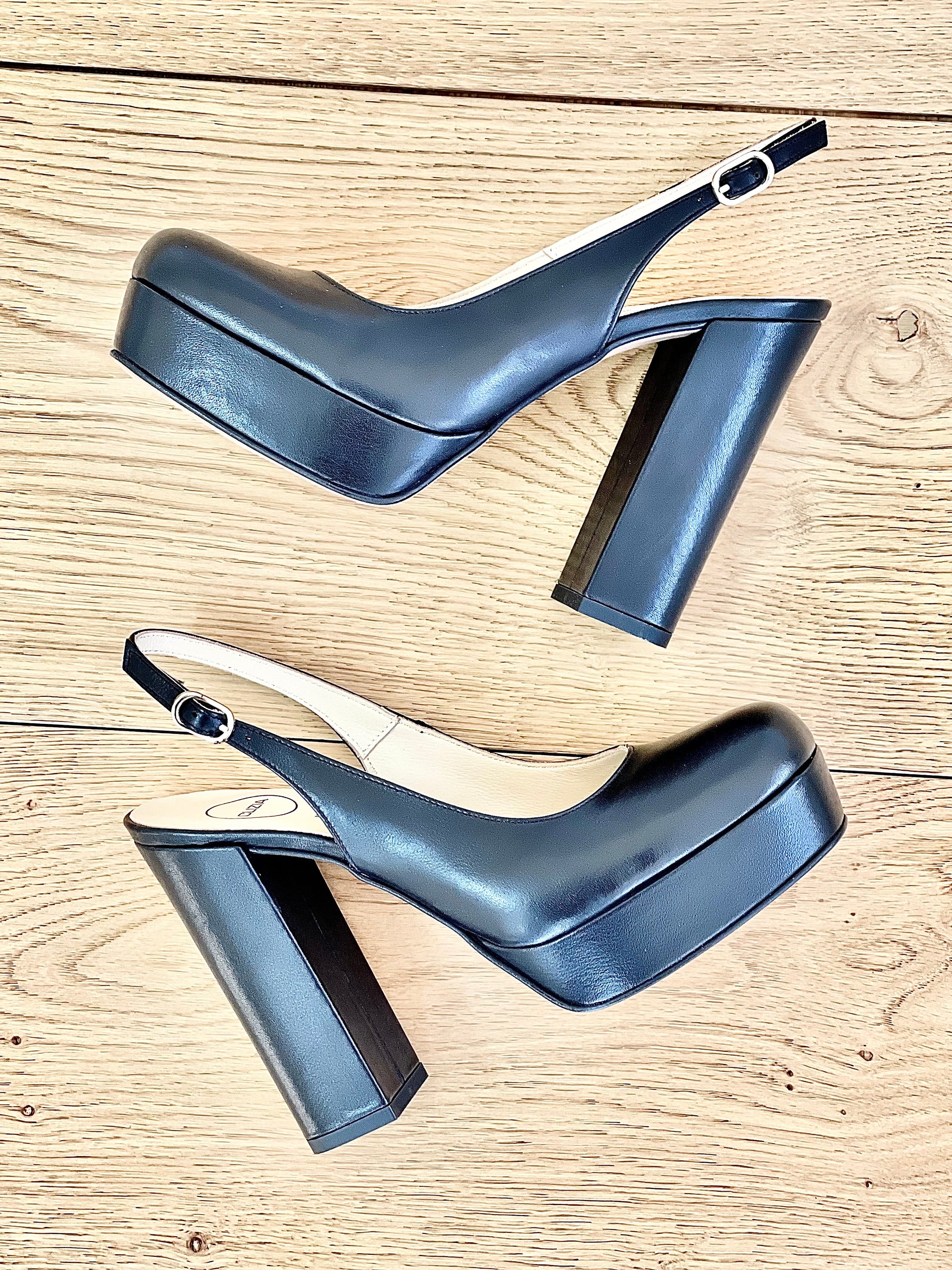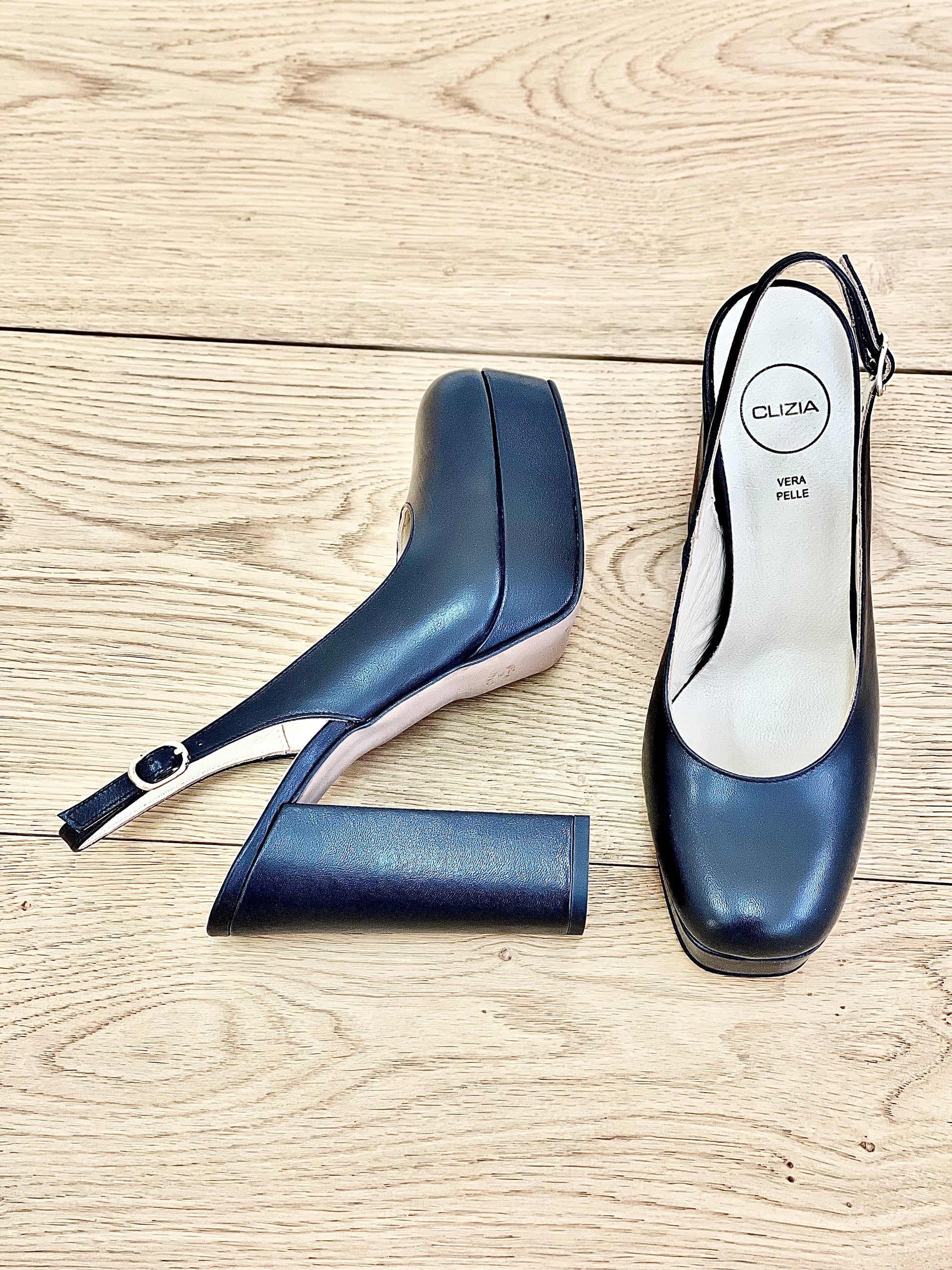 Σανδάλια με λουράκι στο πίσω μέρος, μύτη ημικυκλική, από δέρμα, τακούνι 12 εκ. και πλατφόρμα 3 εκ.