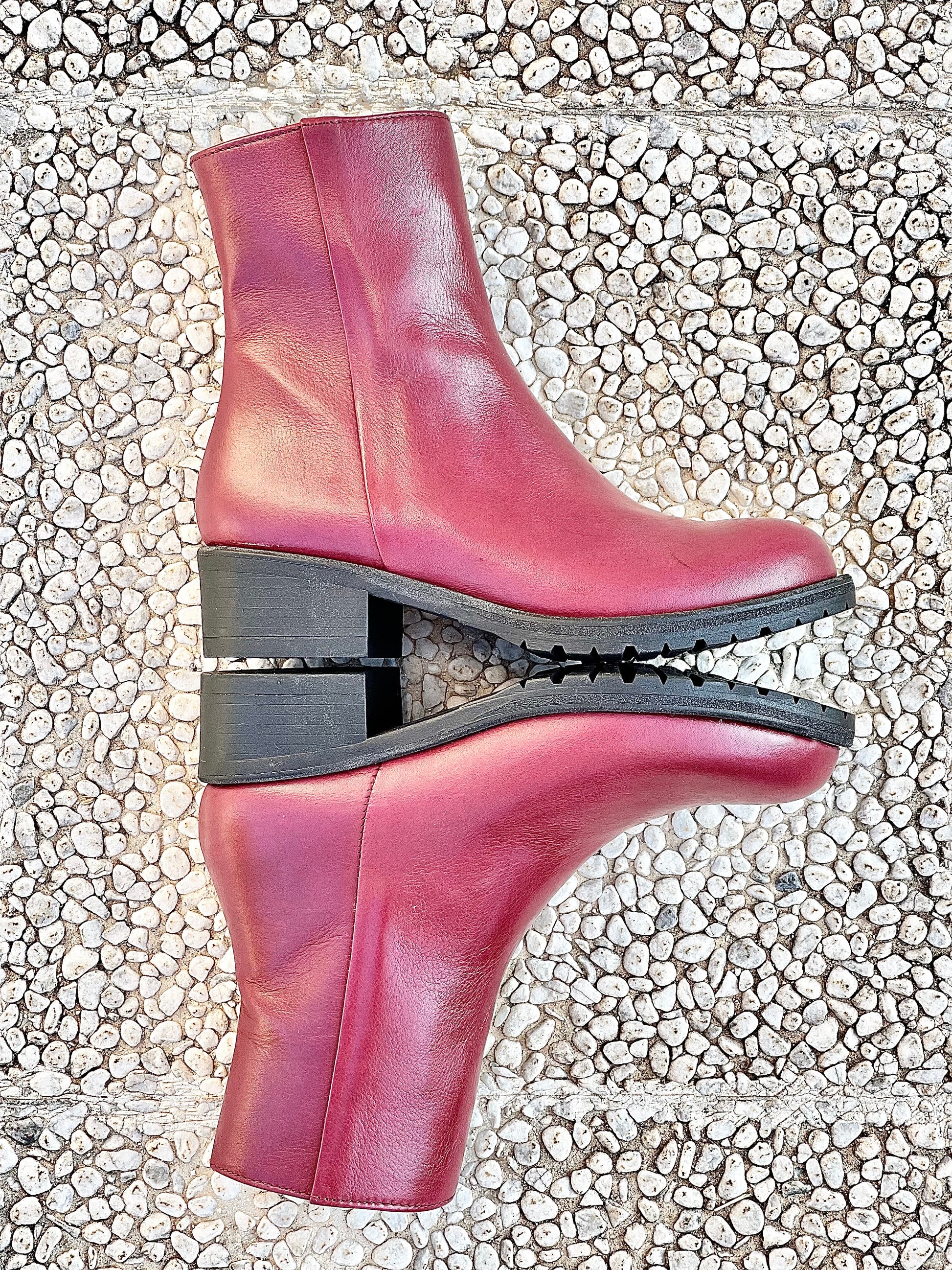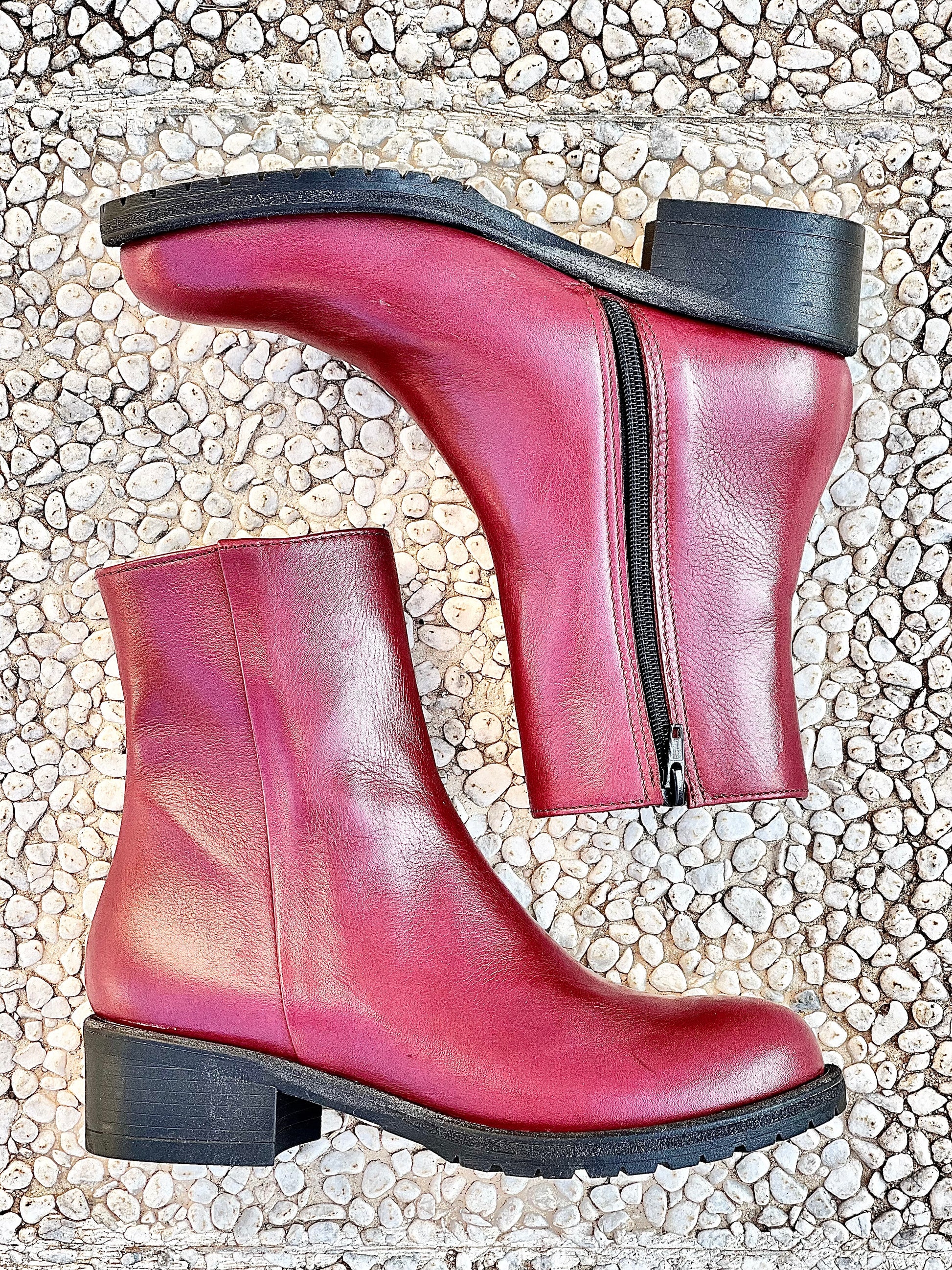 Μποτάκια από δέρμα με καουτσούκ σόλα, τακούνι 3 εκ. και εσωτερικό φερμουάρ.