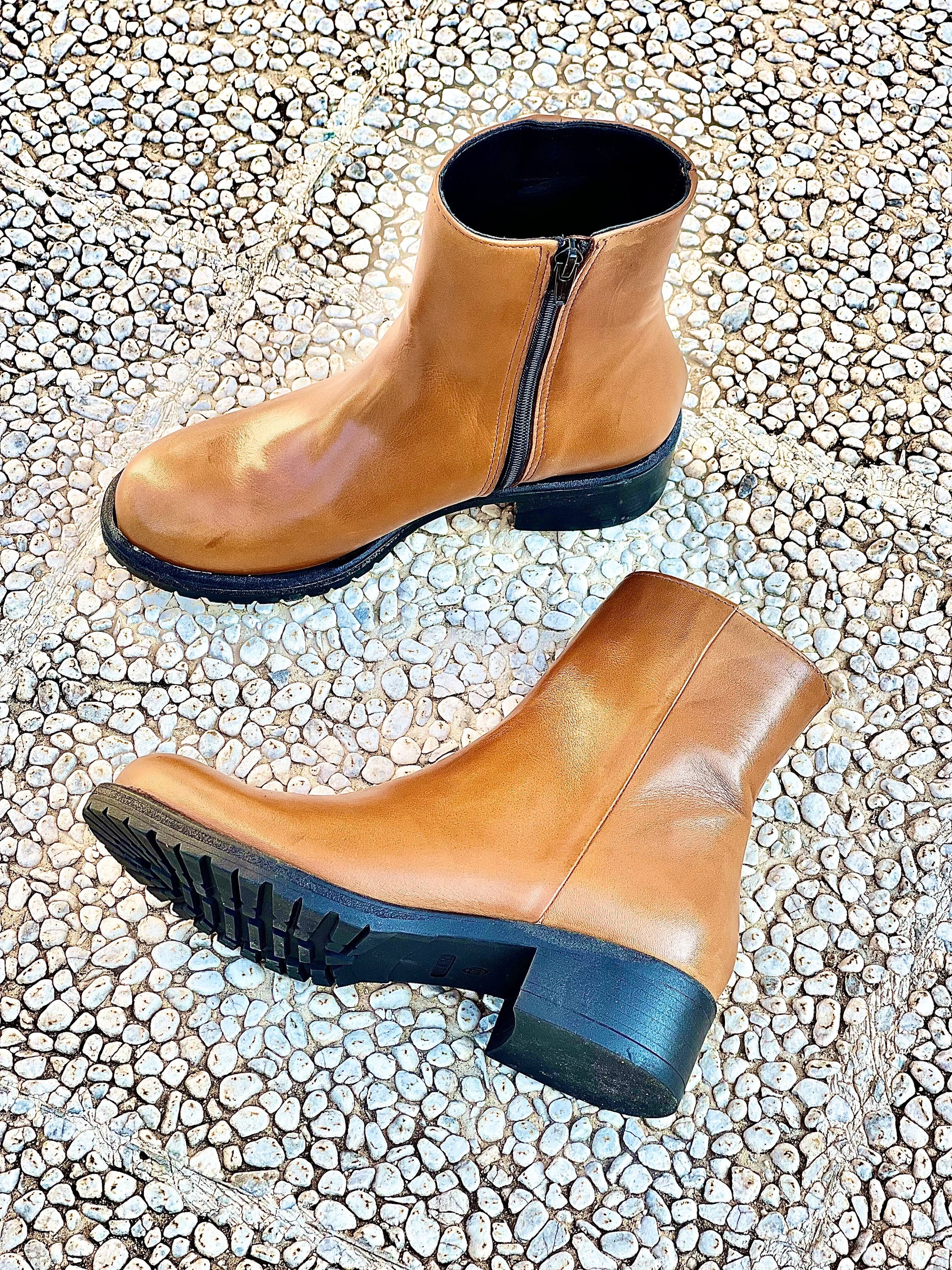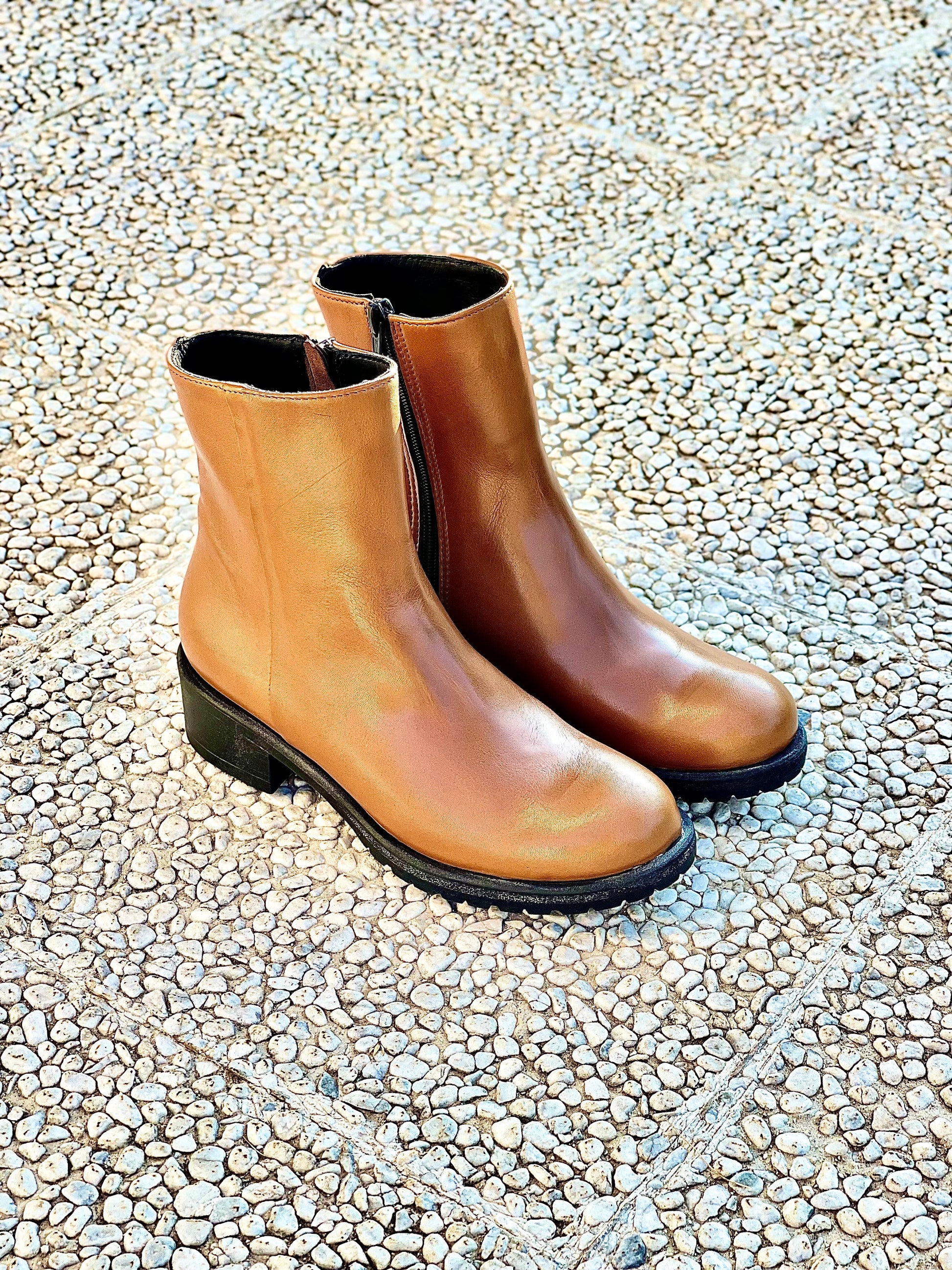 Μποτάκια από δέρμα με καουτσούκ σόλα, τακούνι 3 εκ. και εσωτερικό φερμουάρ.