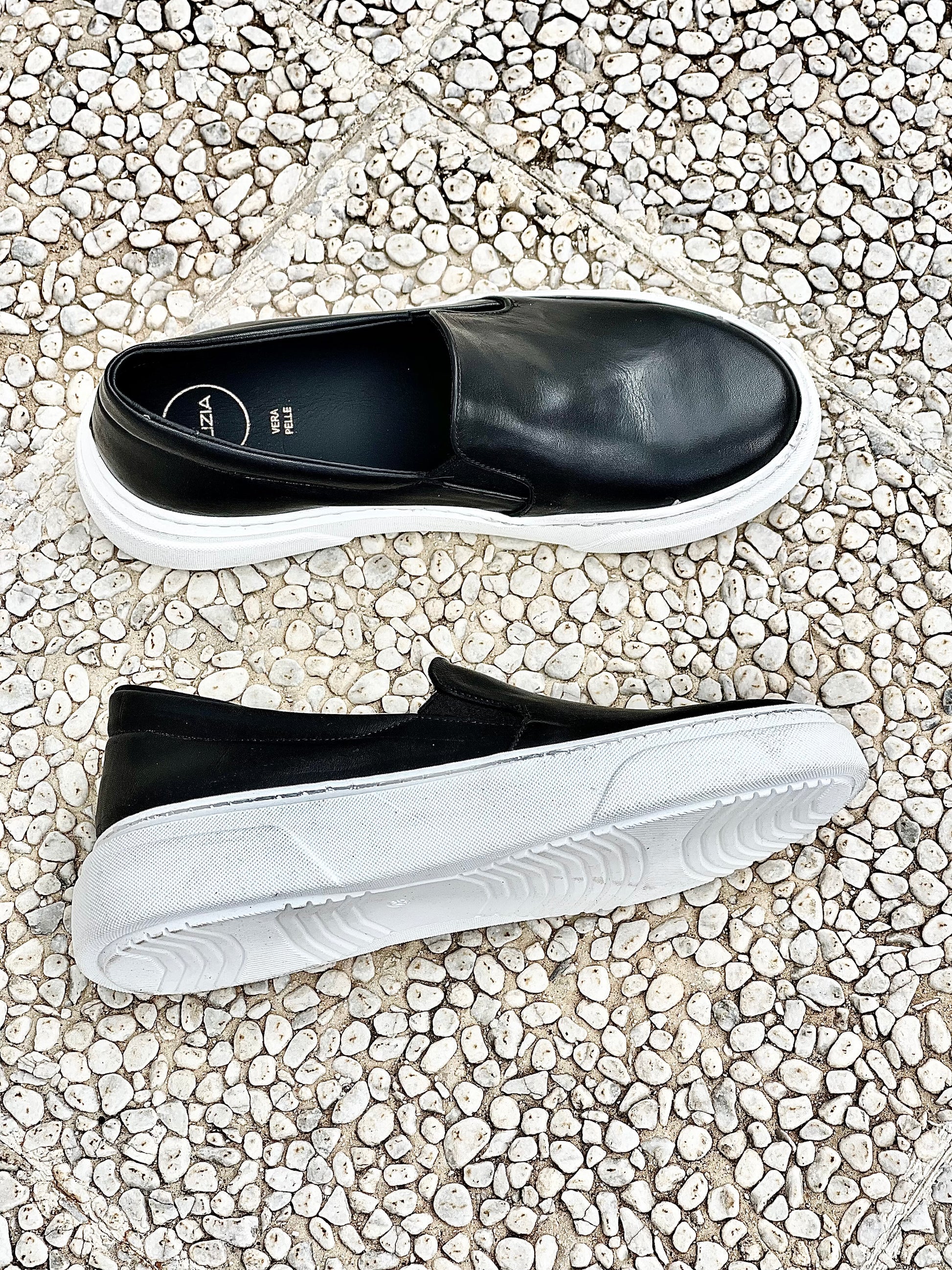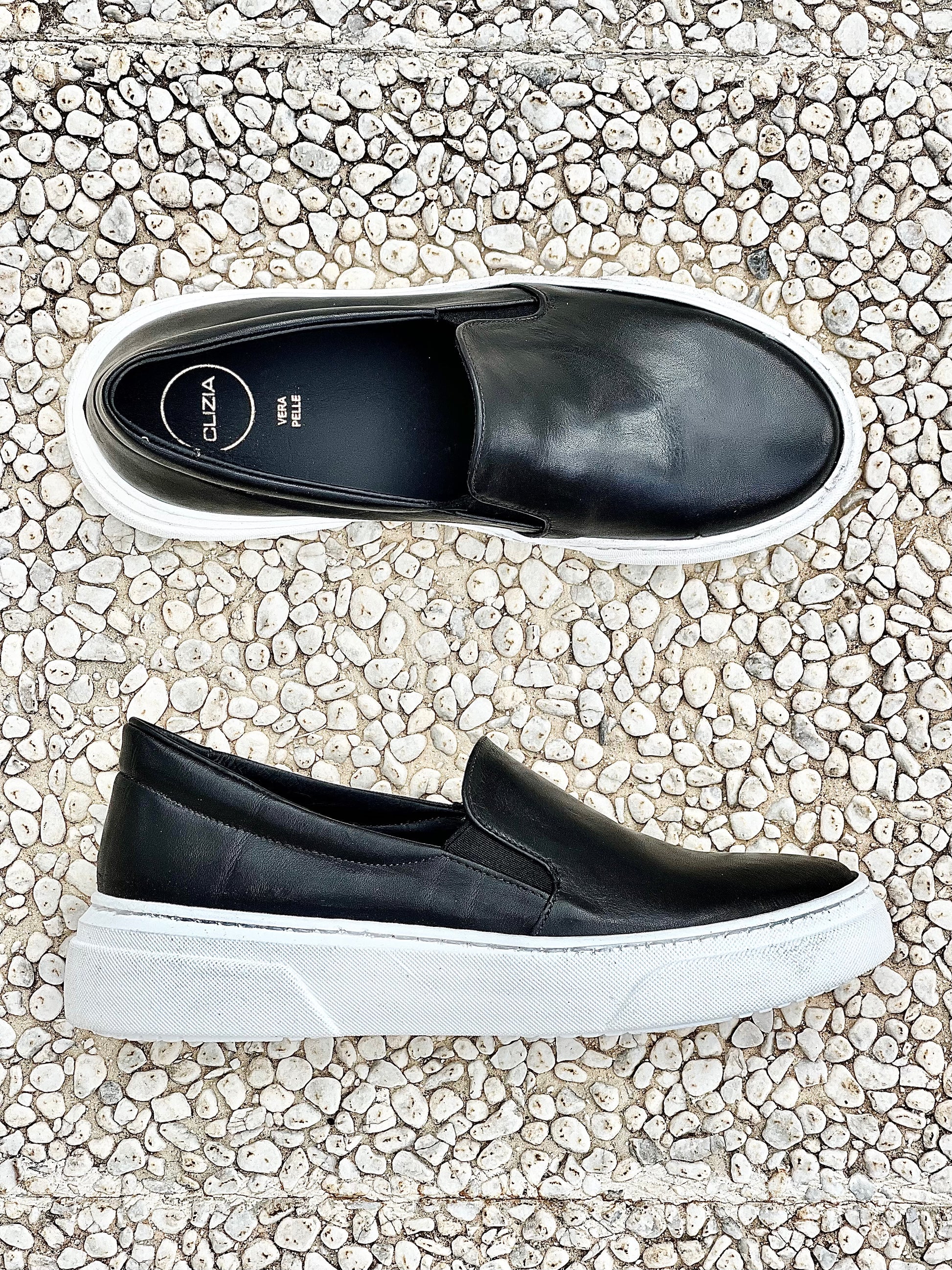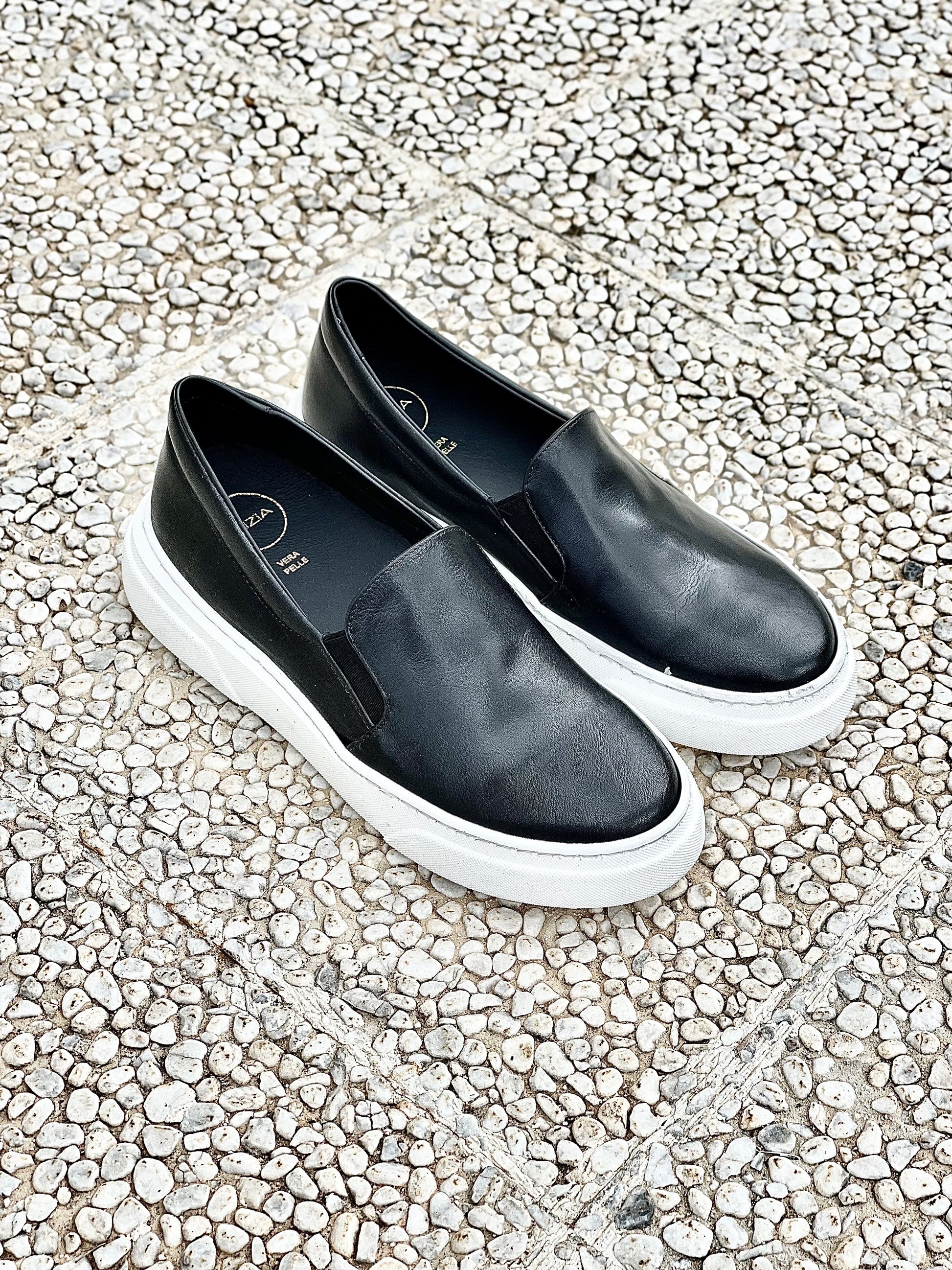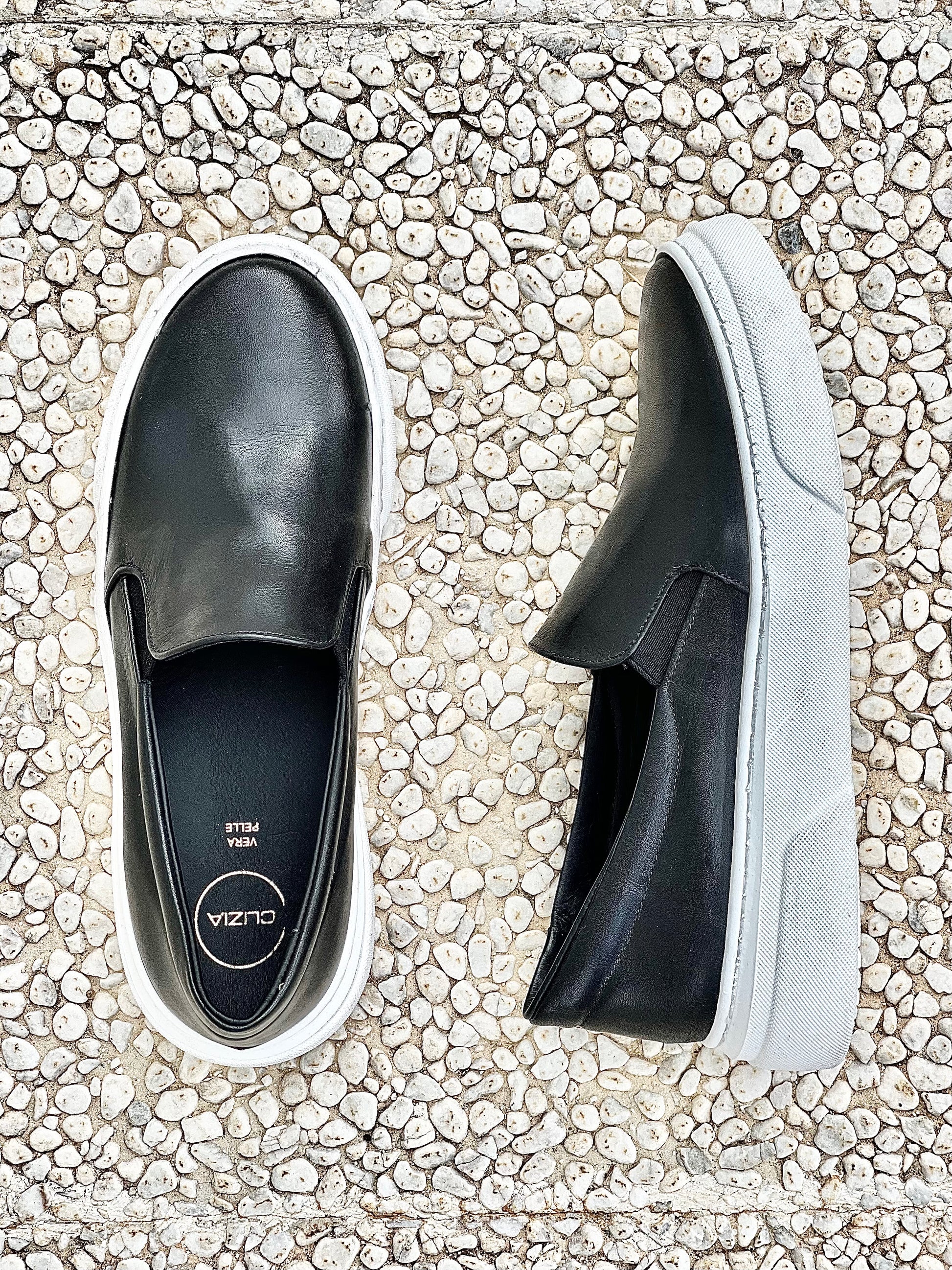 Γυναικεία slip-on sneakers από μαύρο δέρμα.