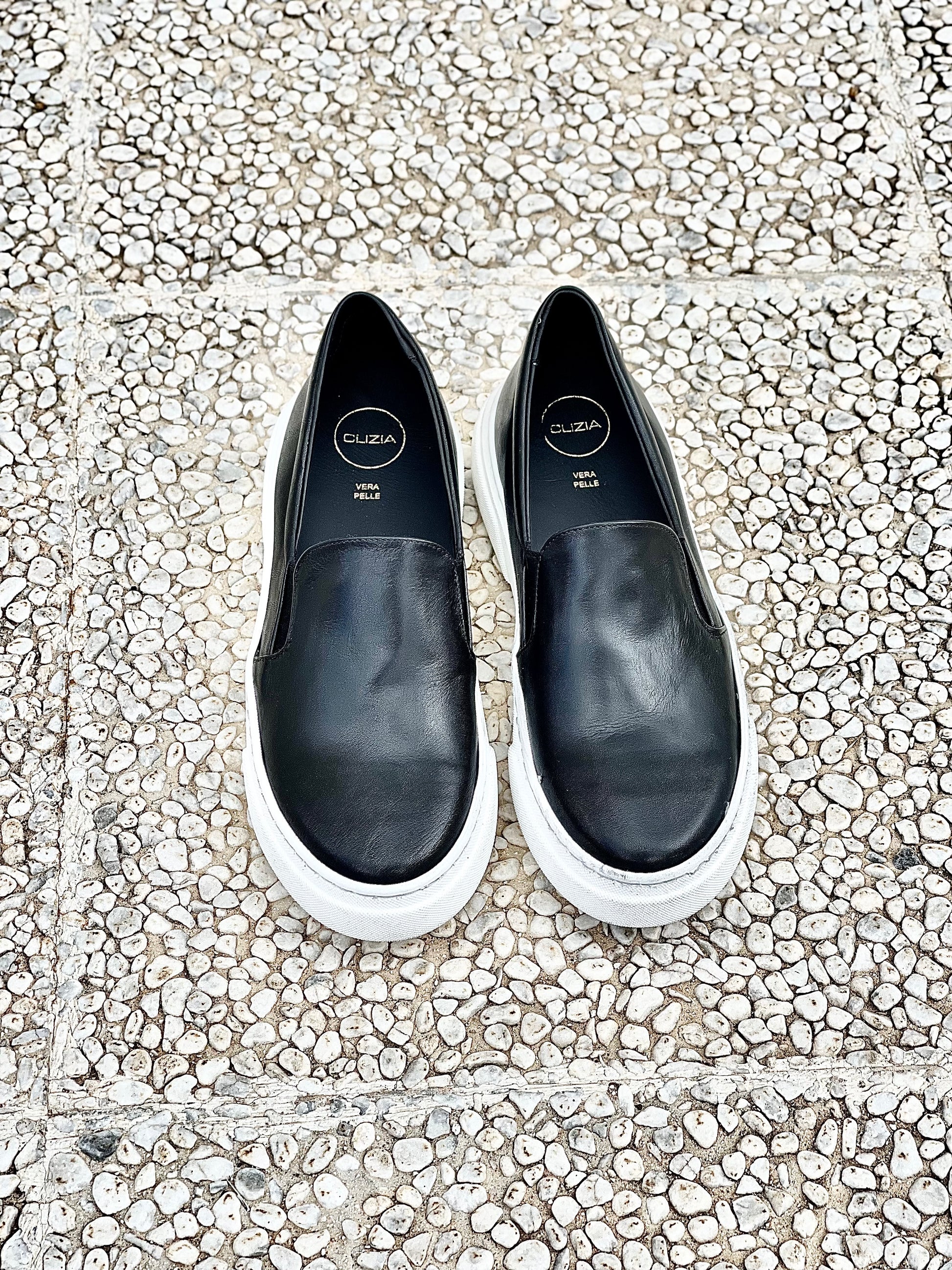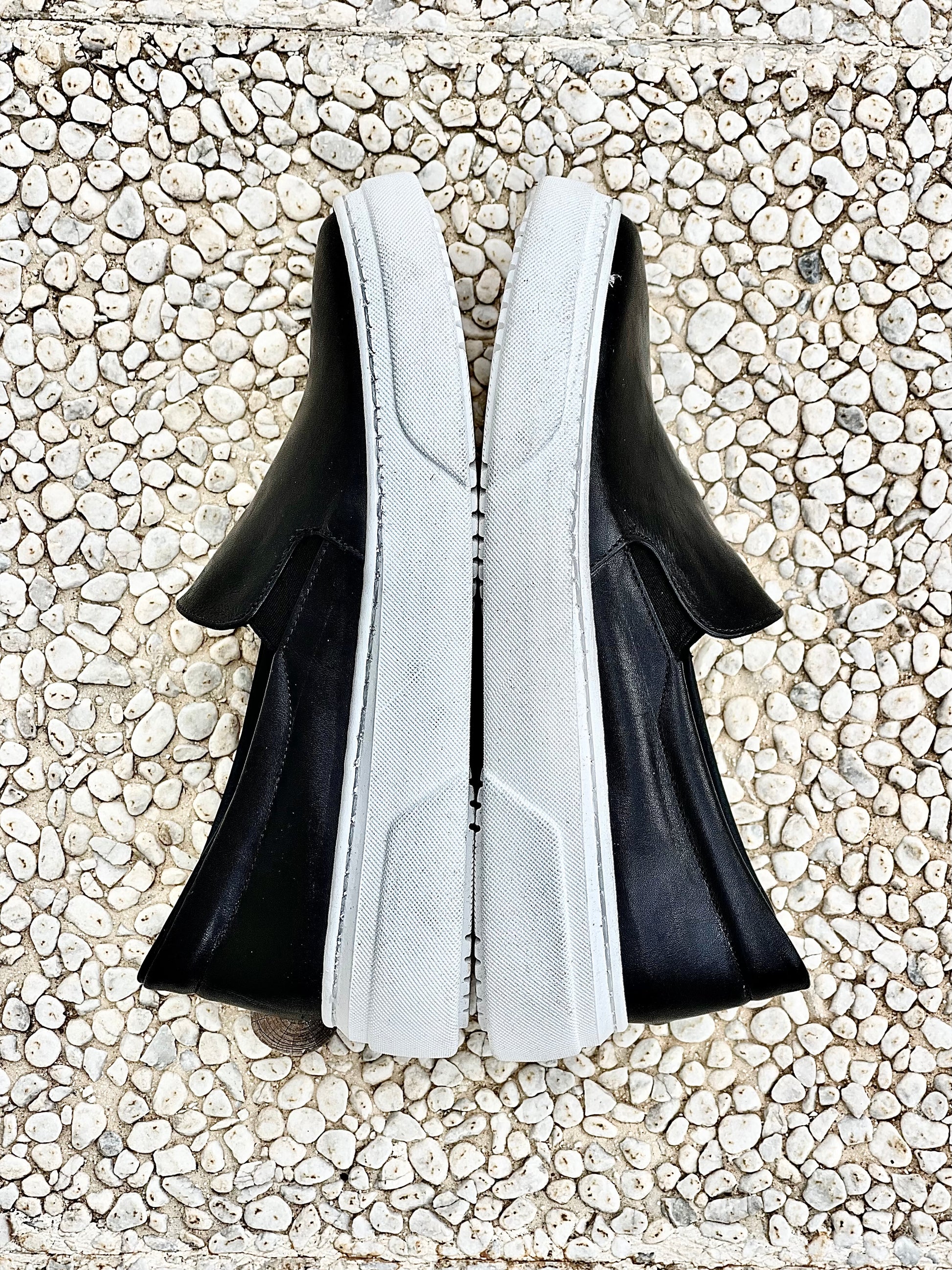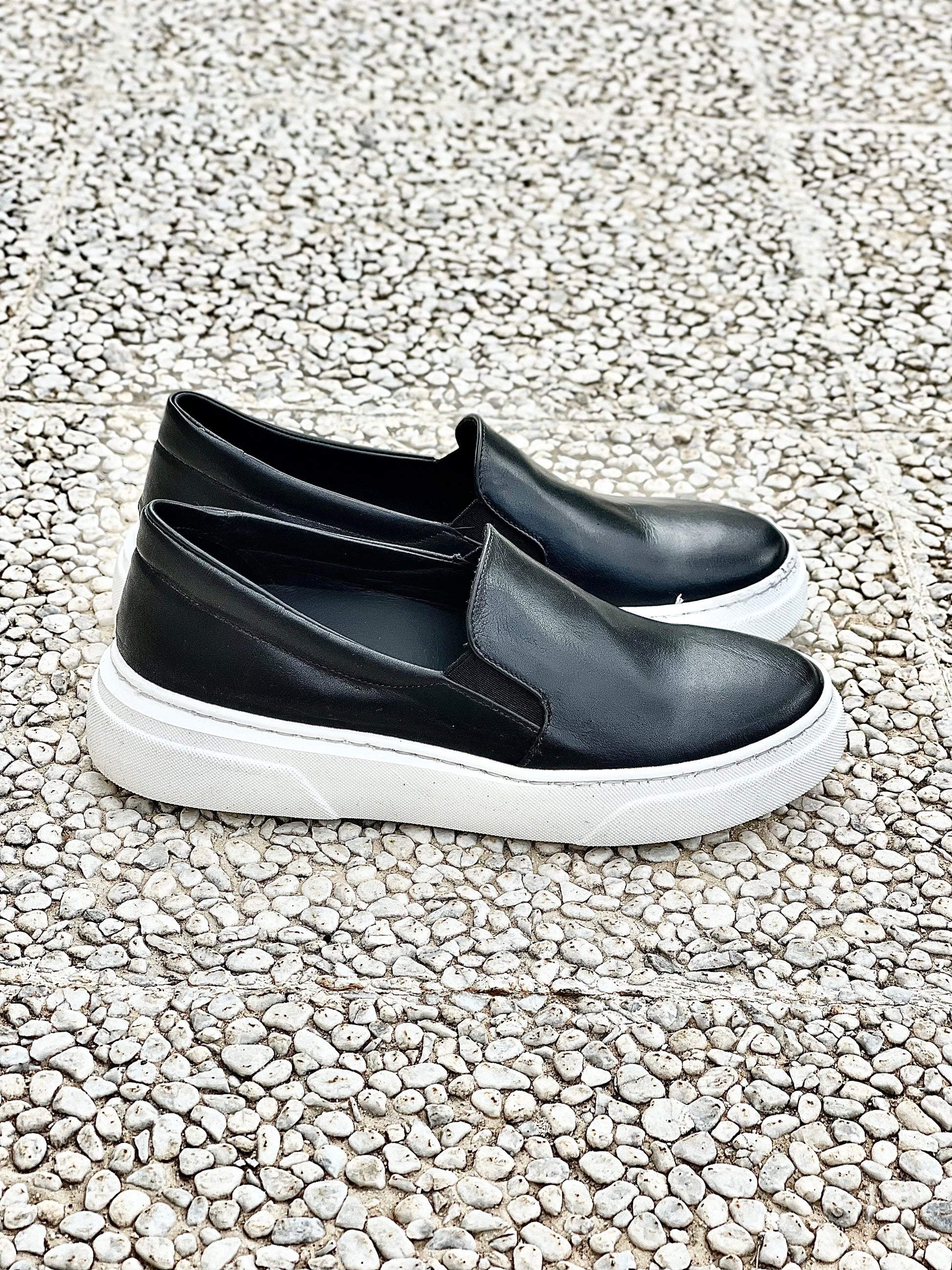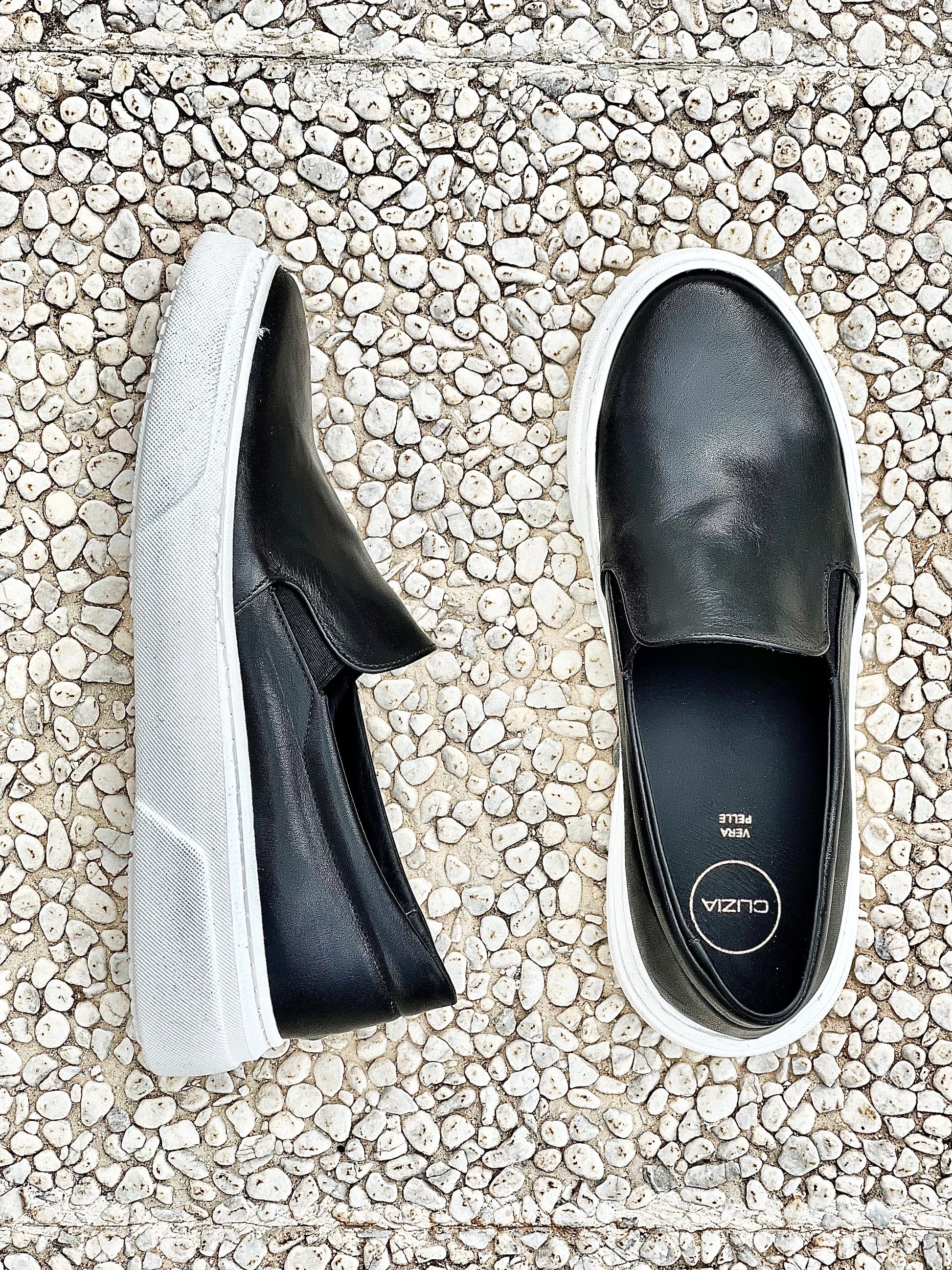 Γυναικεία slip-on sneakers από μαύρο δέρμα.