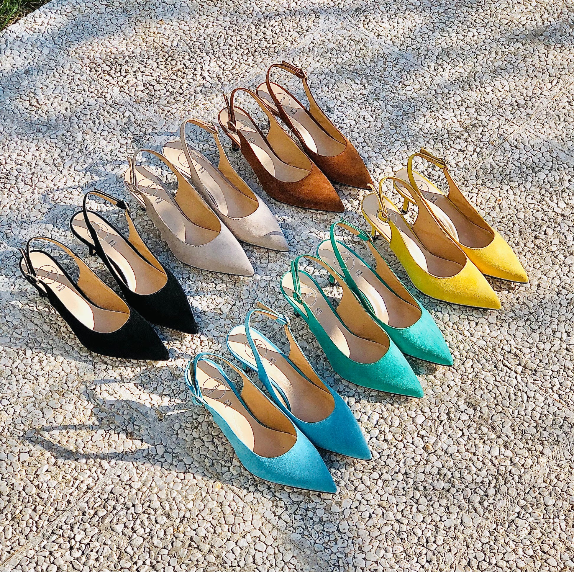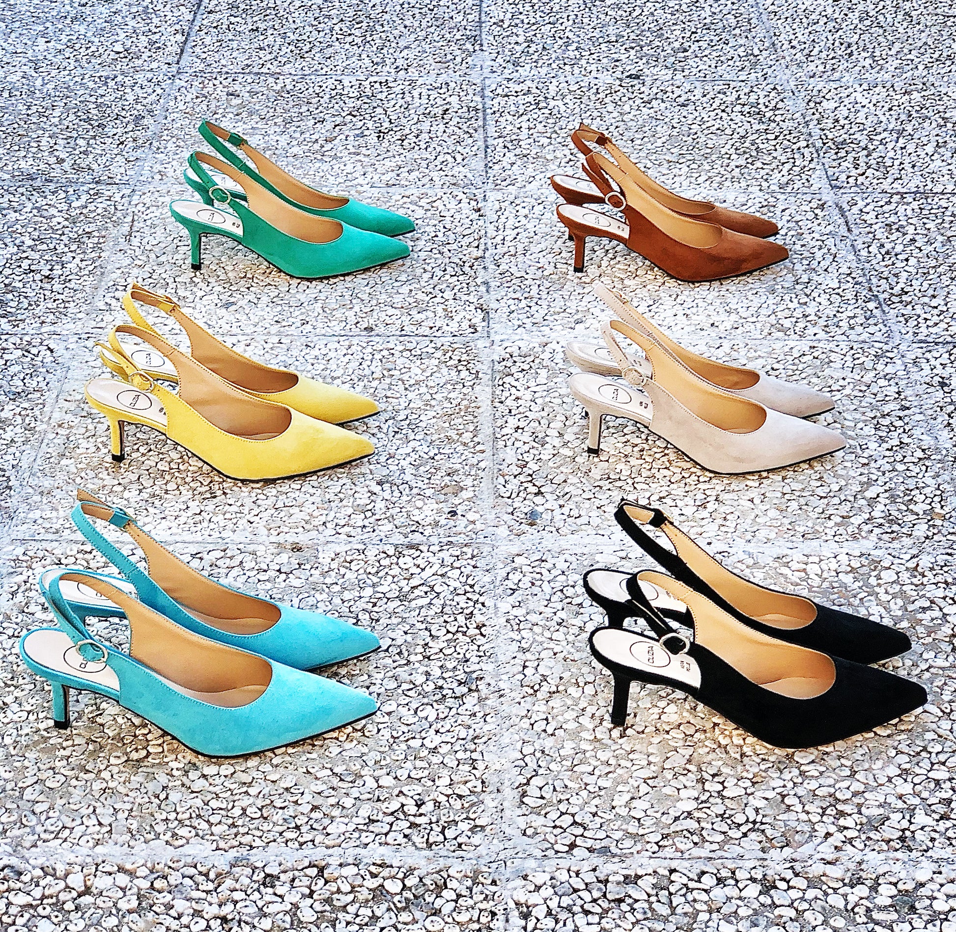 Σλιπμπακ με στρογγυλή μύτη από σουέτ, τακούνι 6 εκ.