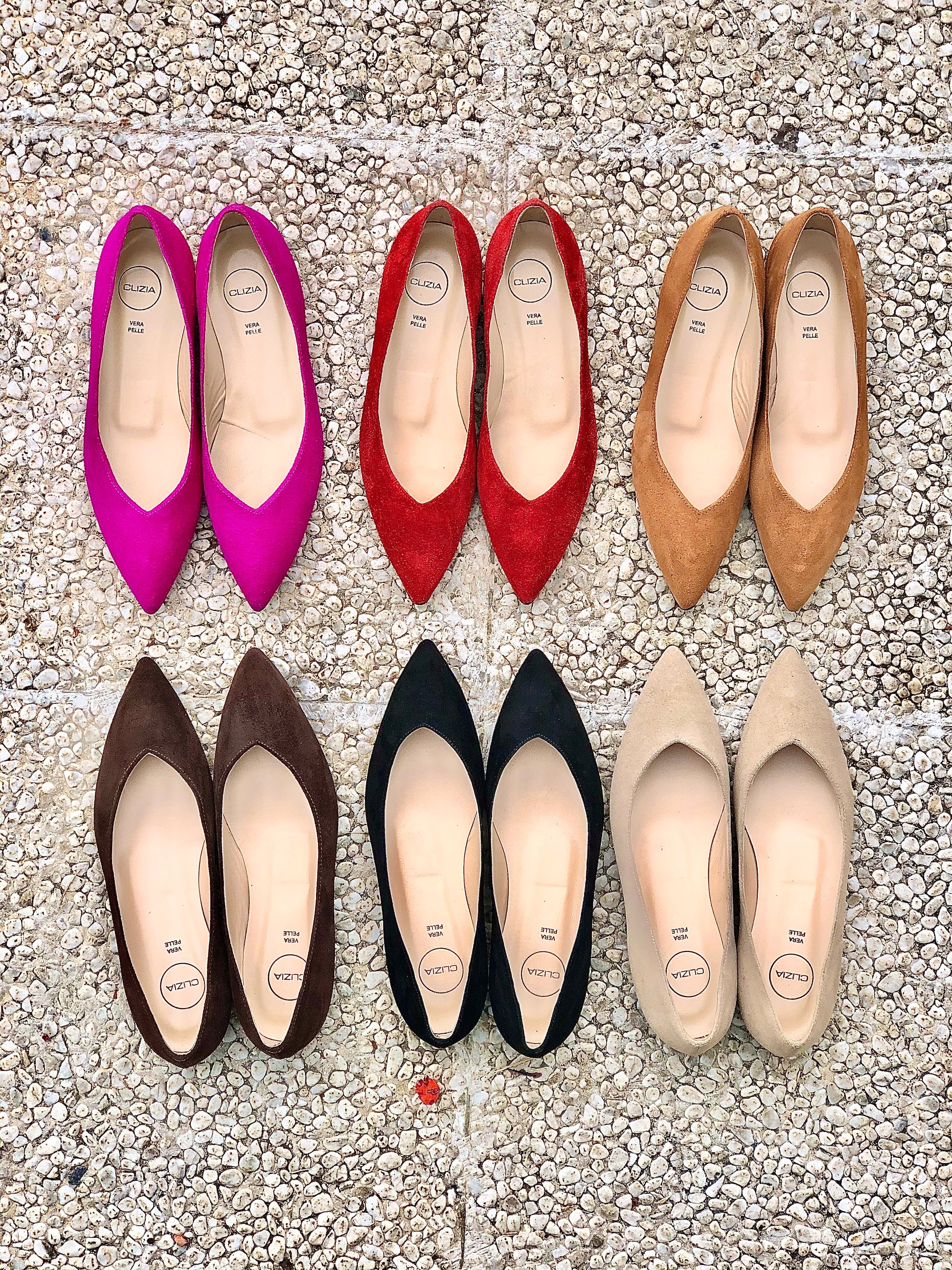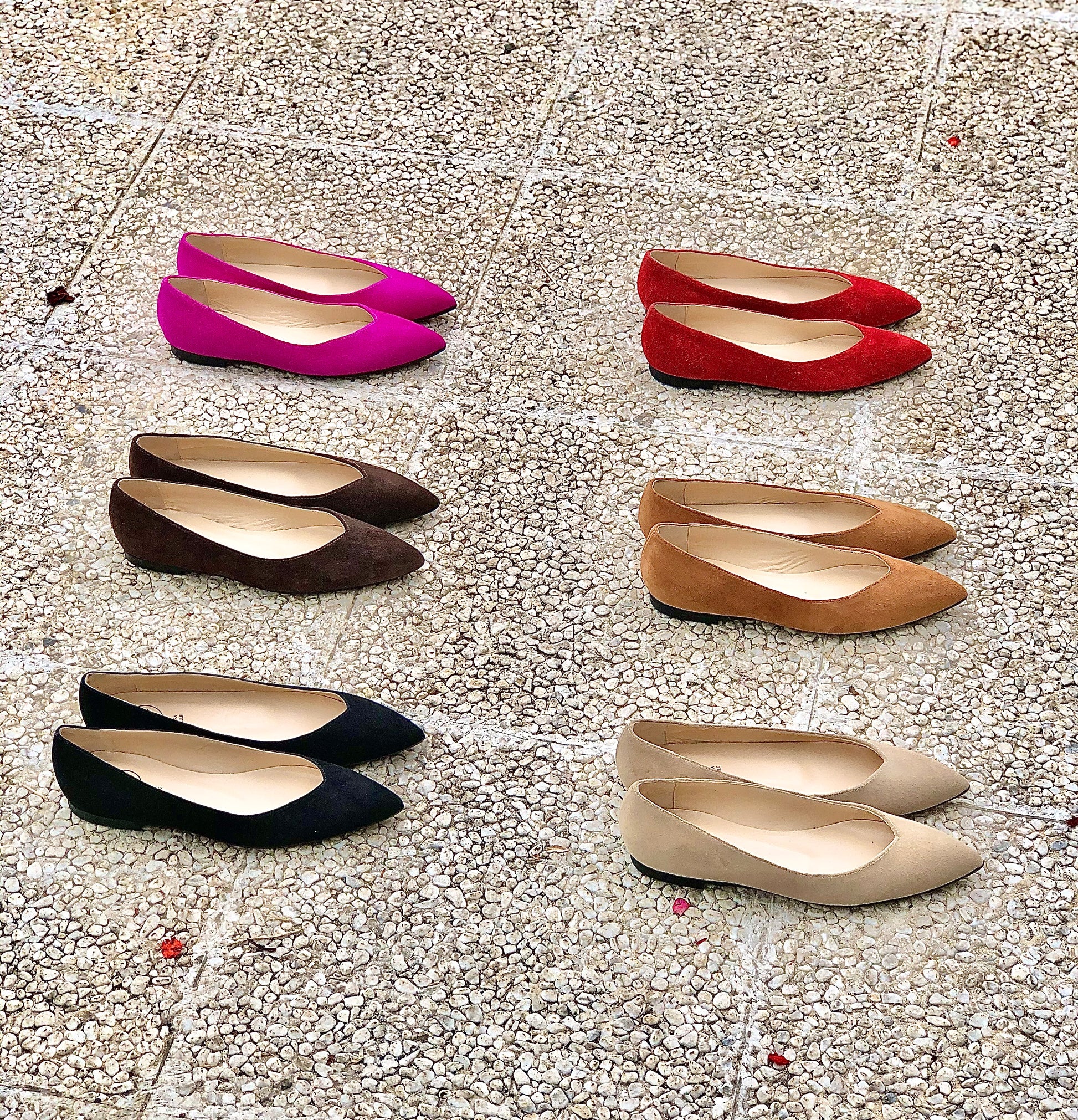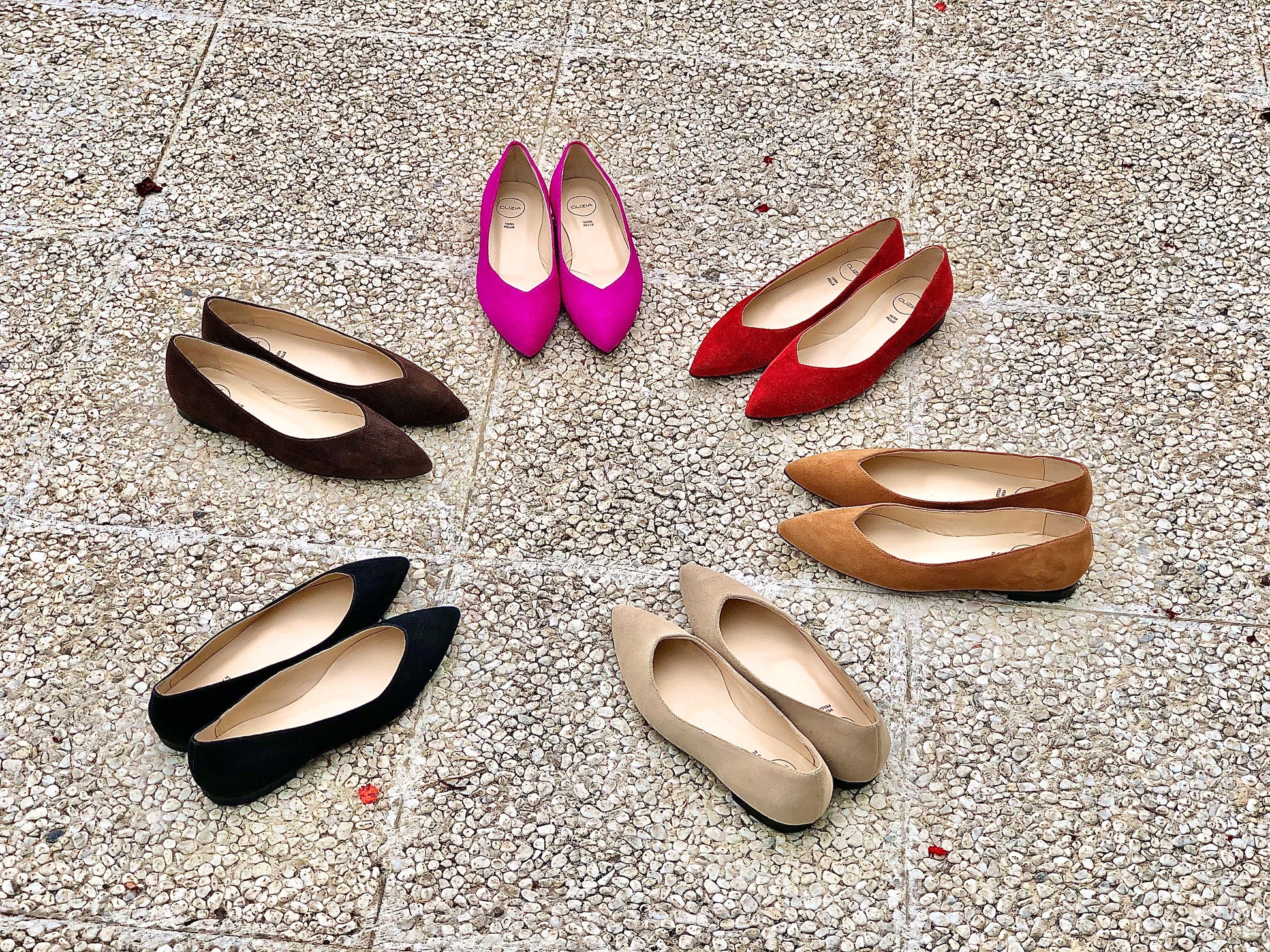 Μπαλαρίνες με V λαιμόκοψη από καμηλό δέρμα και τακούνι 1 εκ.
