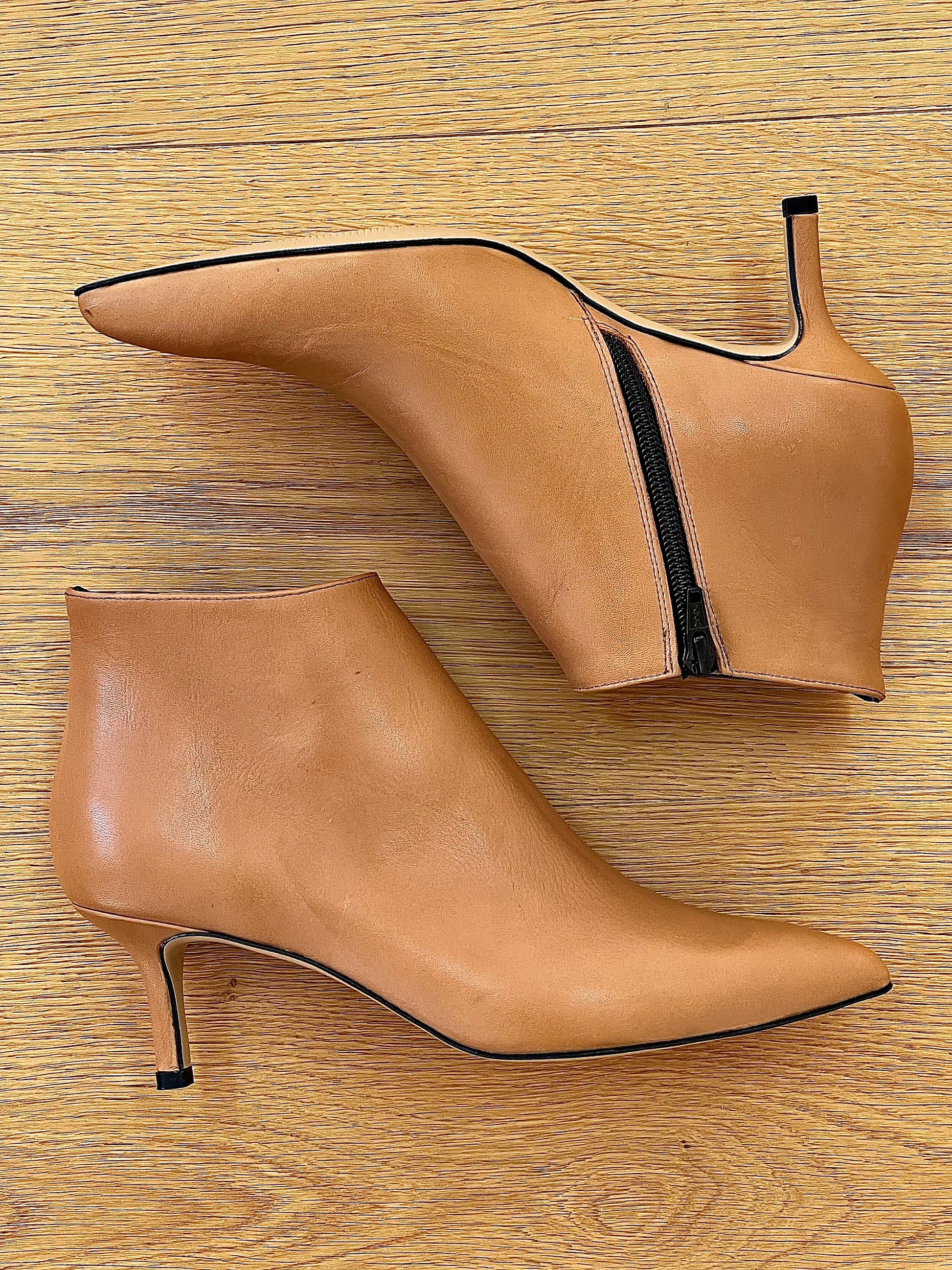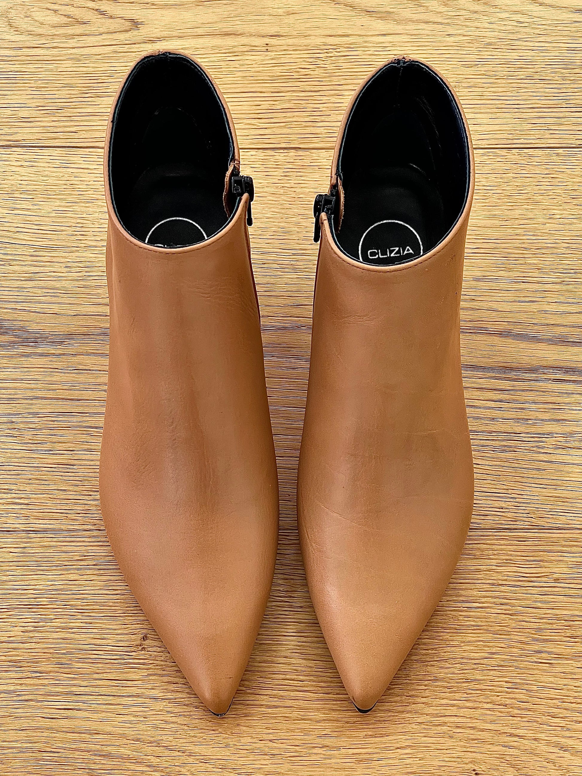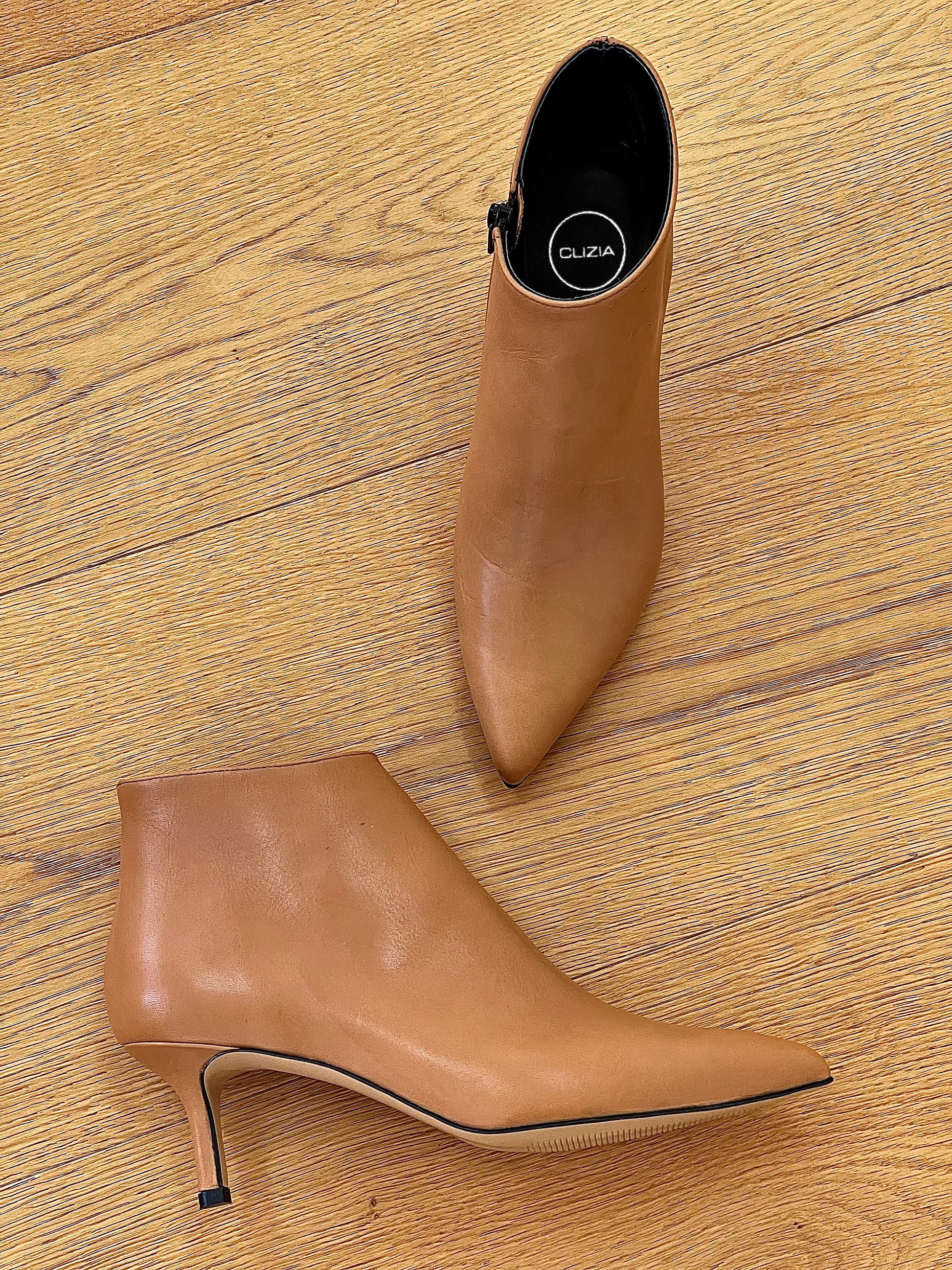 Μποτάκι με μυτερή μύτη από δέρμα, τακούνι 6 εκ.