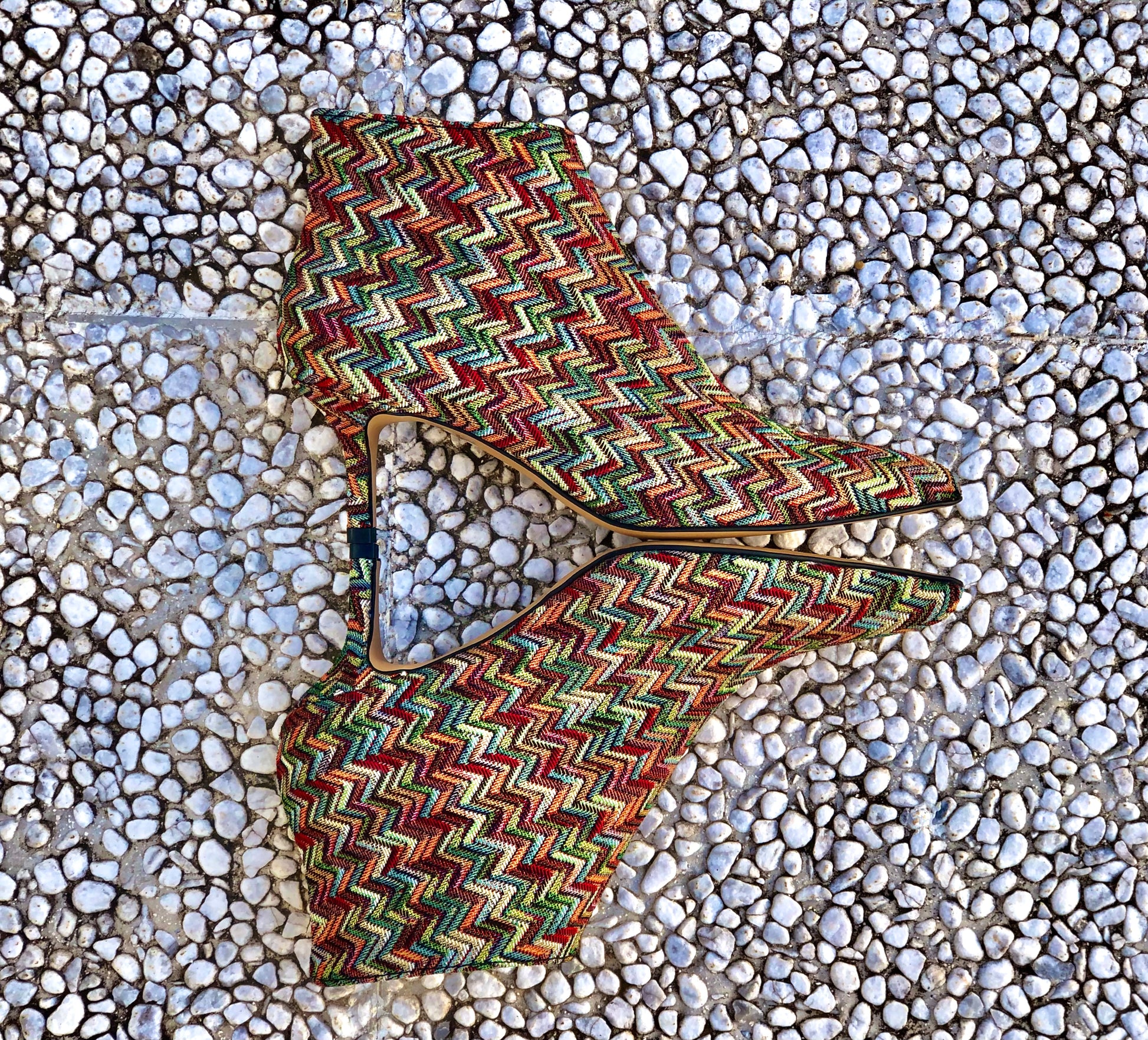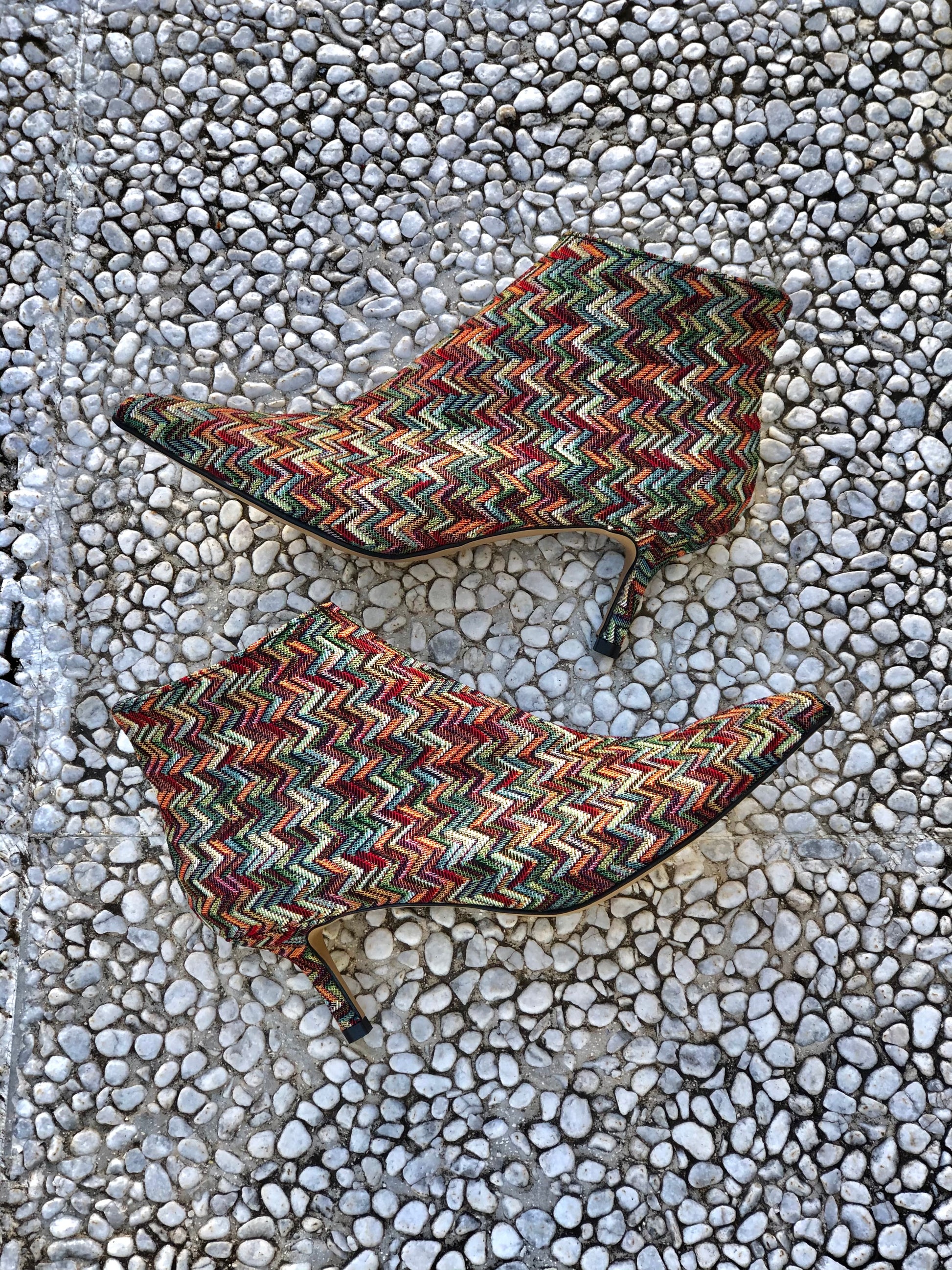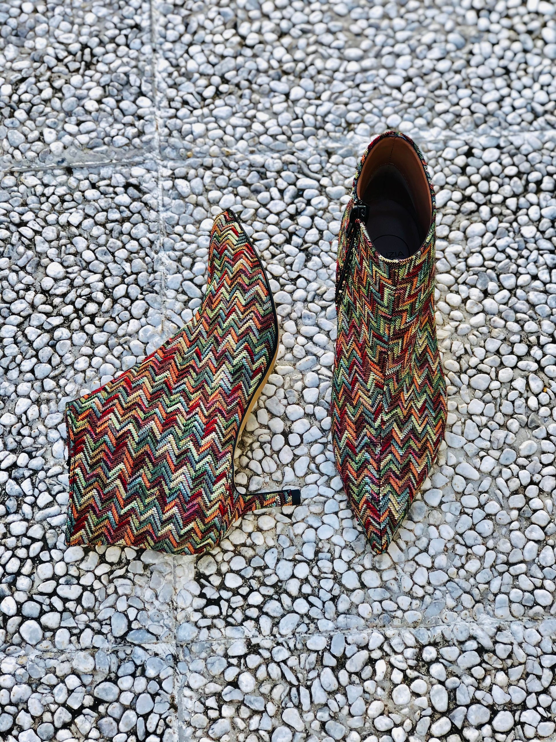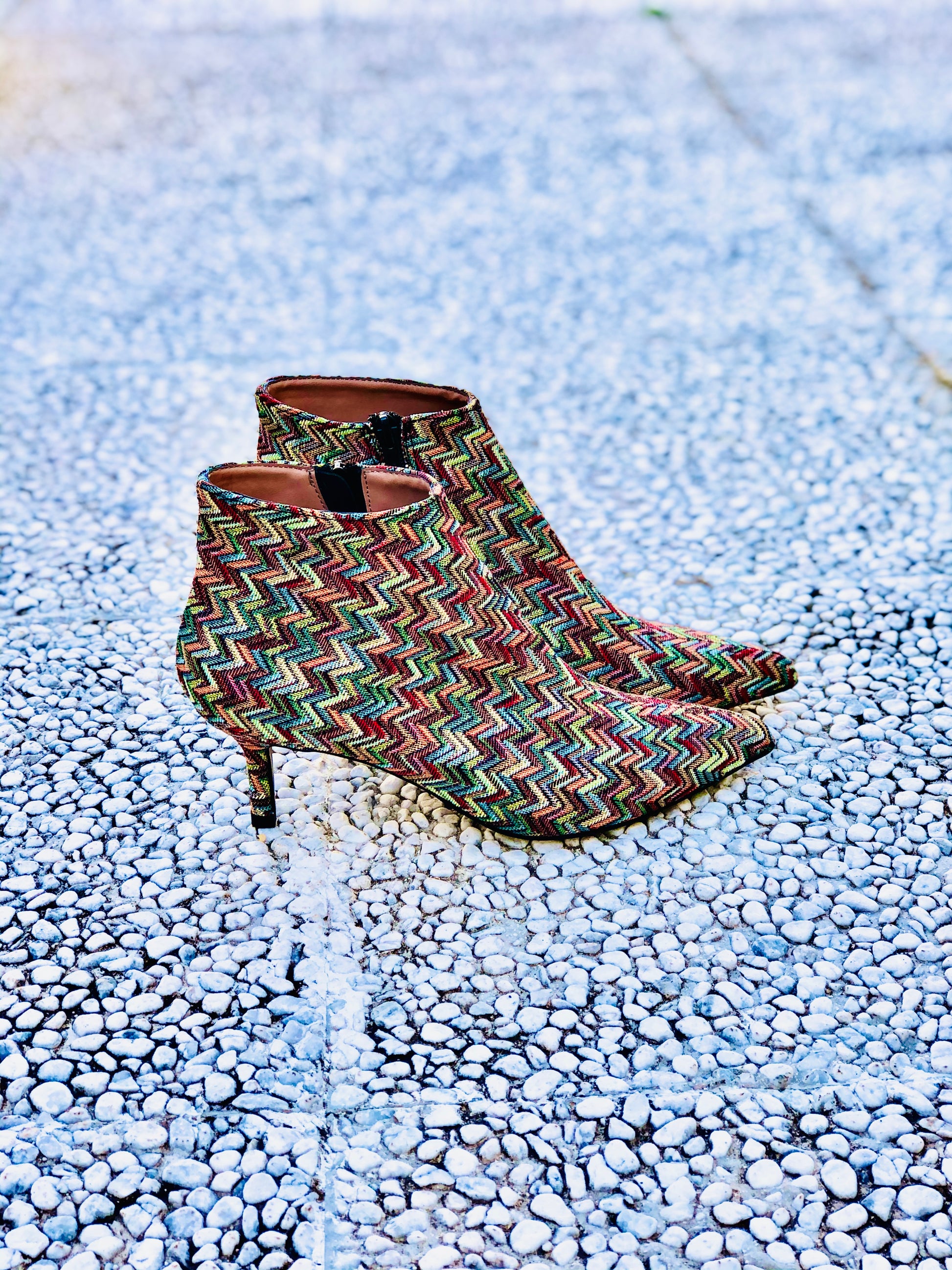 Μποτάκια με στρογγυλή μύτη σε ζακάρ με μοτίβο ζιγκ-ζαγκ.