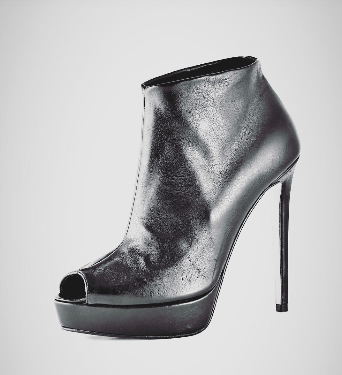 Μαύρες δερμάτινες μπότες με ψηλό τακούνι 12 εκ. και πλατφόρμα 2 εκ.