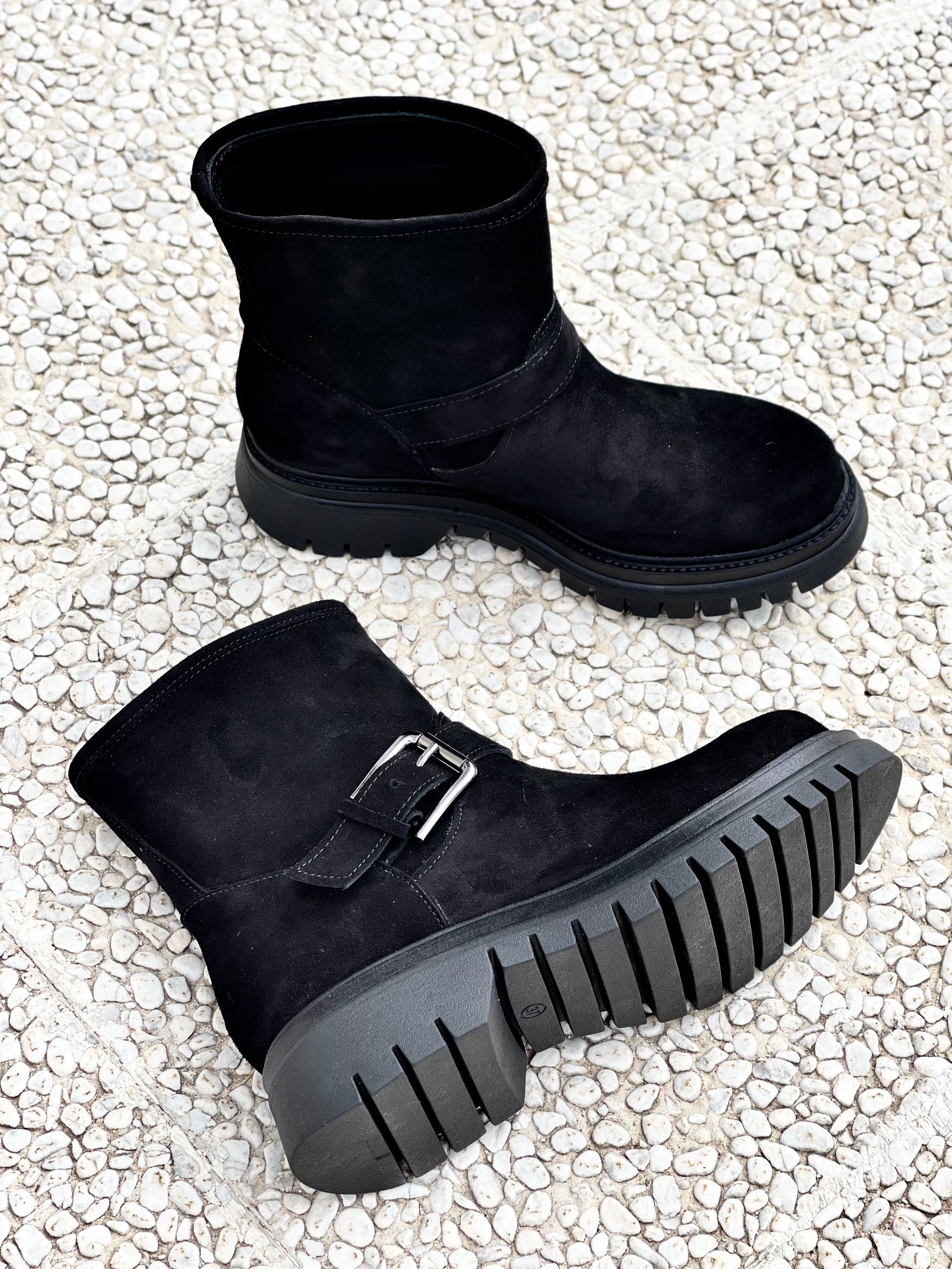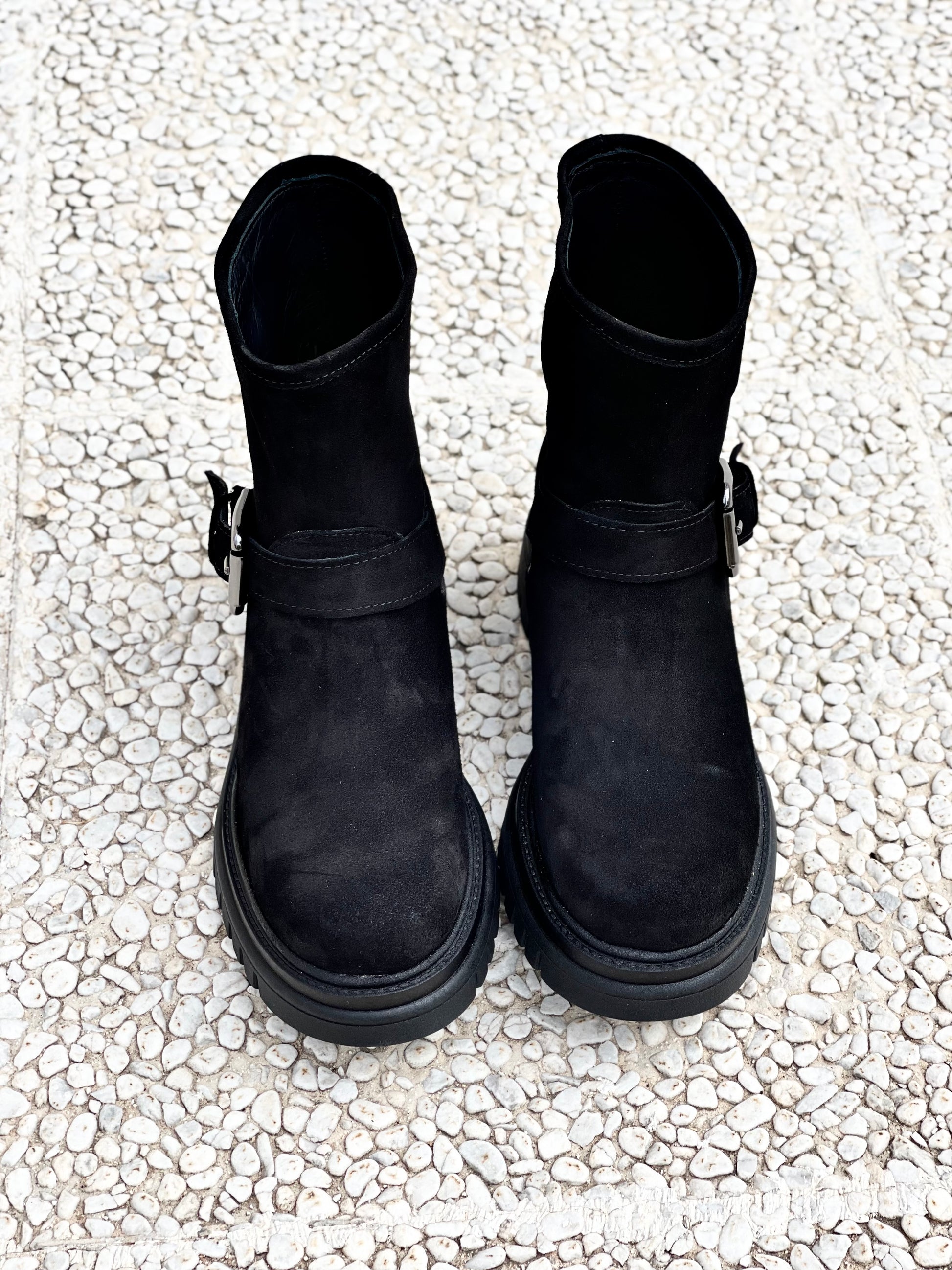 Μποτάκια μοτοσικλετιστών από σουέτ δέρμα με τακούνι 3 εκ.