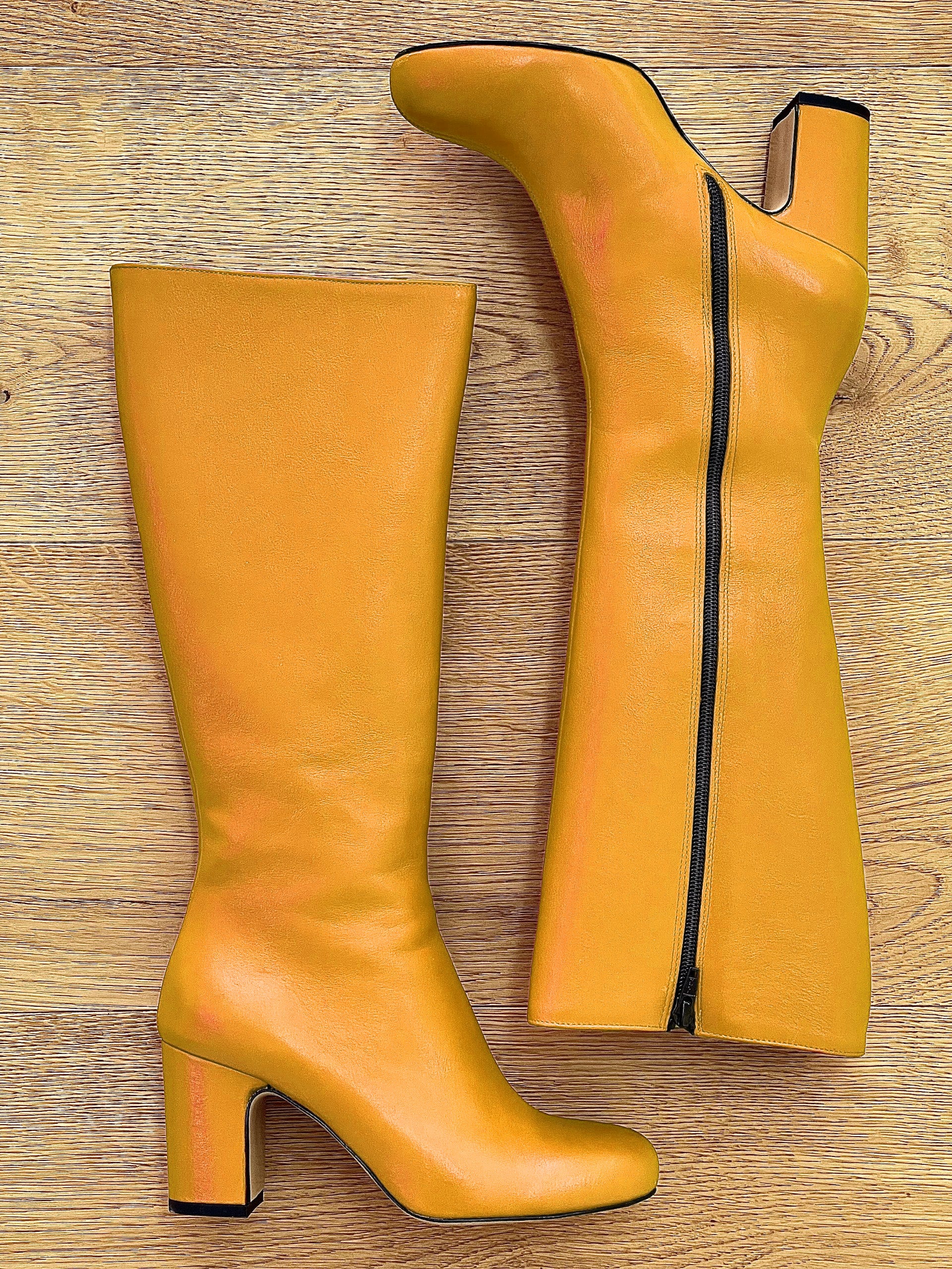 Μπότες με στρογγυλή μύτη και φαρδύ τακούνι.