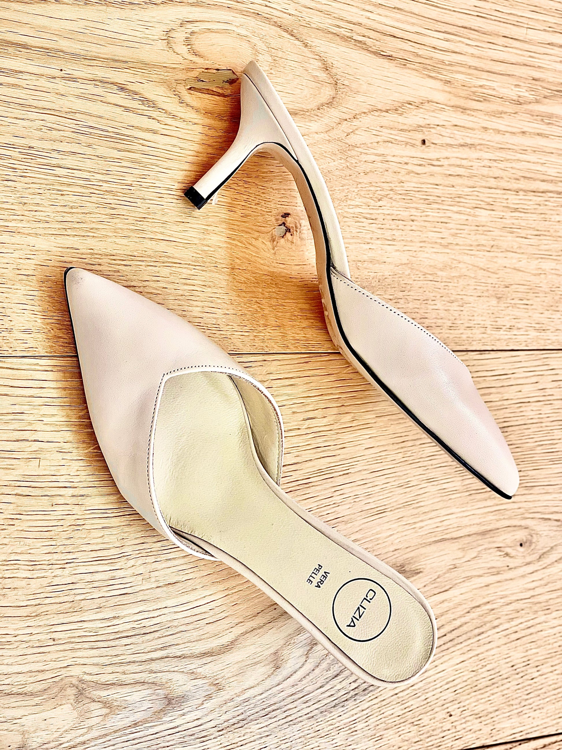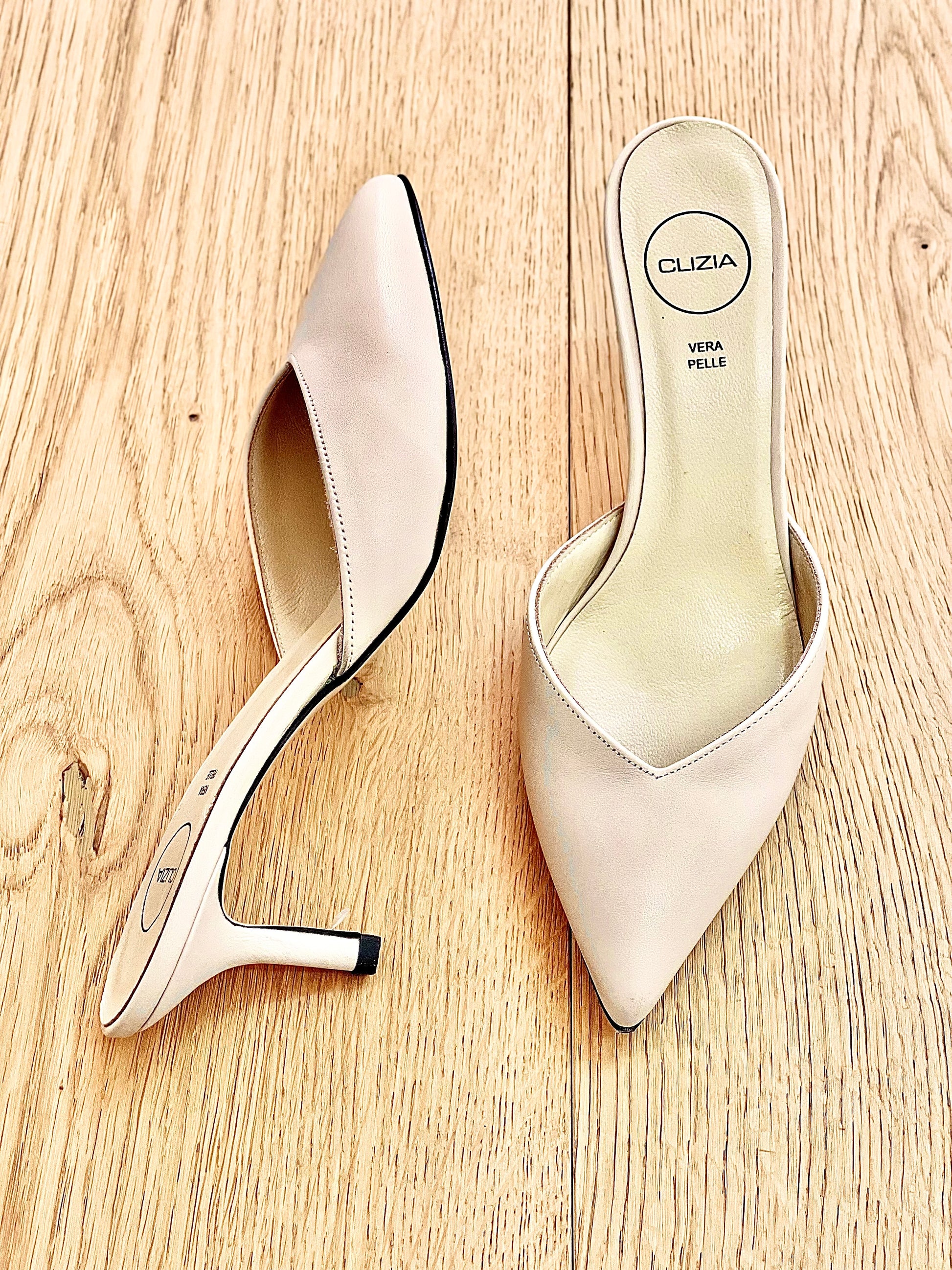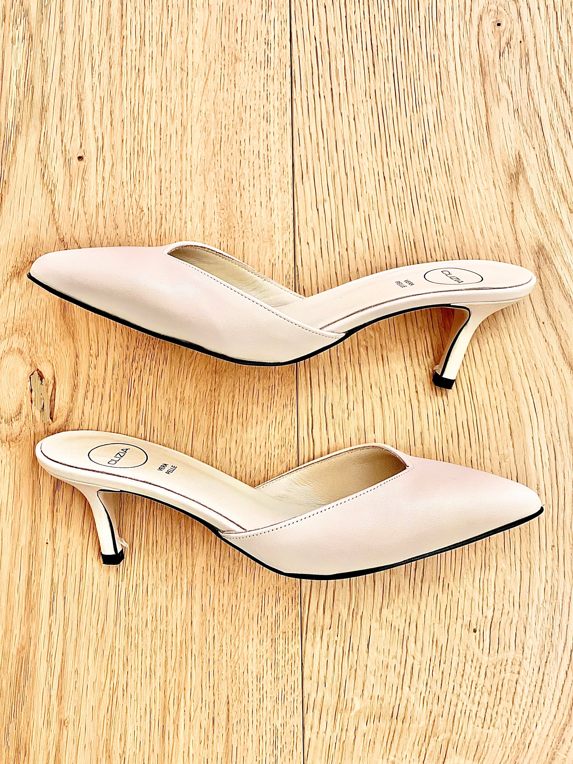 Δερμάτινα σαμπό με στρογγυλή μύτη, V λαιμόκοψη και τακούνι 6 εκ.