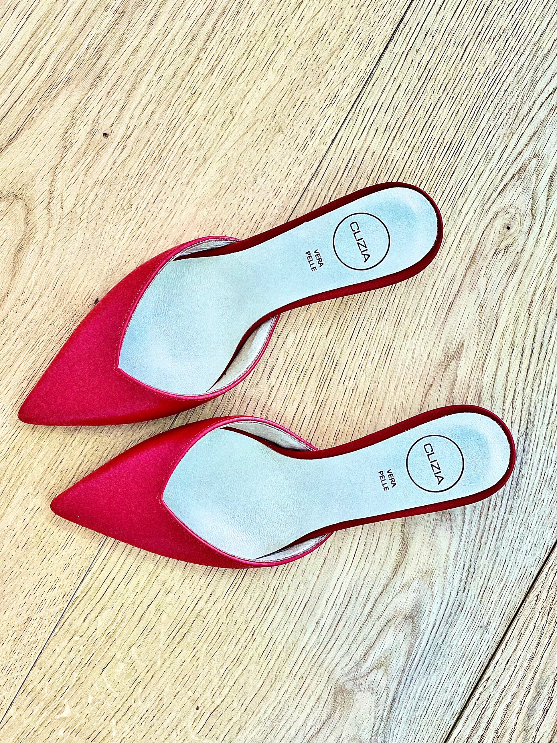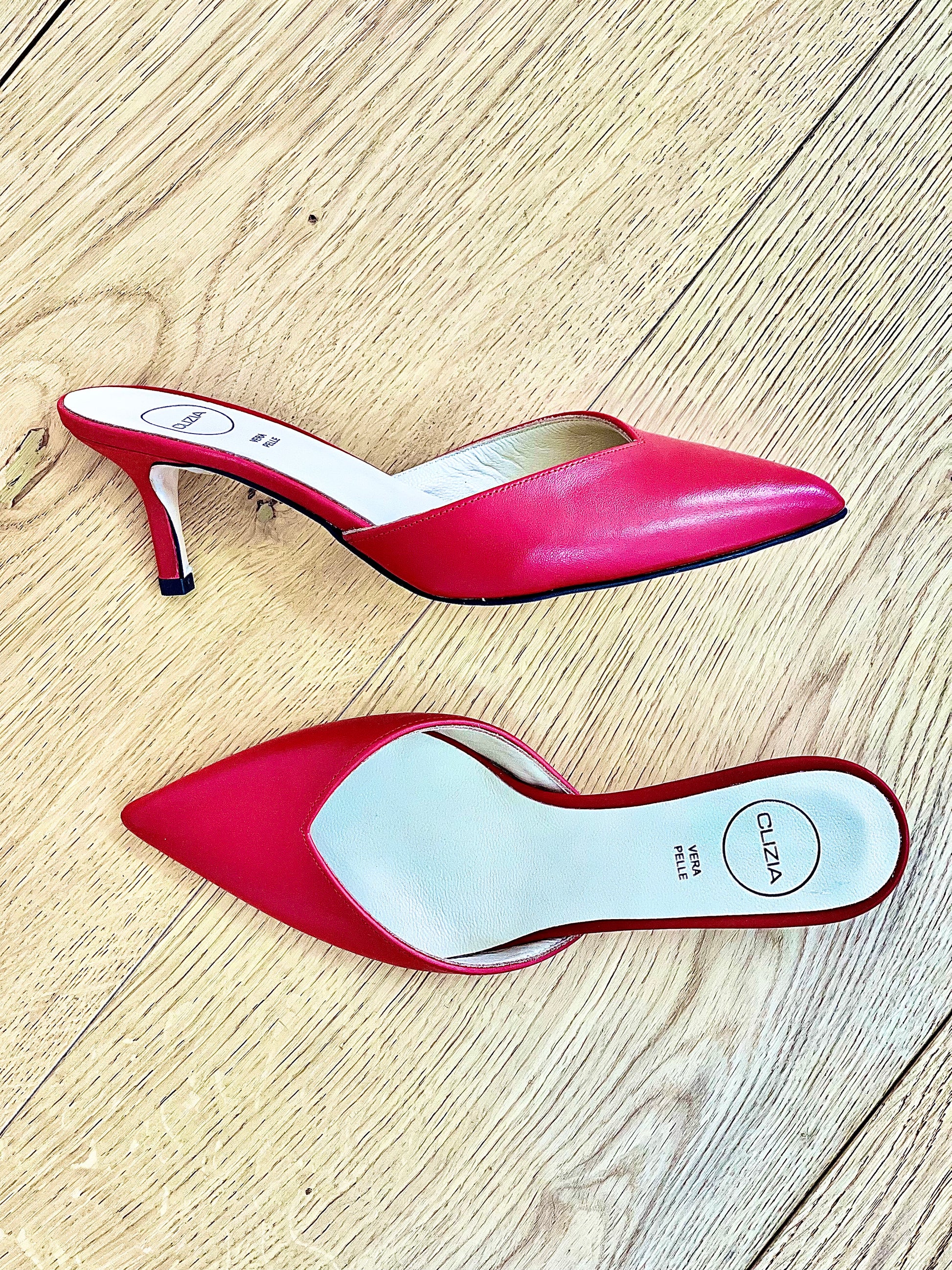 Δερμάτινα σαμπό με στρογγυλή μύτη, V λαιμόκοψη και τακούνι 6 εκ.