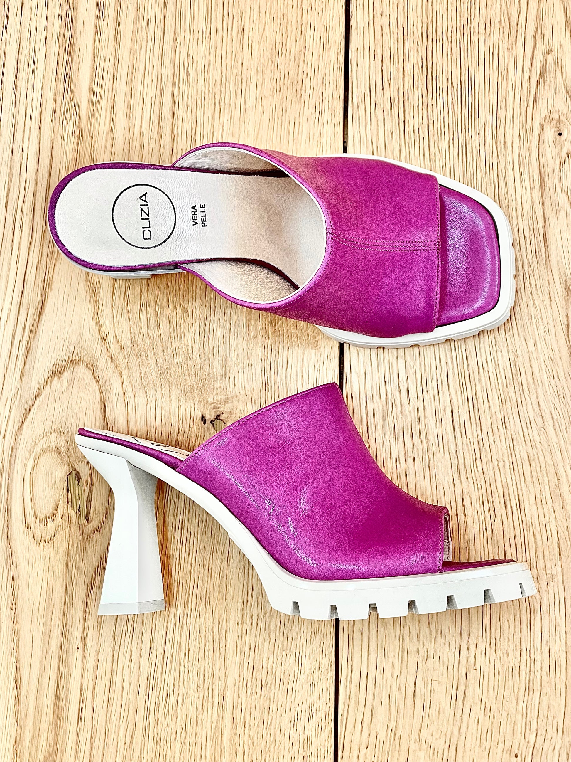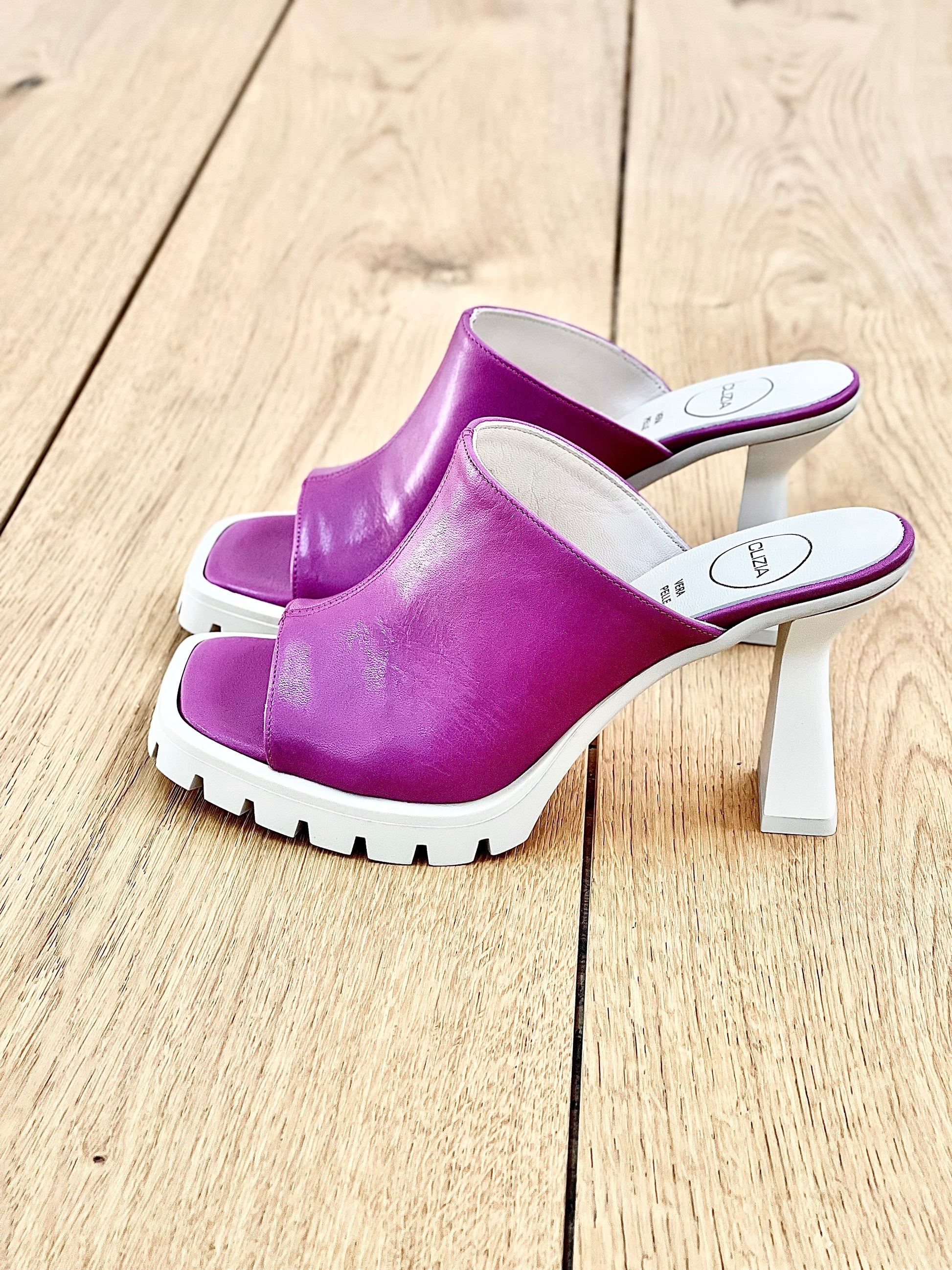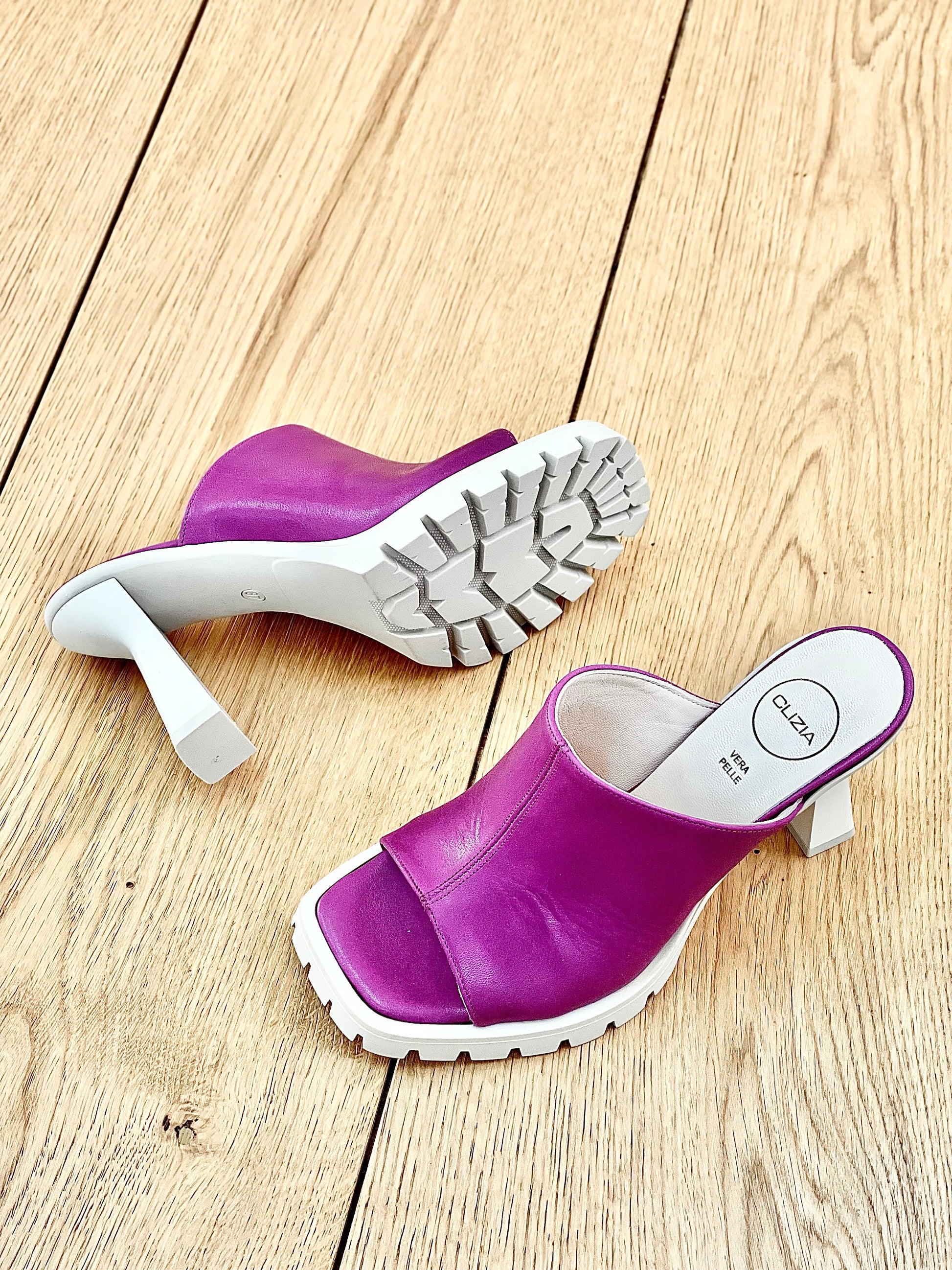 Ψηλά δερμάτινα σανδάλια με πλατφόρμα από καουτσούκ με αντιολισθητικό σχέδιο.