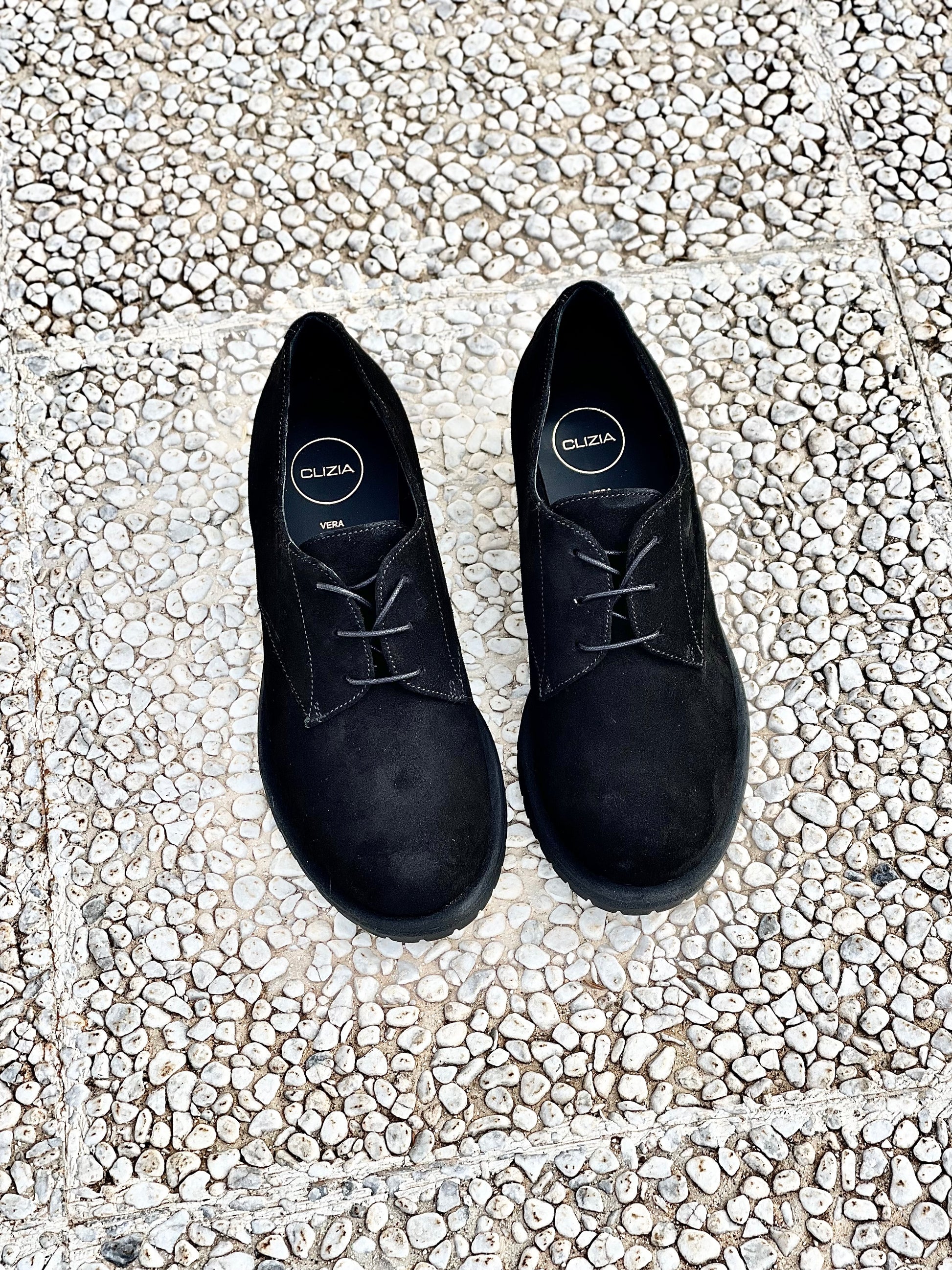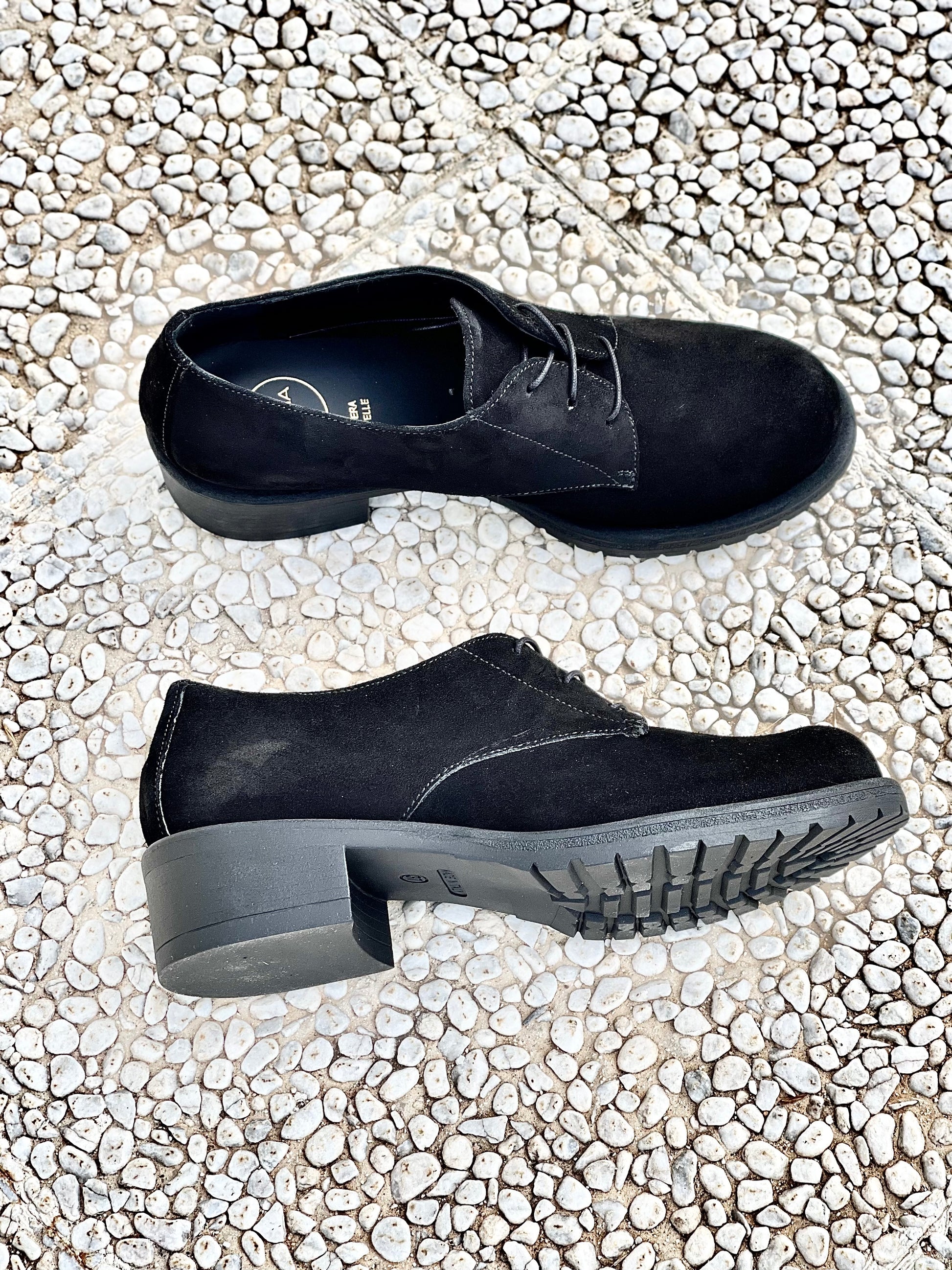 Γυναικεία ολόσωμη μπότα με δέσιμο από σουέτ και τακούνι 3 εκ.