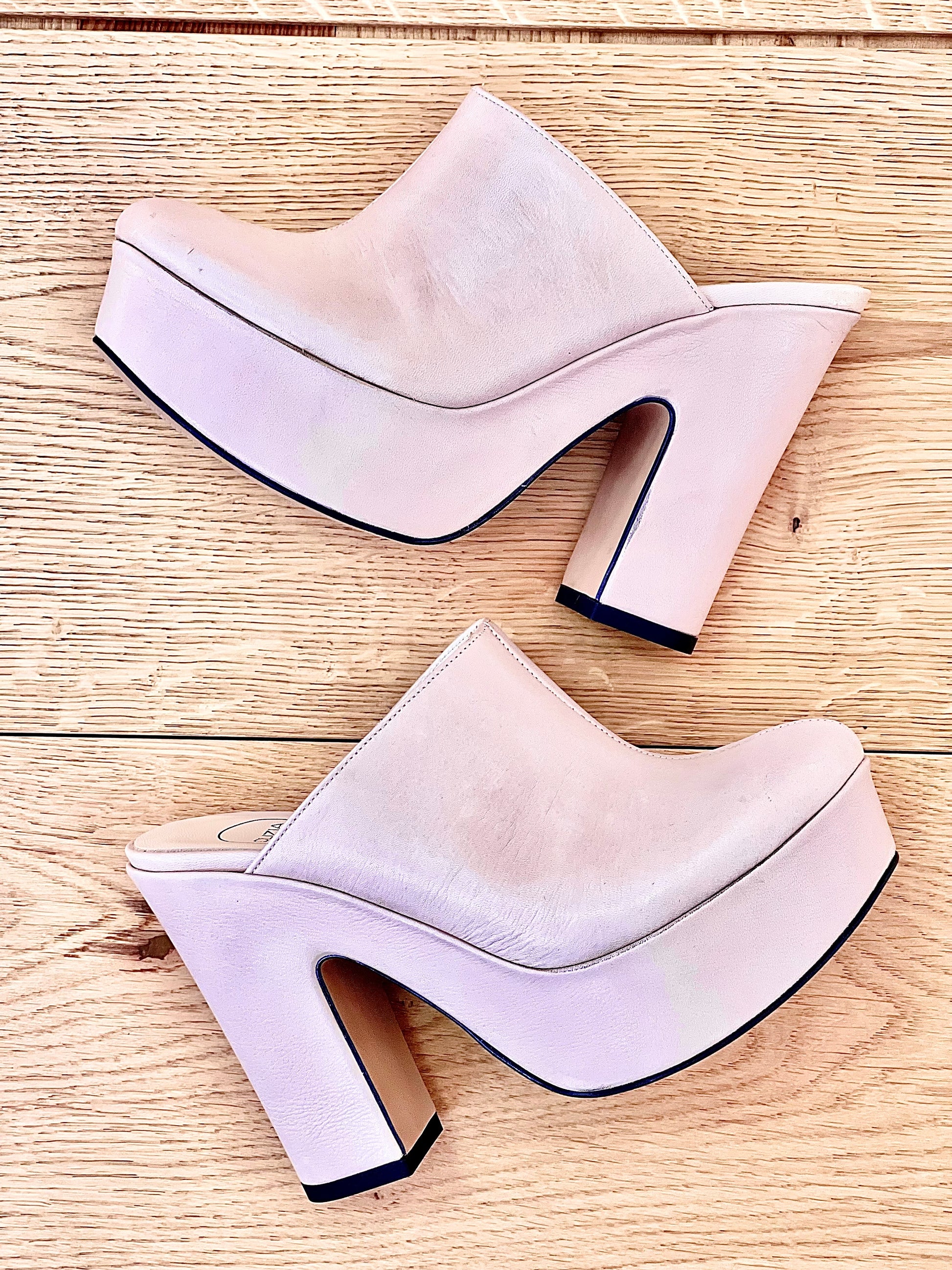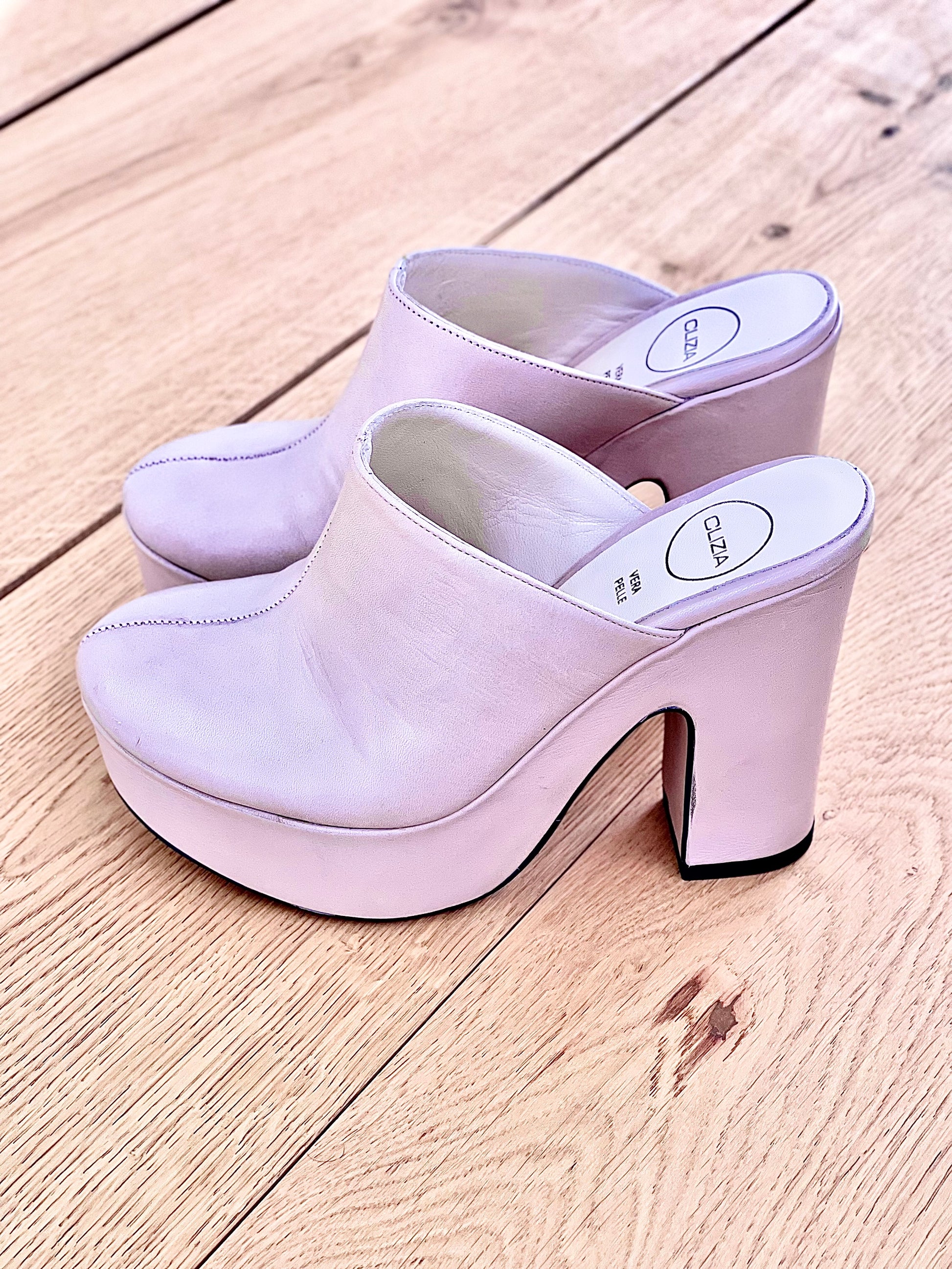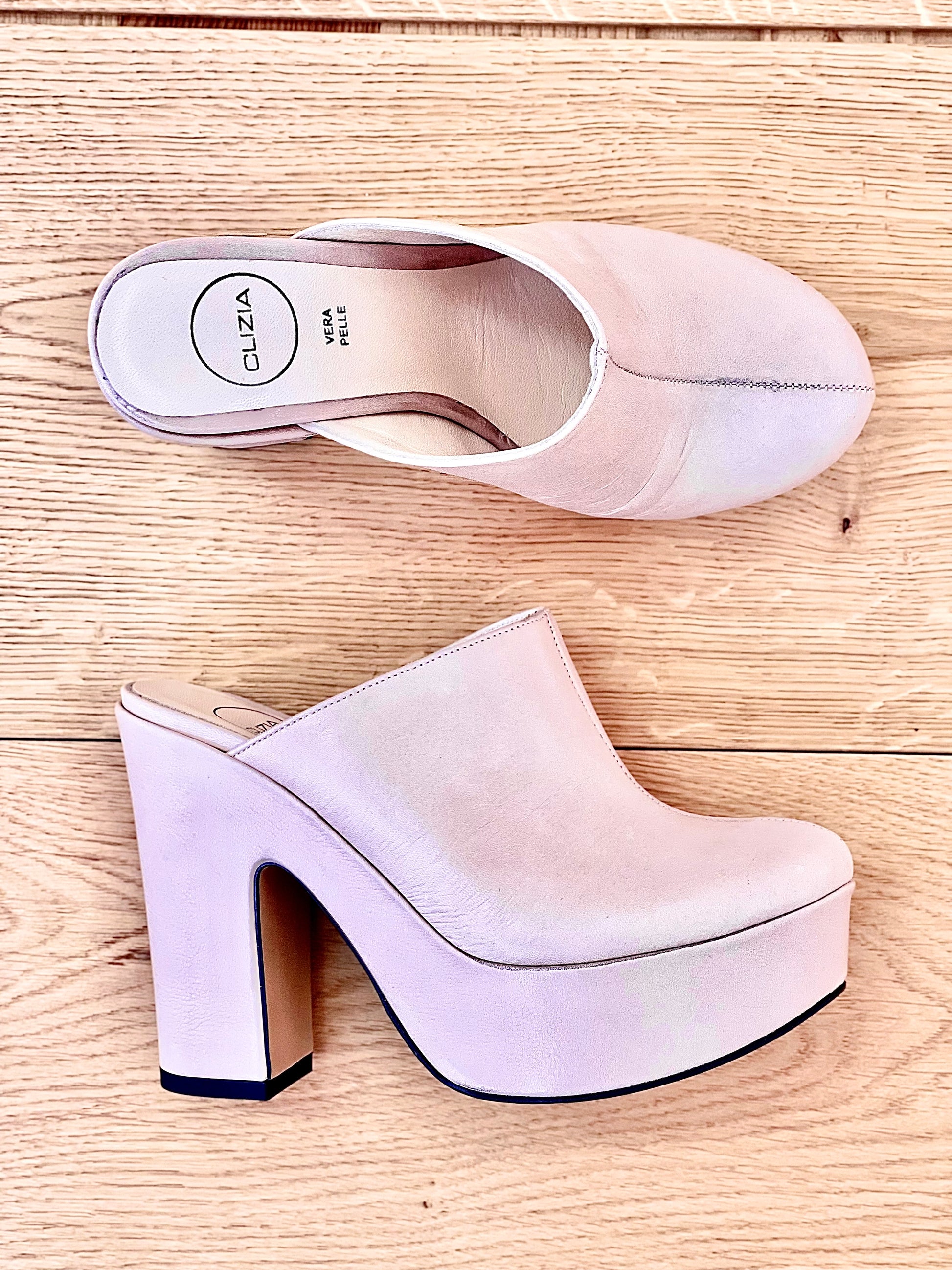 Σαμπό με στρογγυλή μύτη από δέρμα, με τακούνι ύψους 11,5 εκ. και πλατφόρμα 4 εκ.