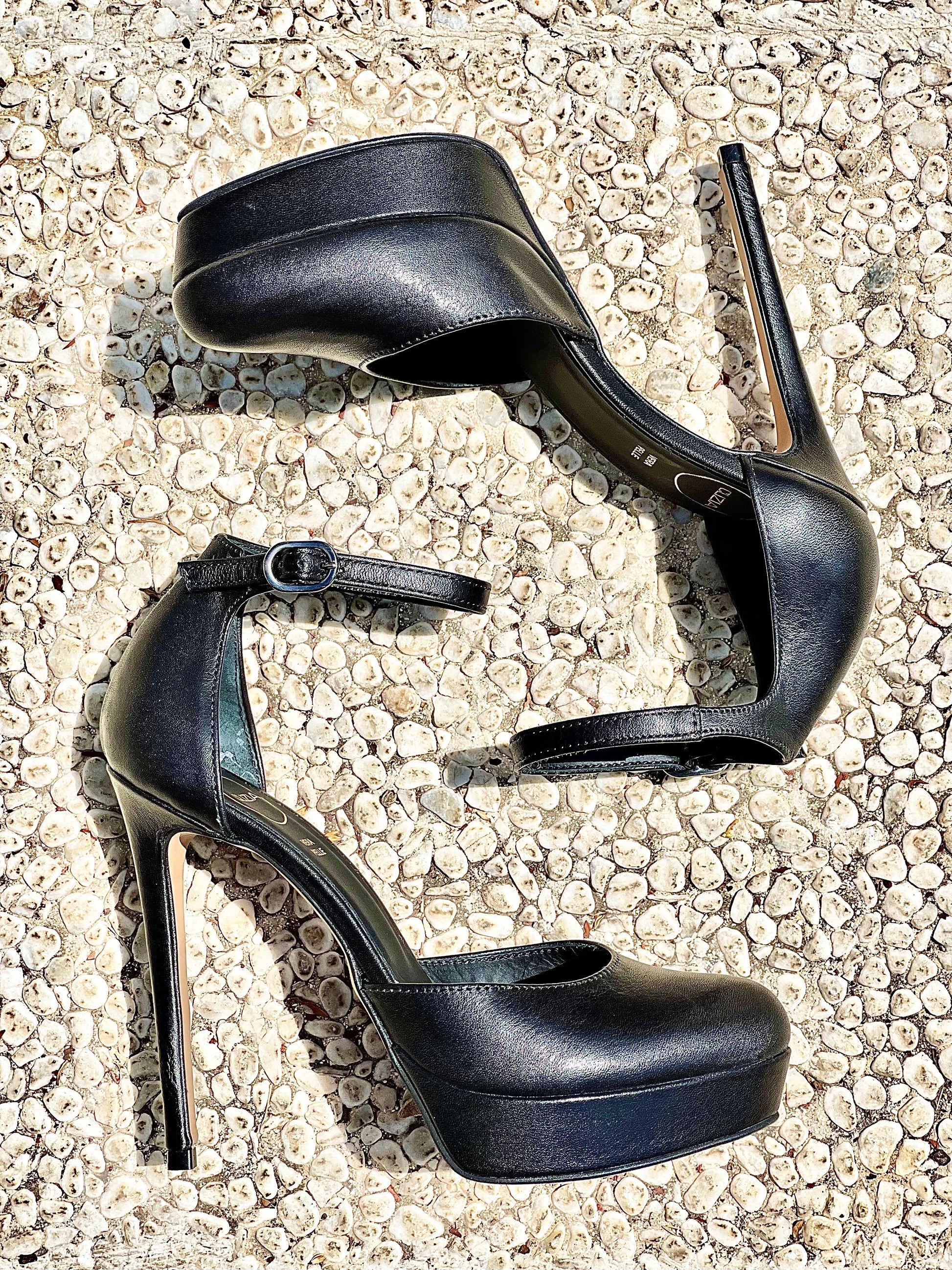 Δεκατοστίλβες με δερμάτινο τακούνι 12 εκ. και πλατφόρμα 2 εκ.