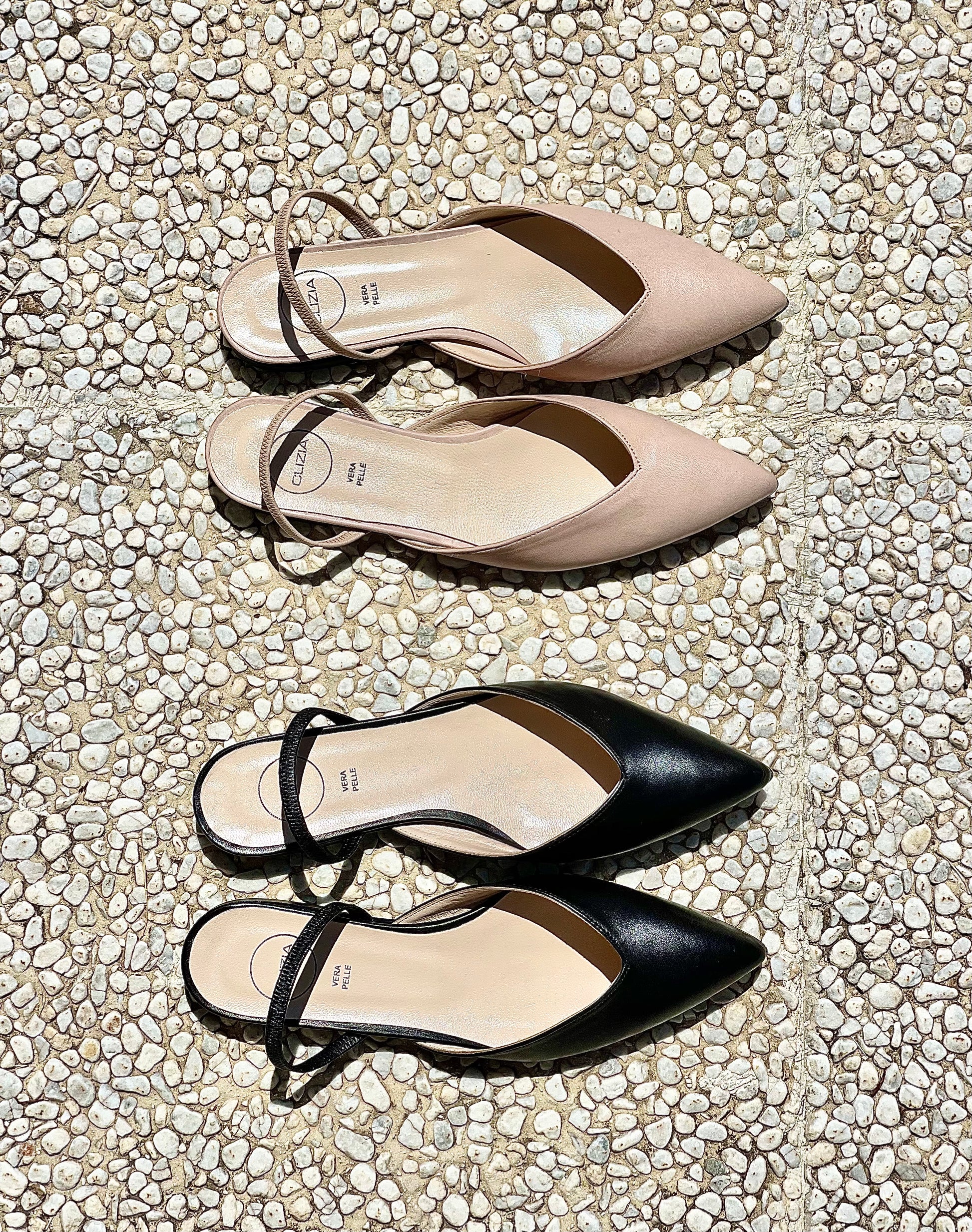 Μπαλαρίνες με V λαιμόκοψη και ελαστικό.