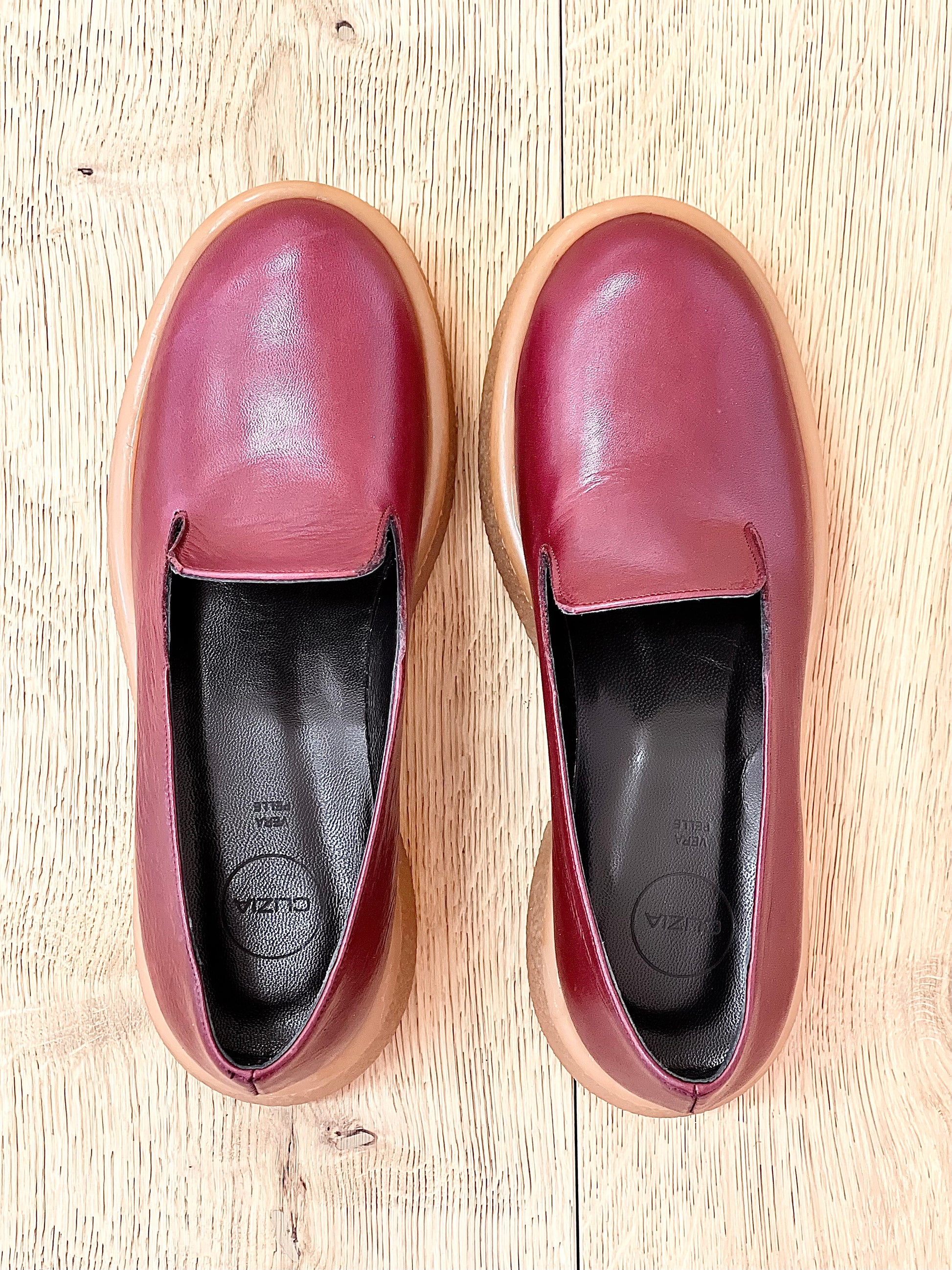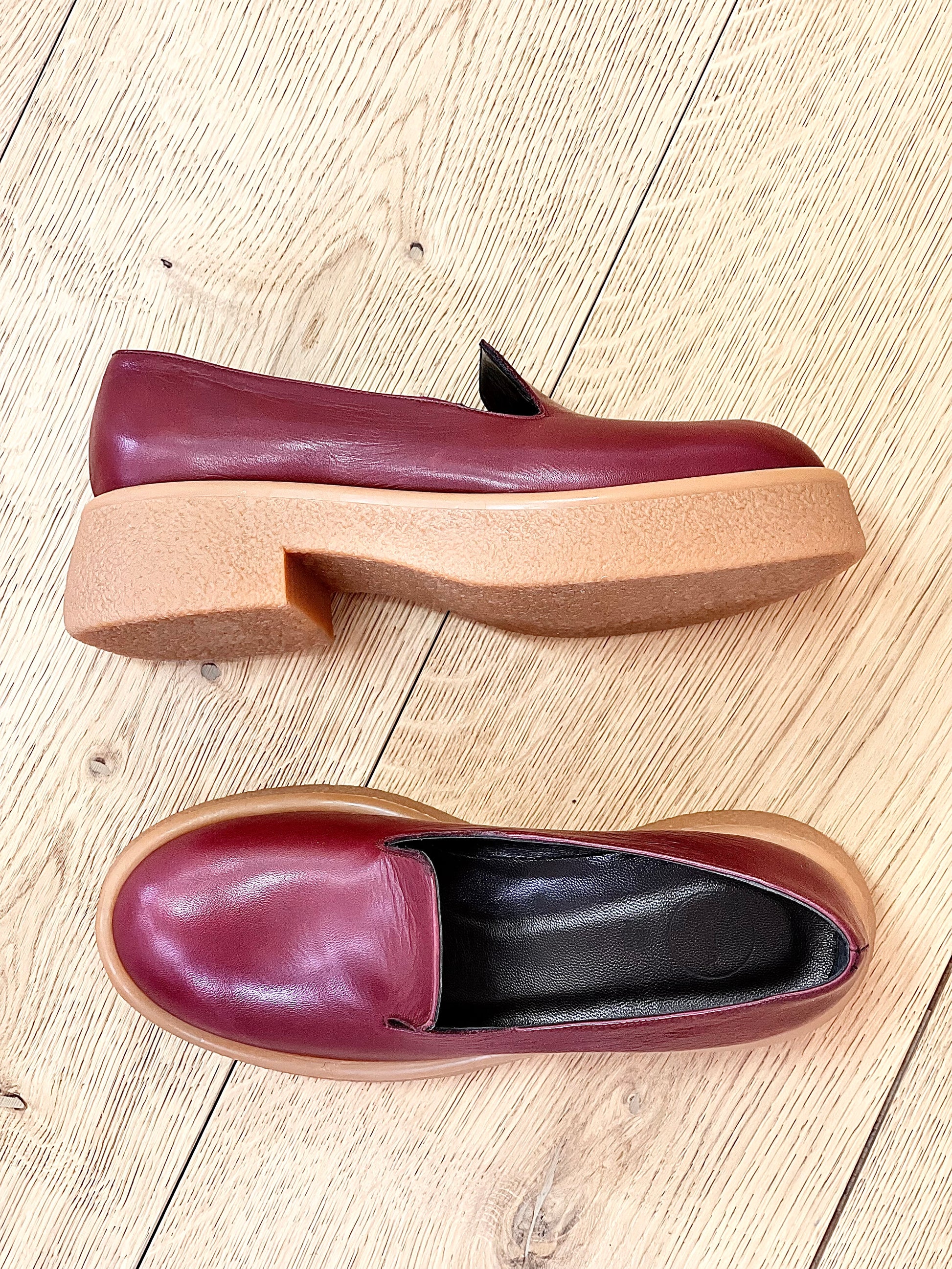 Μοκασίνια χαμηλά παντόφλες με κρεπαριστή σόλα από ανοιχτόχρωμο δέρμα.