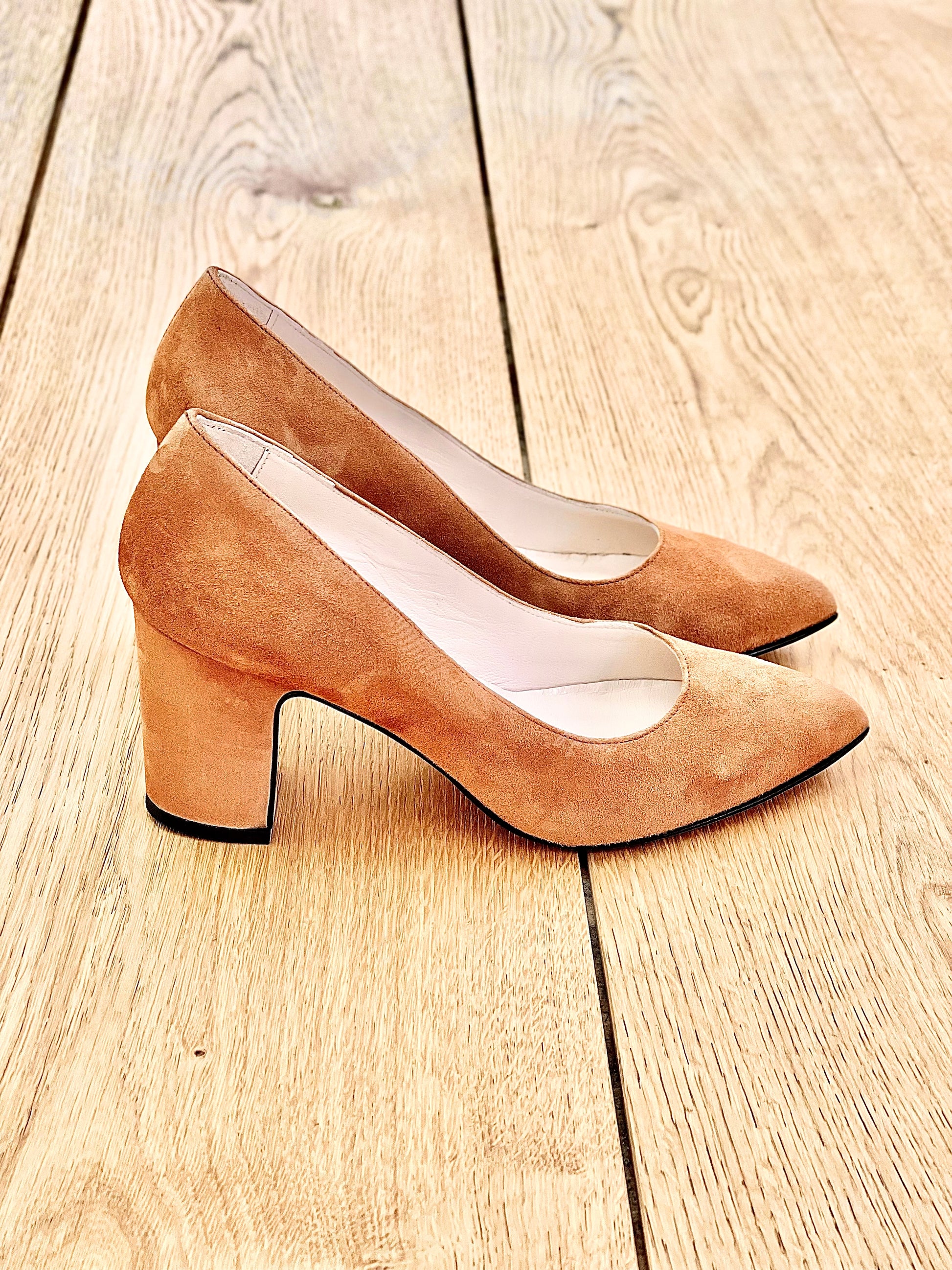Pointed toe pump in suede with 75 mm heel.