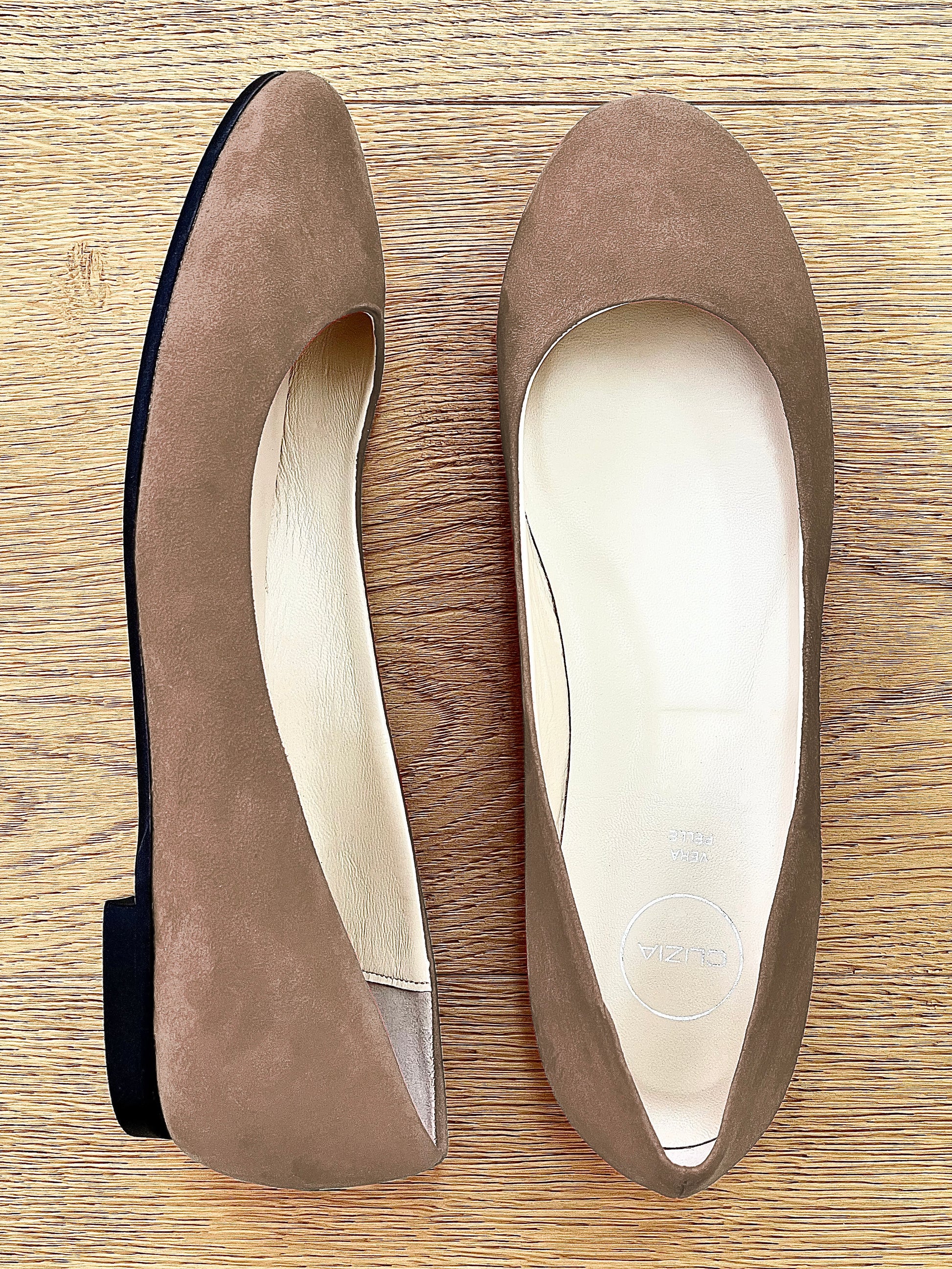 Round toe suede ballet flats.