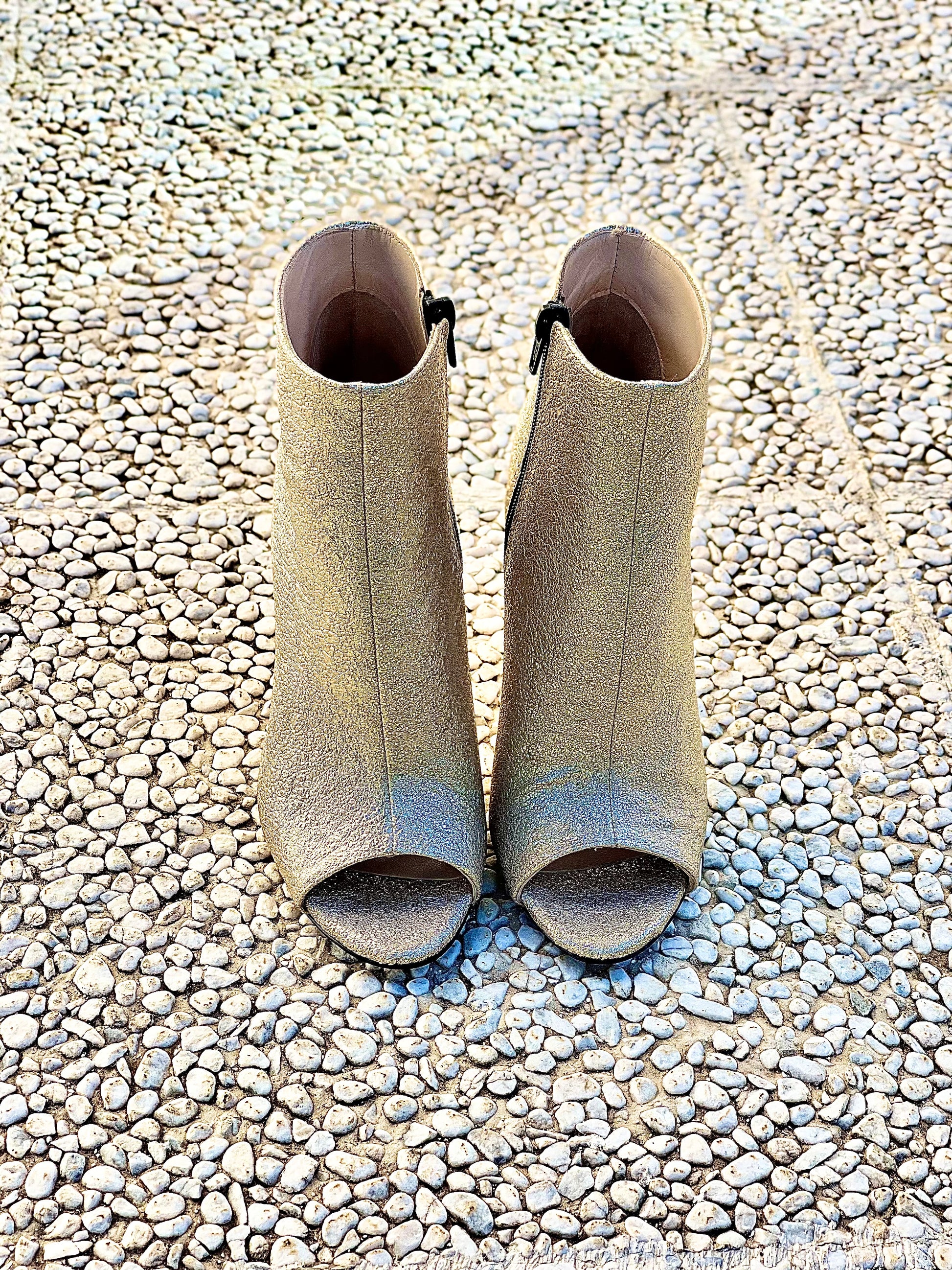 Laminated ankle boots with 12cm spiked heel.