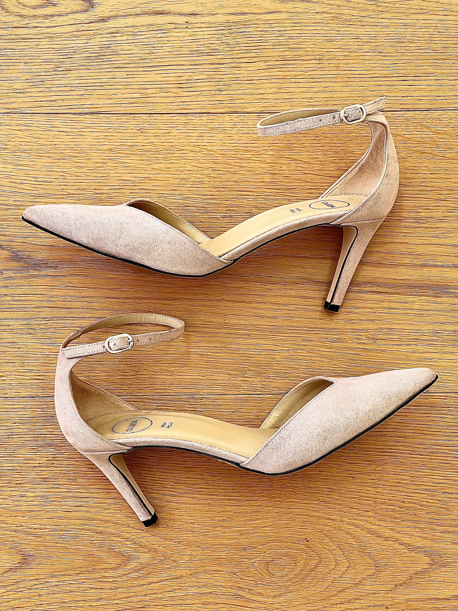 Escarpins à bout et talon en daim avec encolure en V.
