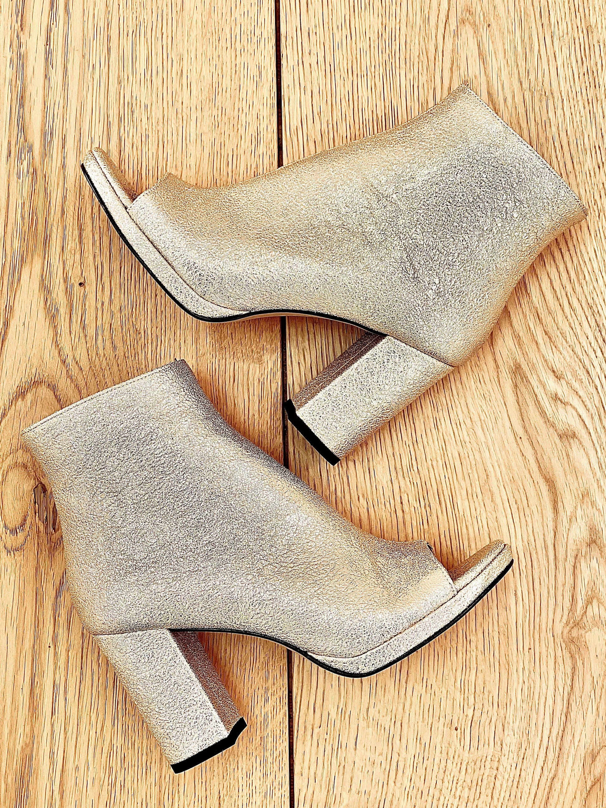 Bottines laminées à bout ouvert avec un talon de 9 cm et une plateforme de 1 cm.