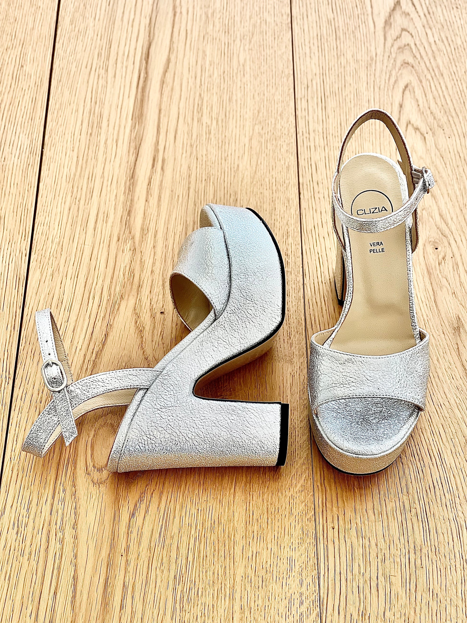 Sandales à bride haute avec bride laminée sur talon compensé de 11,5 cm.