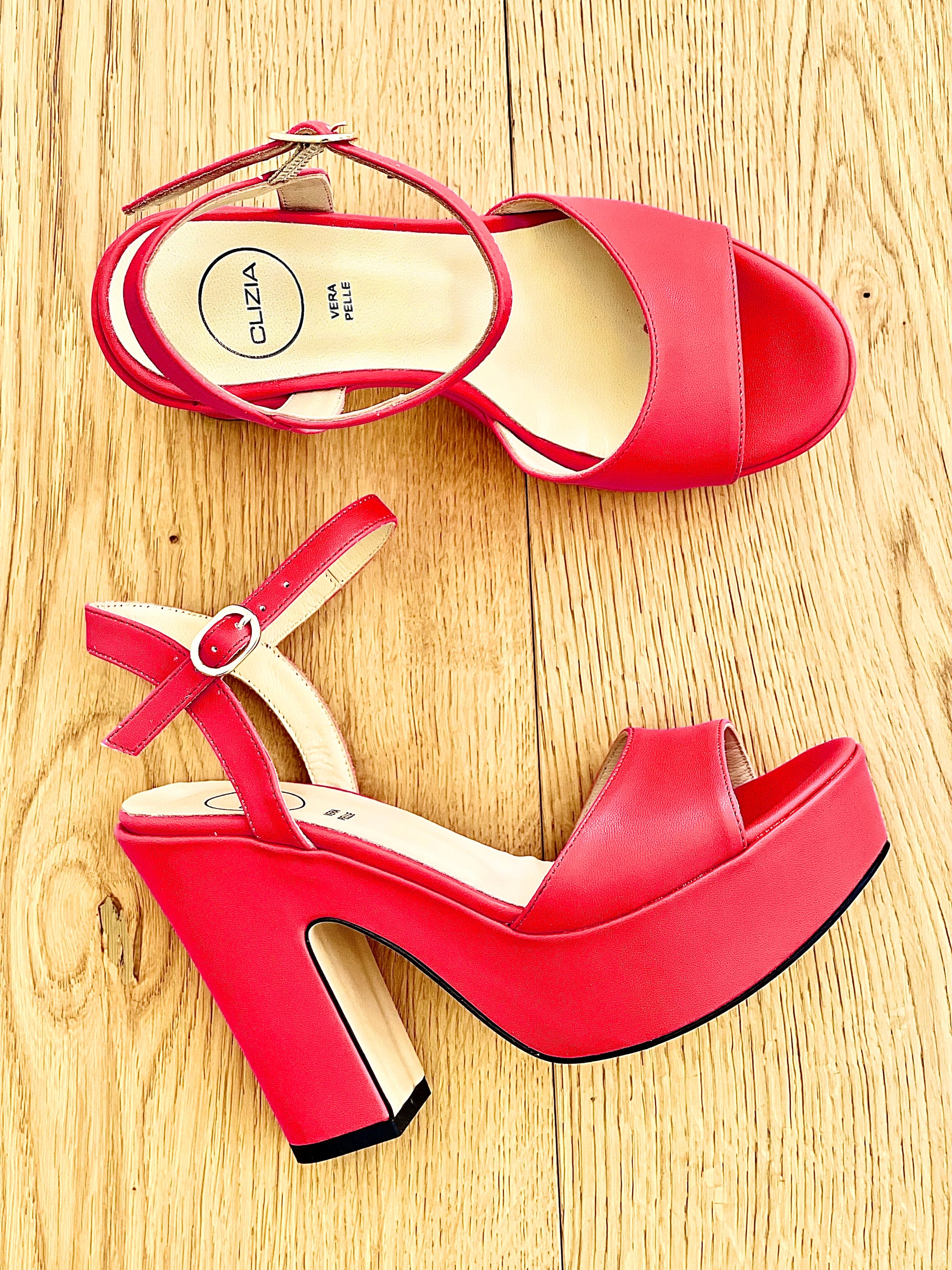 Sandales avec bande et sangle sur talon compensé de 11,5 cm.