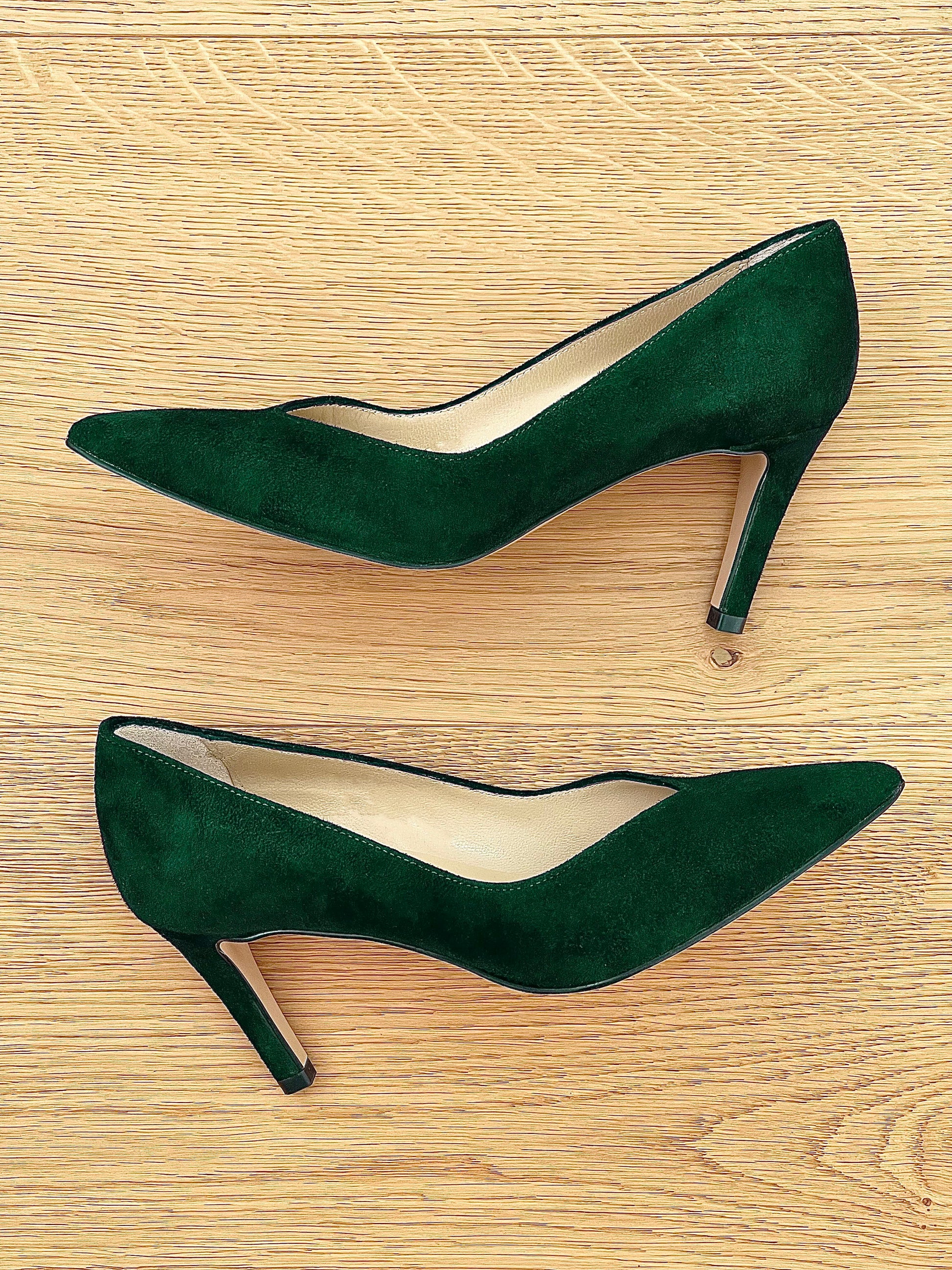 Escarpin à bout pointu avec encolure en V et talon aiguille.