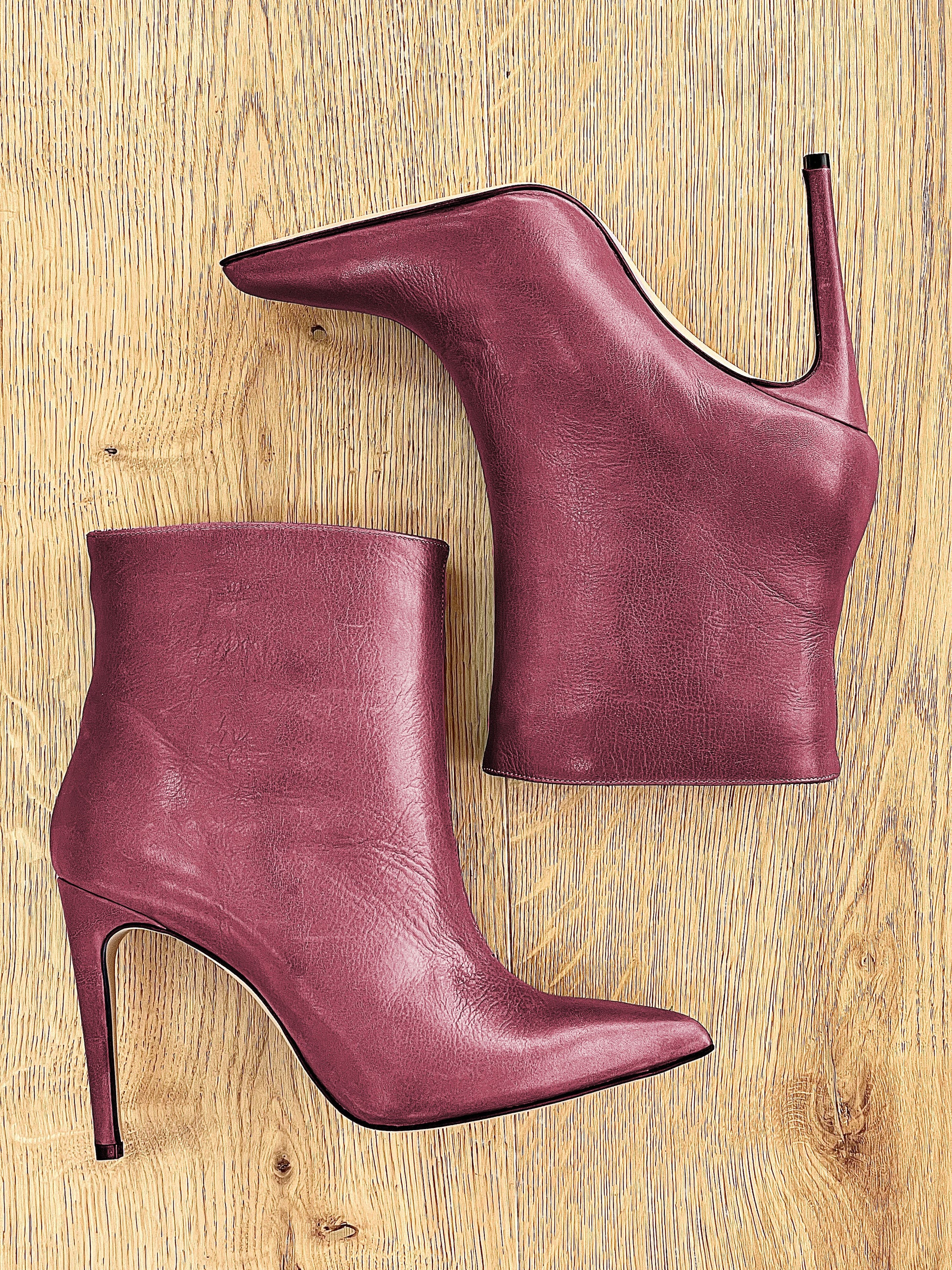 Bottines en cuir tubulaire à talon aiguille de 10 cm.