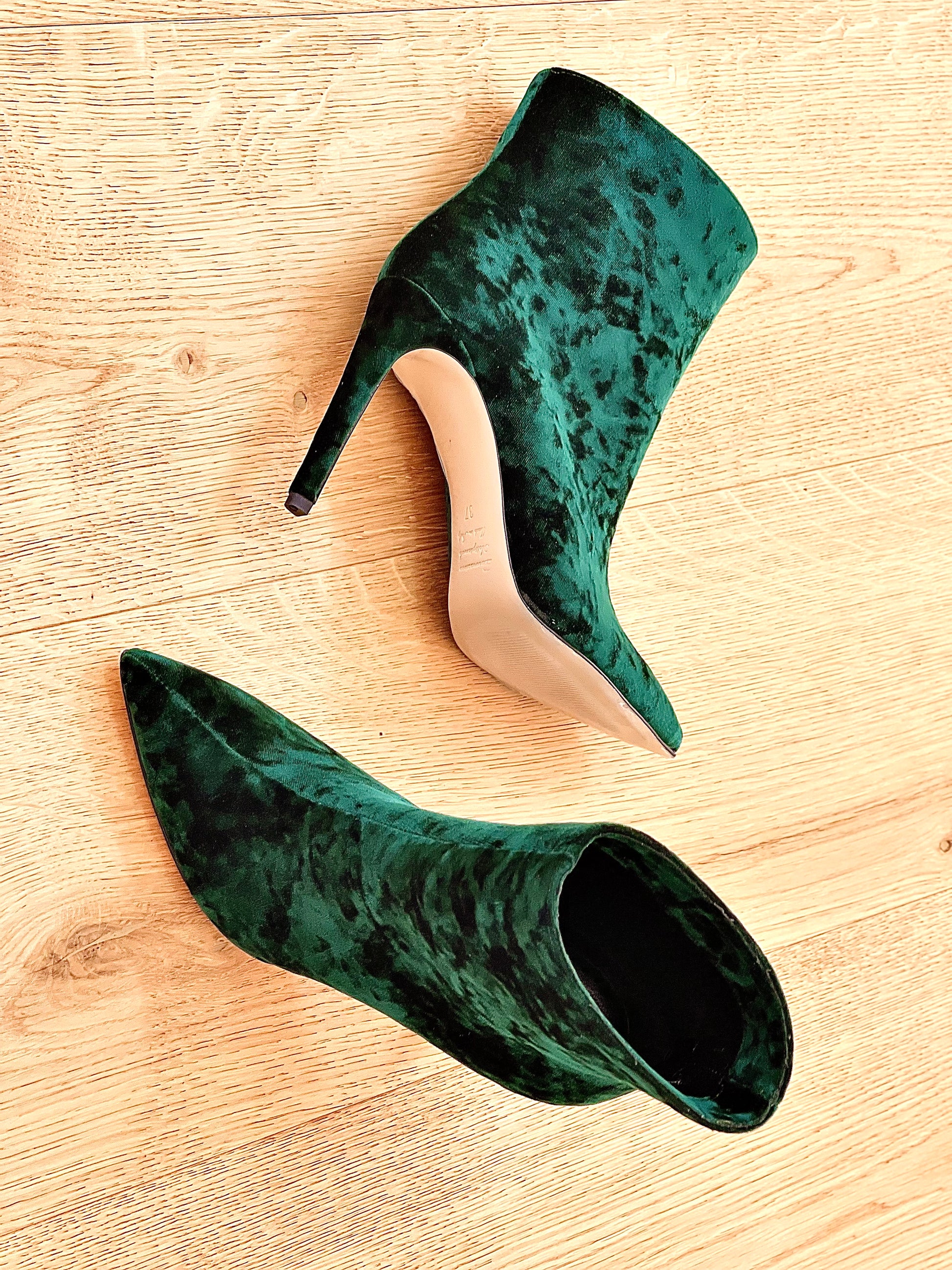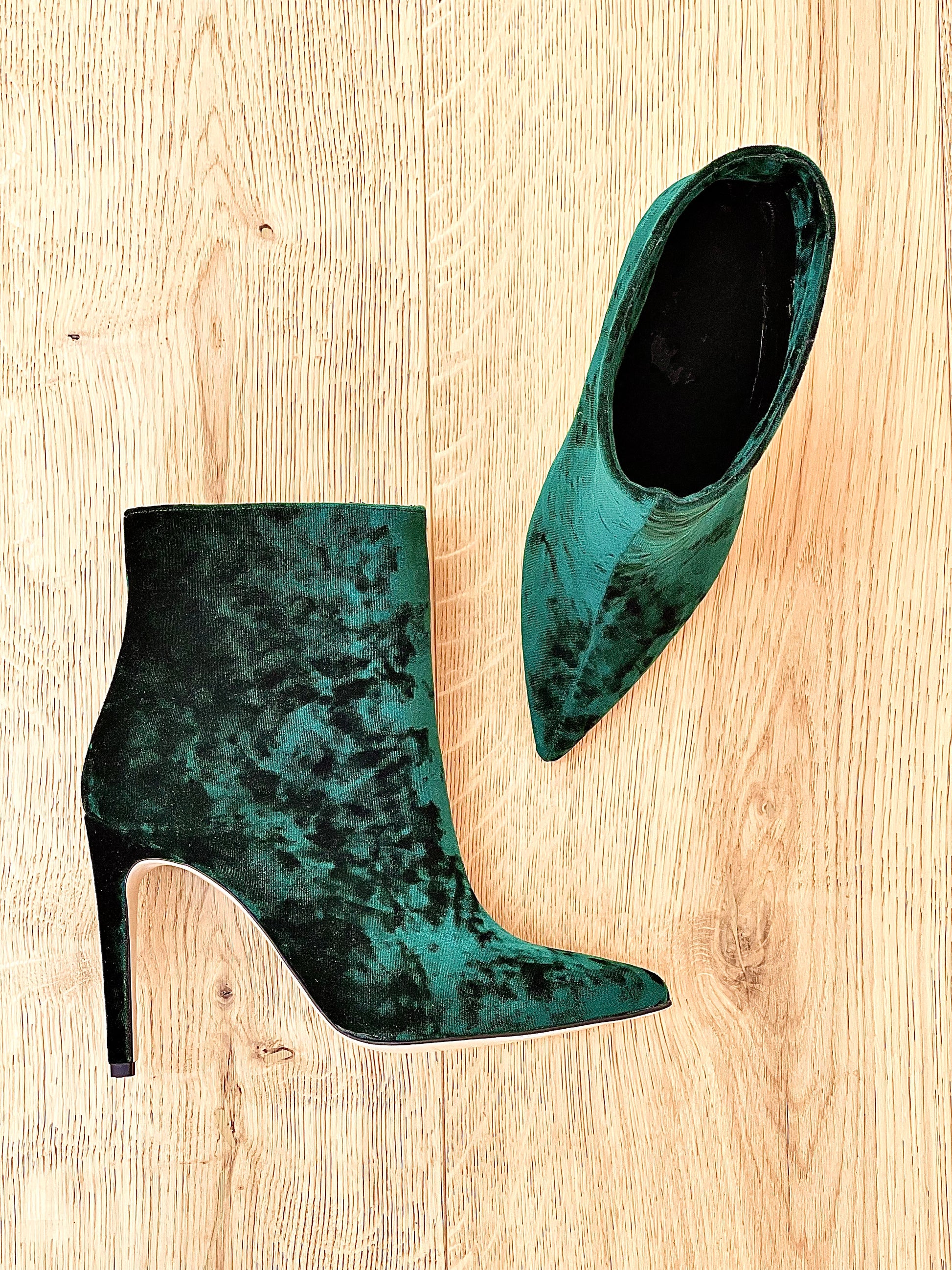 Bottines en velours à bout tubulaire avec un talon aiguille de 10 cm.