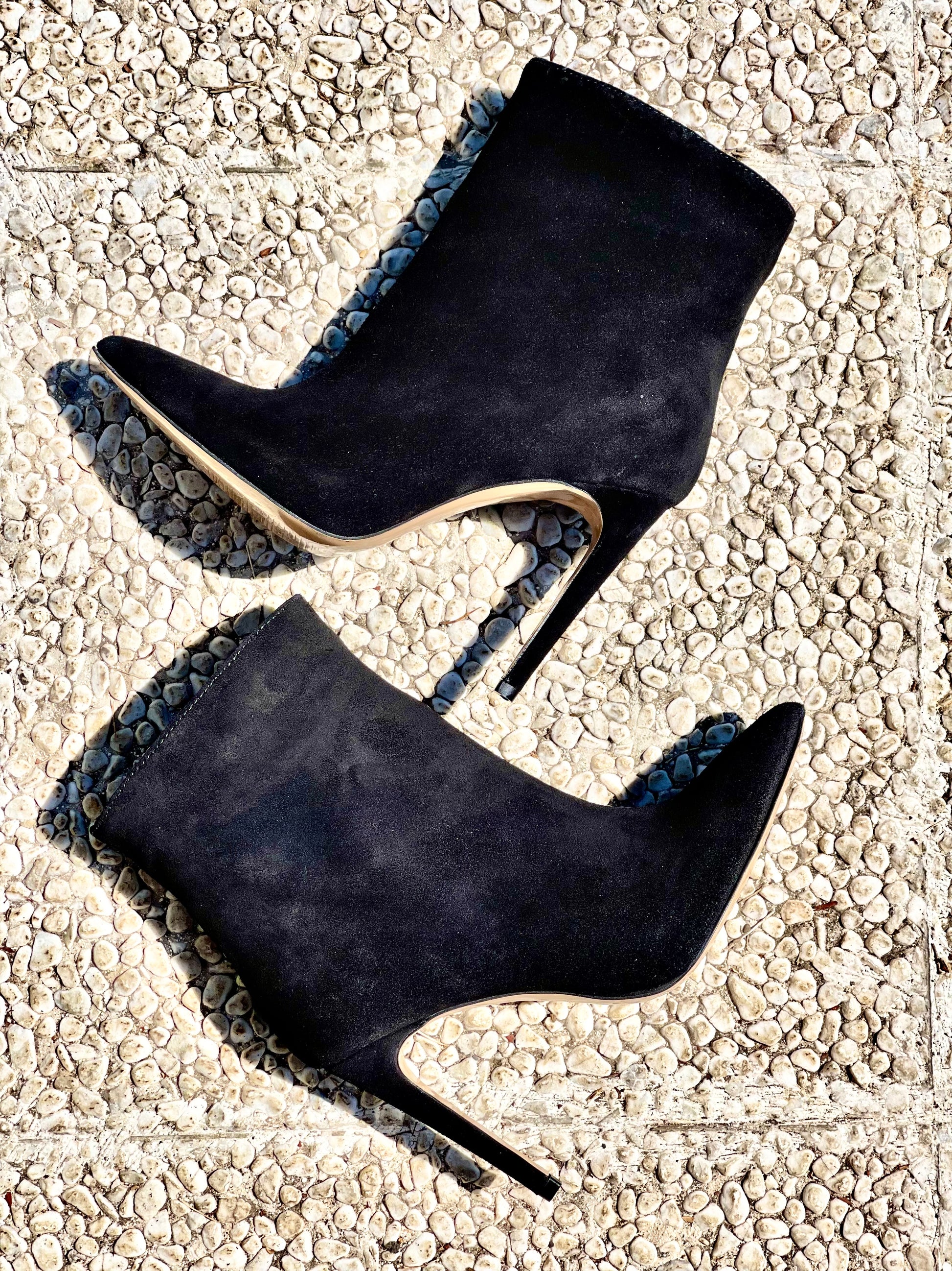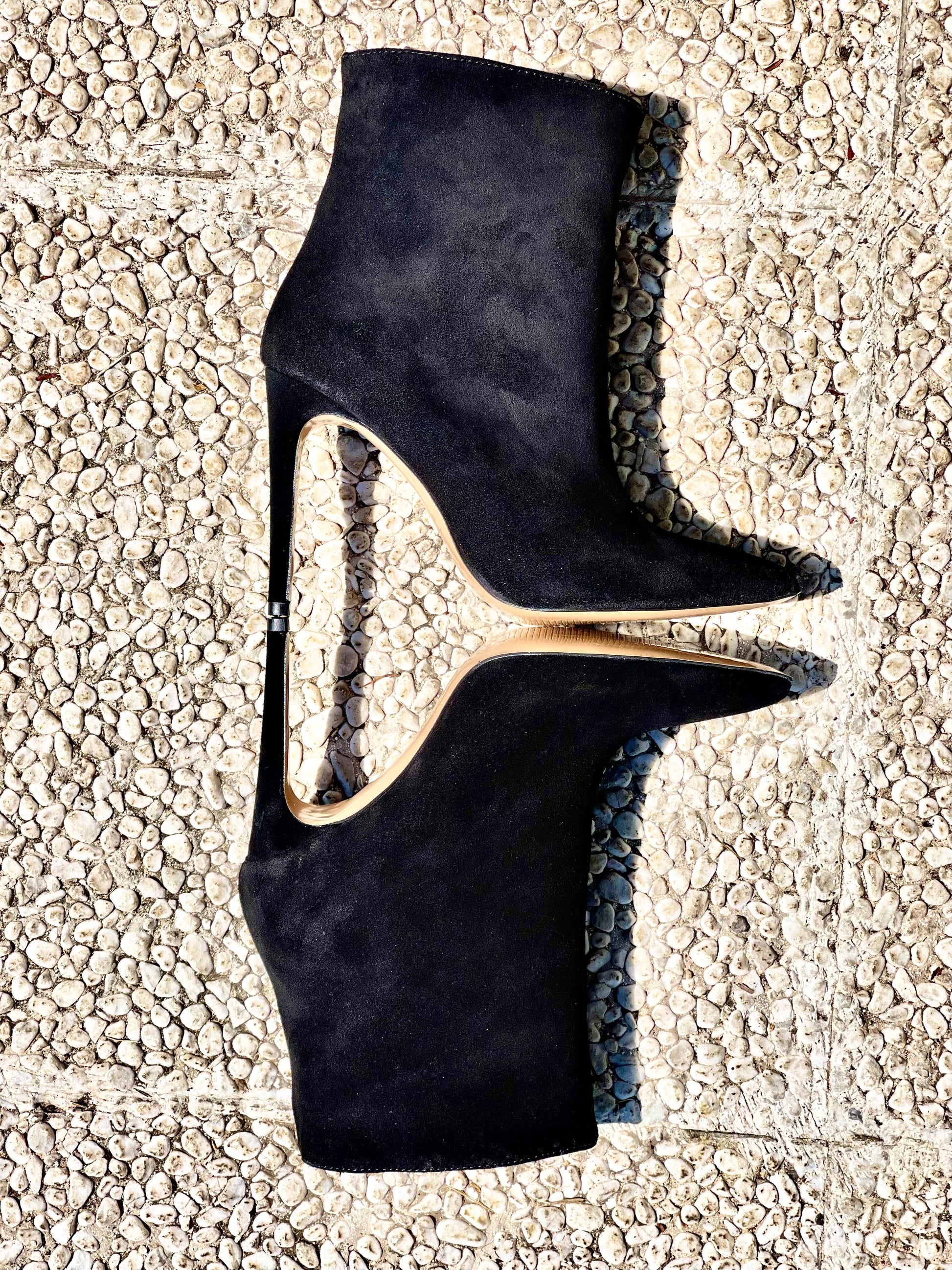 Bottines en daim à bout pointu avec talon aiguille de 100 mm.