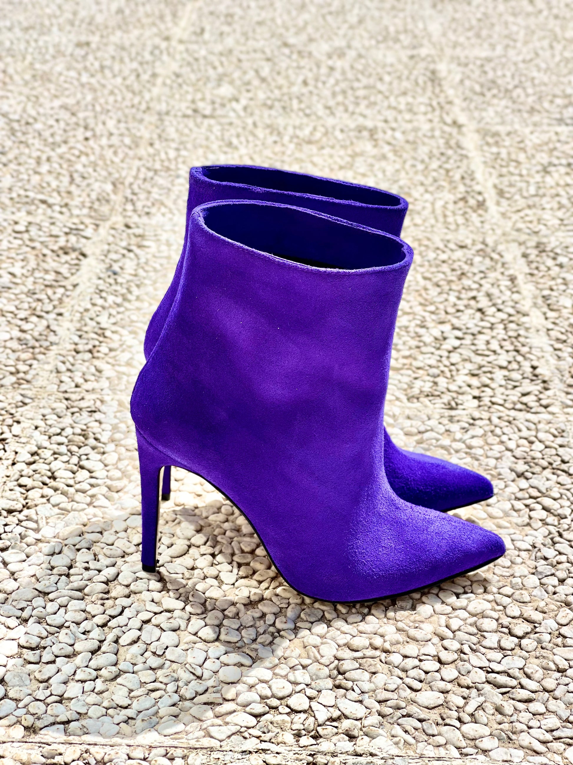 Bottines en daim à bout pointu avec talon aiguille de 100 mm.