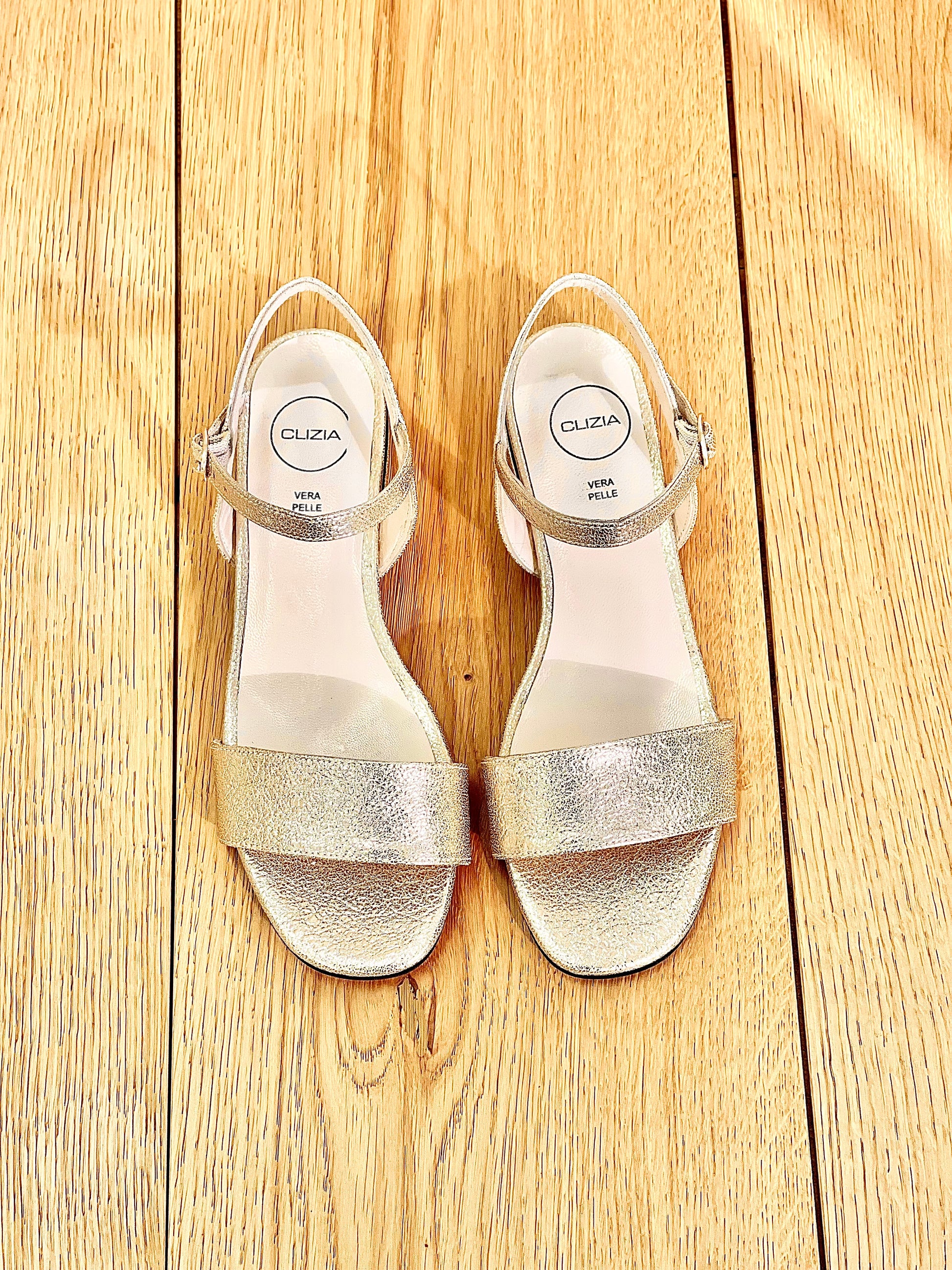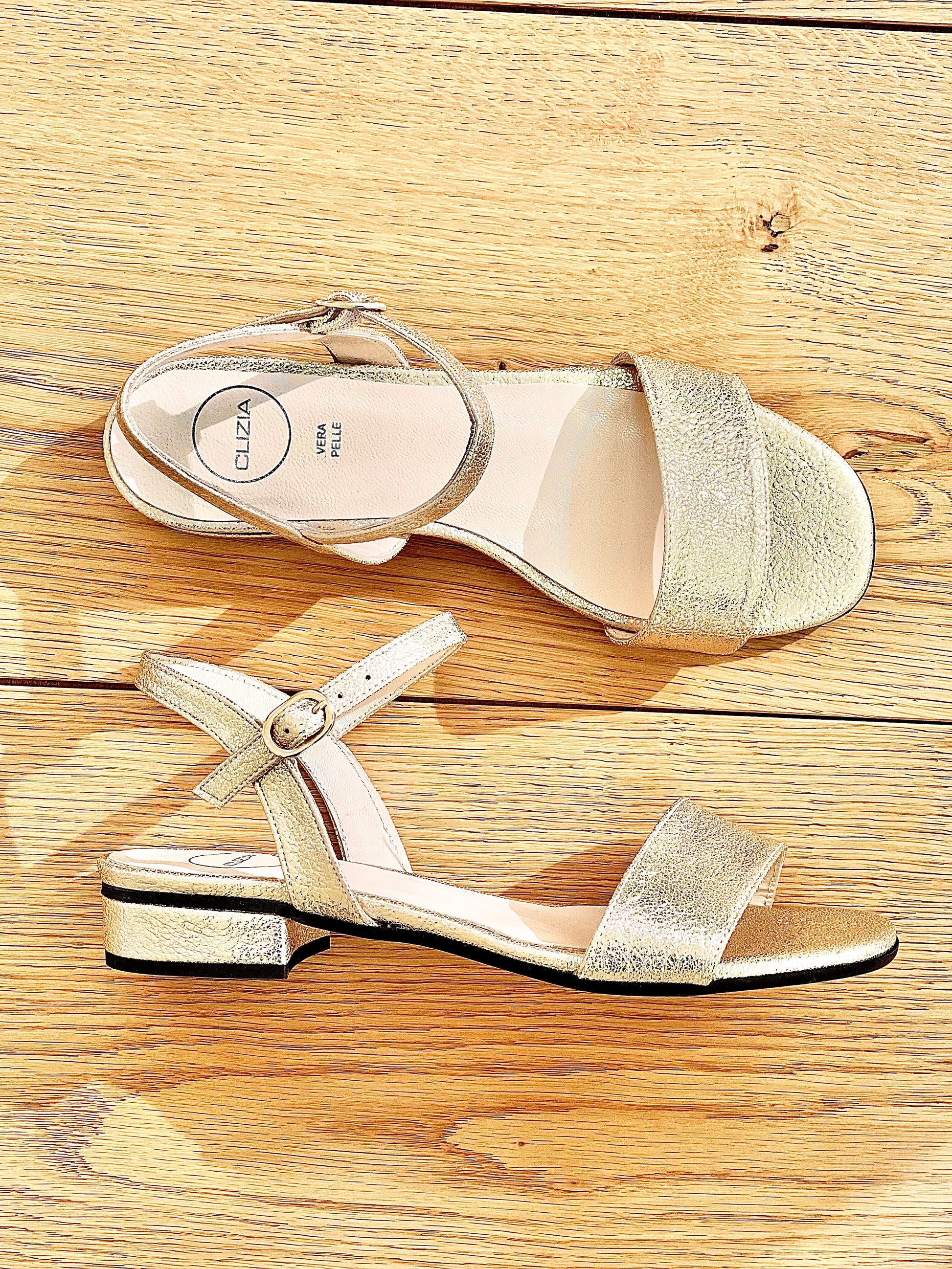 Sandales à bride basse avec bride laminée et talon de 2 cm.